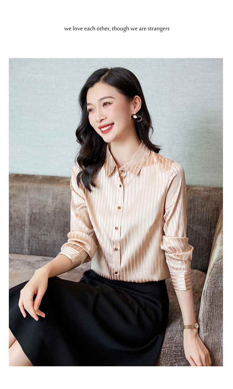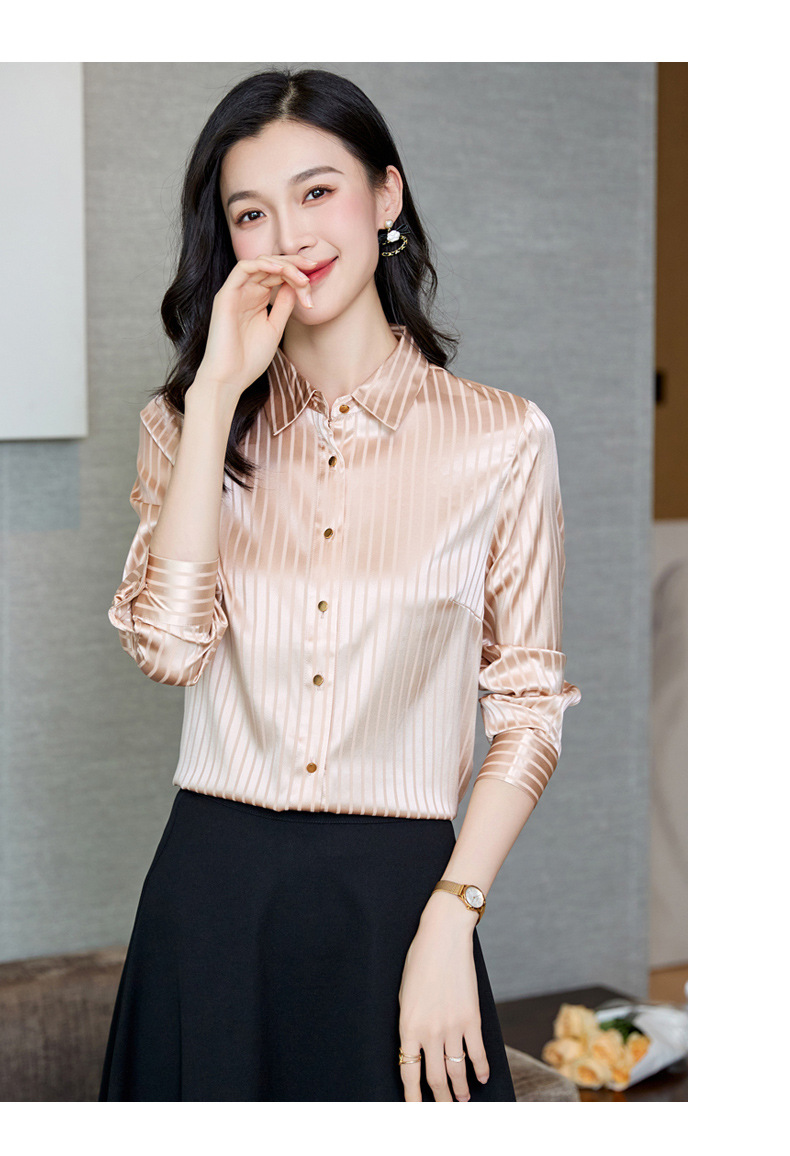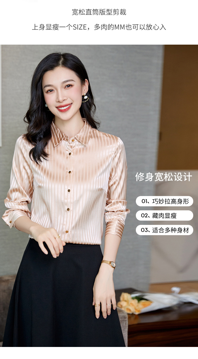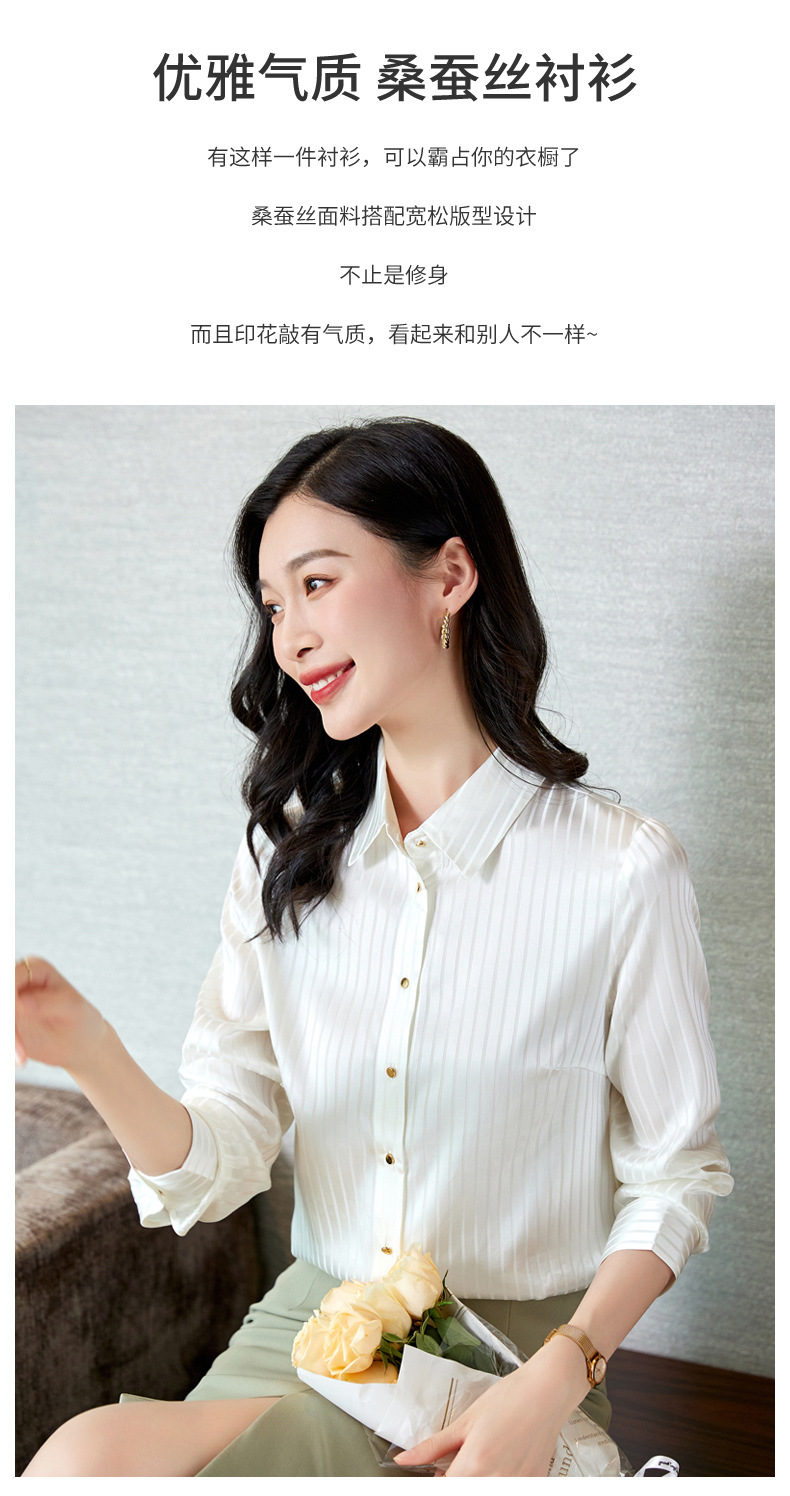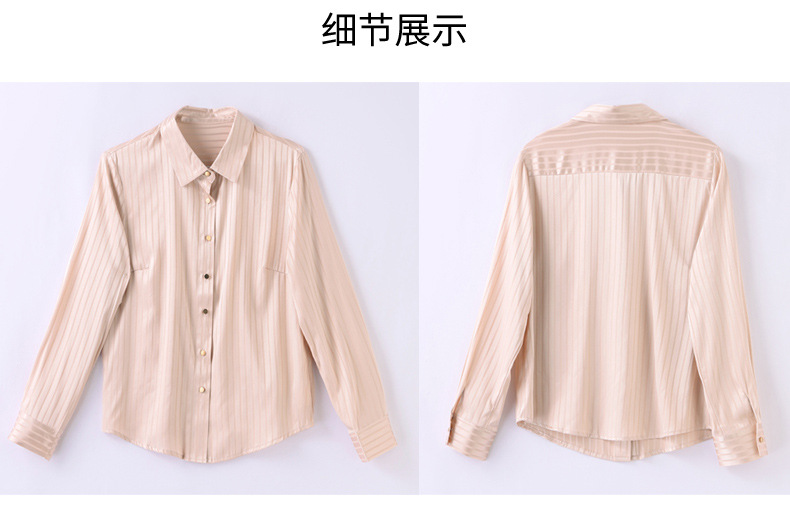 重磅真丝长袖衬衫纯色条纹KQN-67631