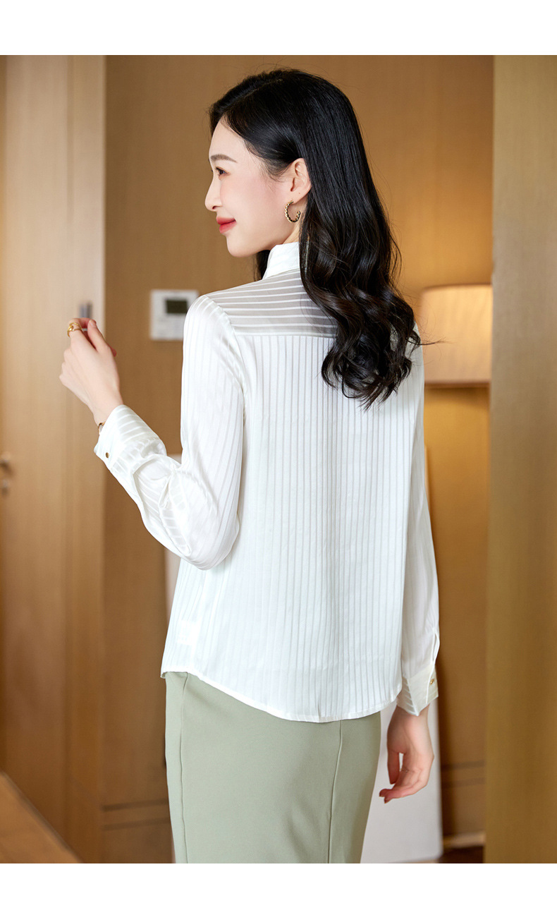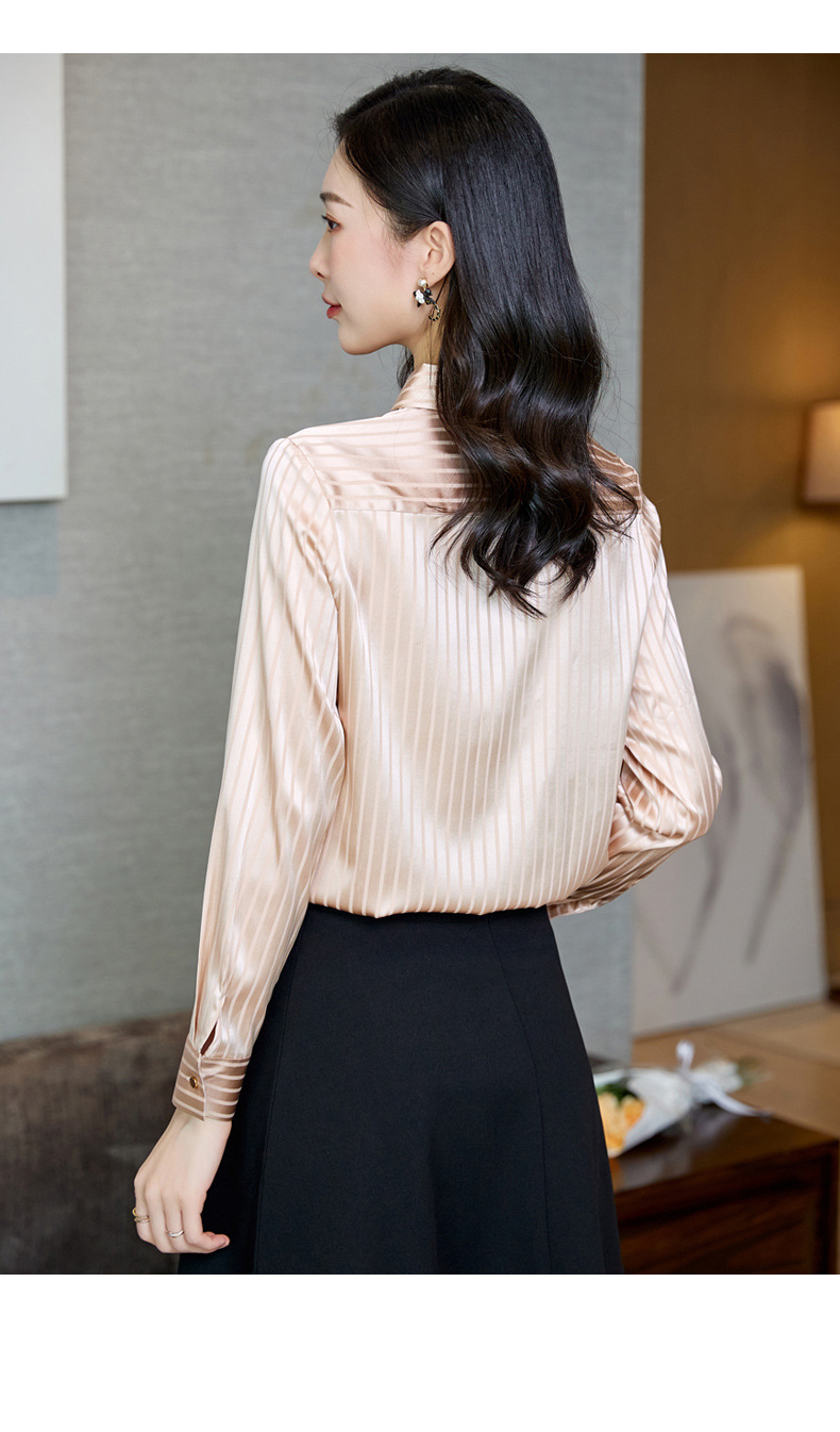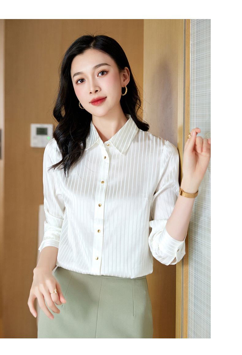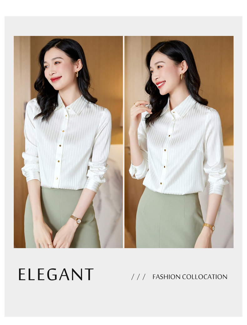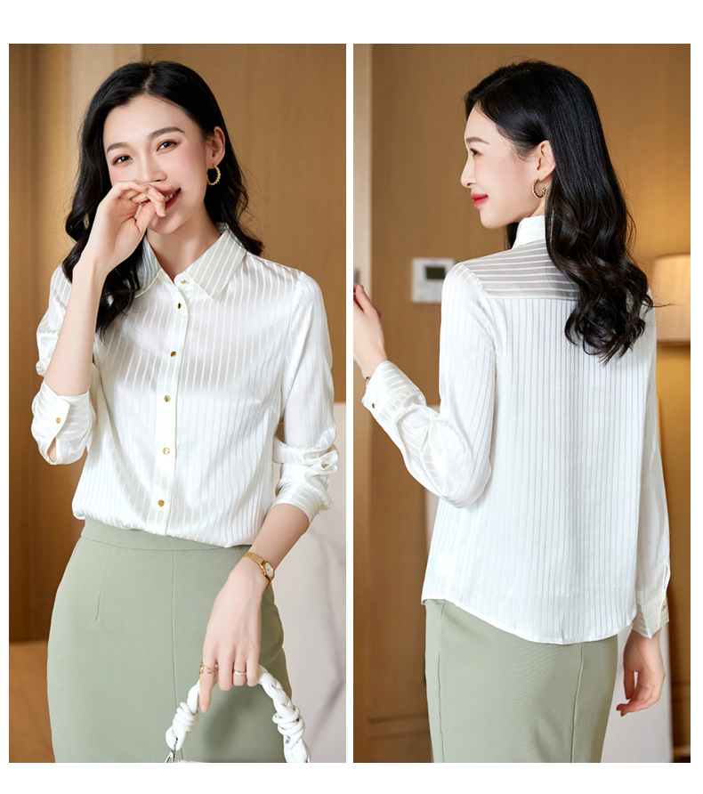 重磅真丝长袖衬衫纯色条纹KQN-67631