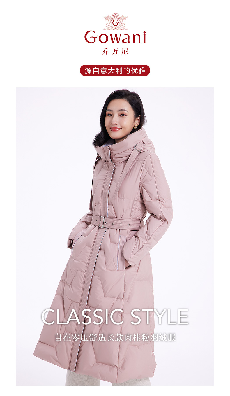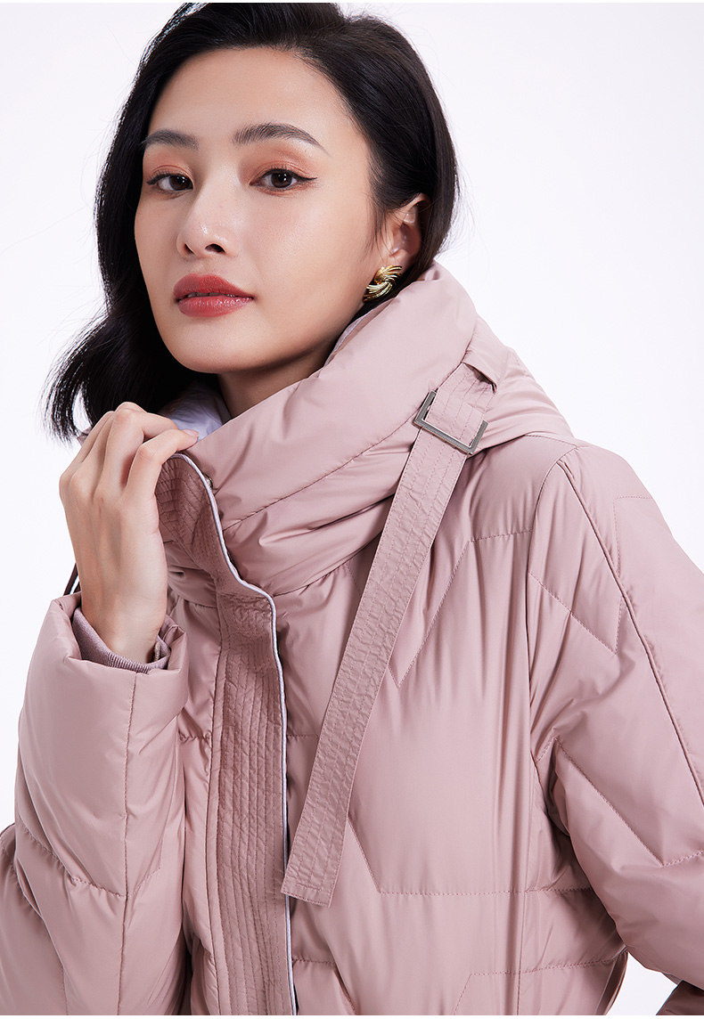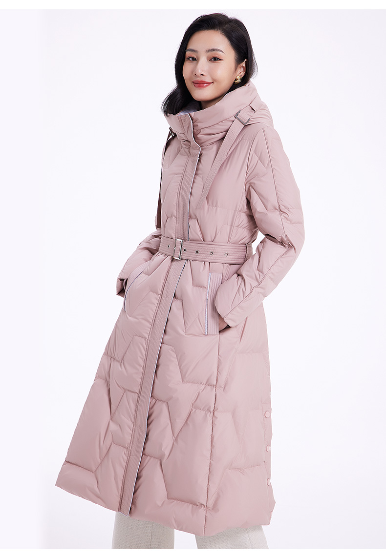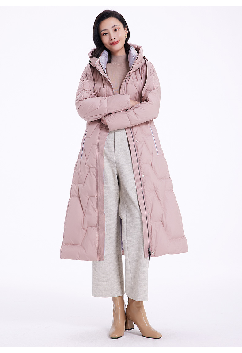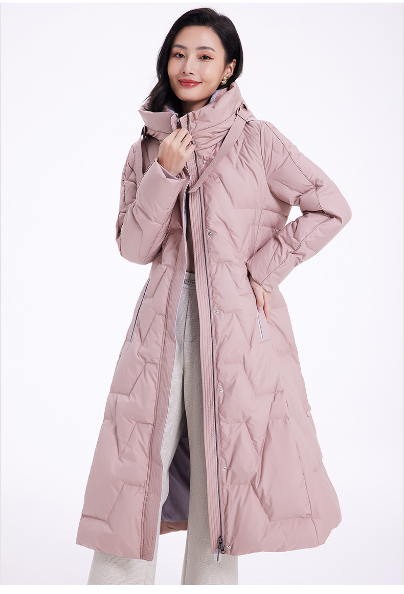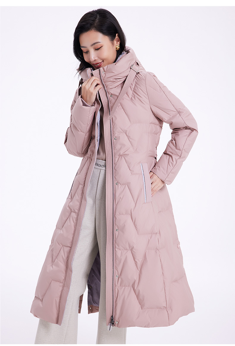 乔万尼羽绒服女款冬季新款收腰中长保暖气质粉色EF4T242