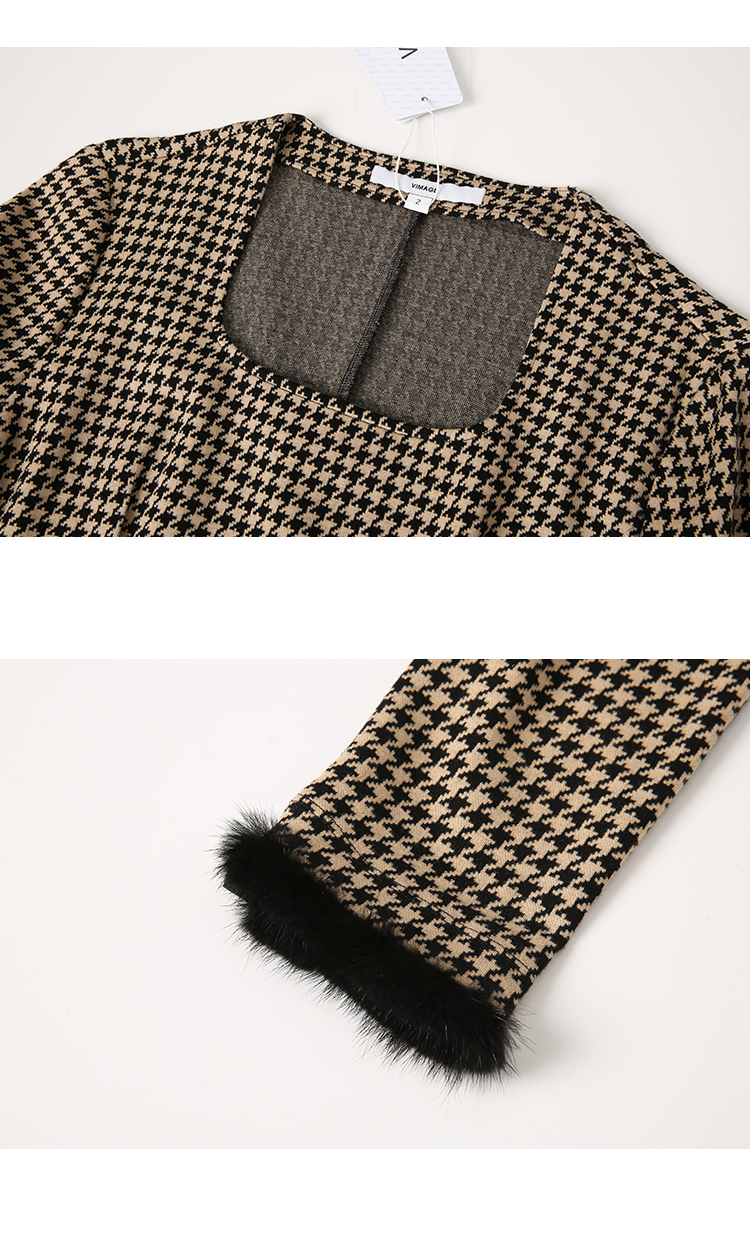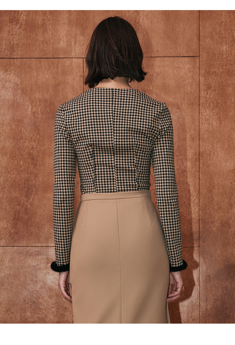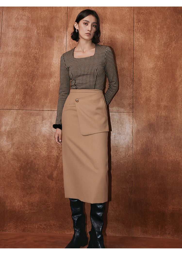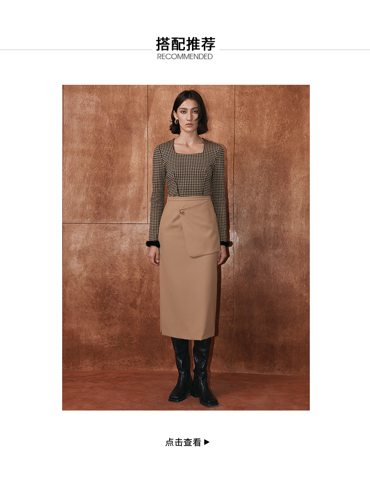 VIMAGE纬漫纪冬季新款时尚修身方领格子百搭上衣V2013617