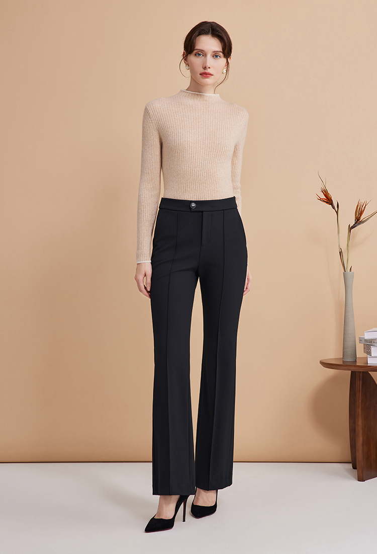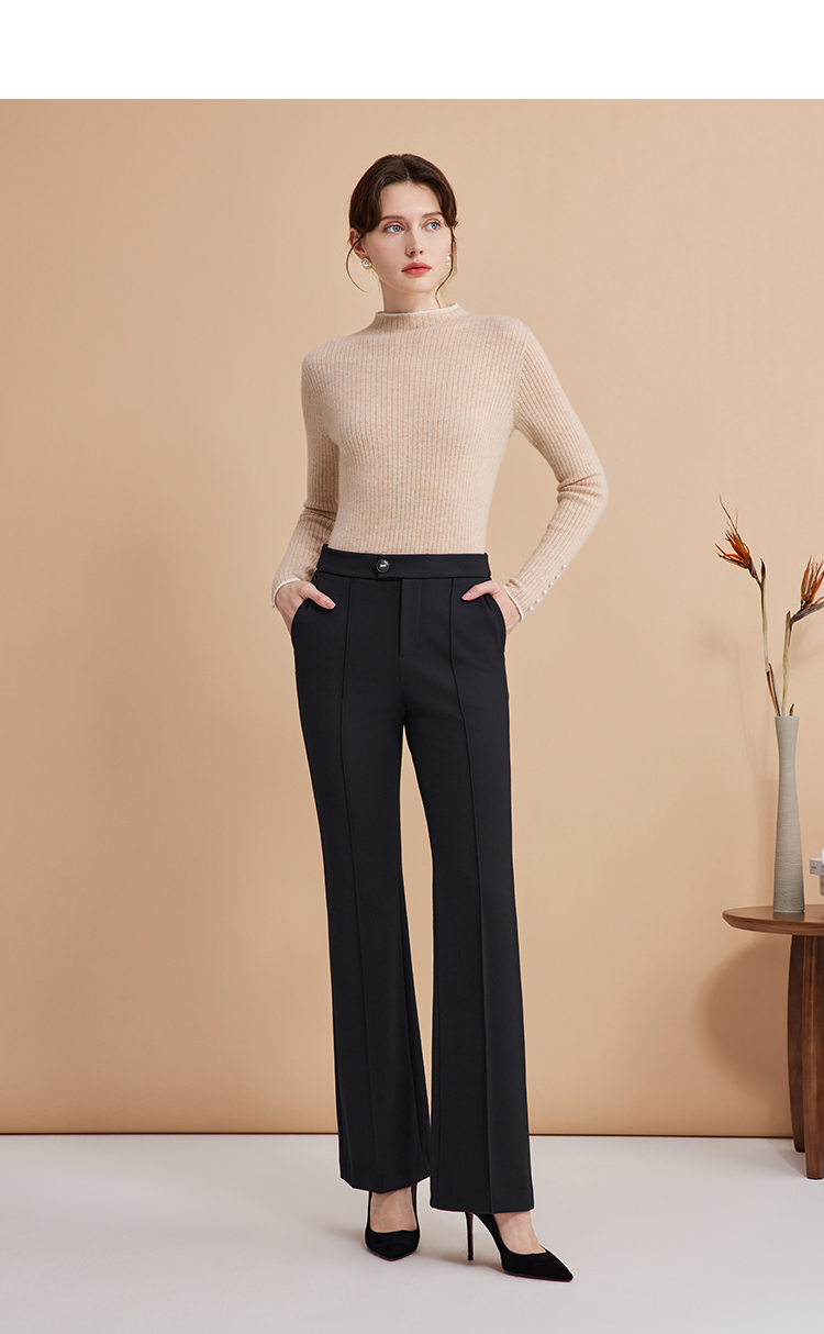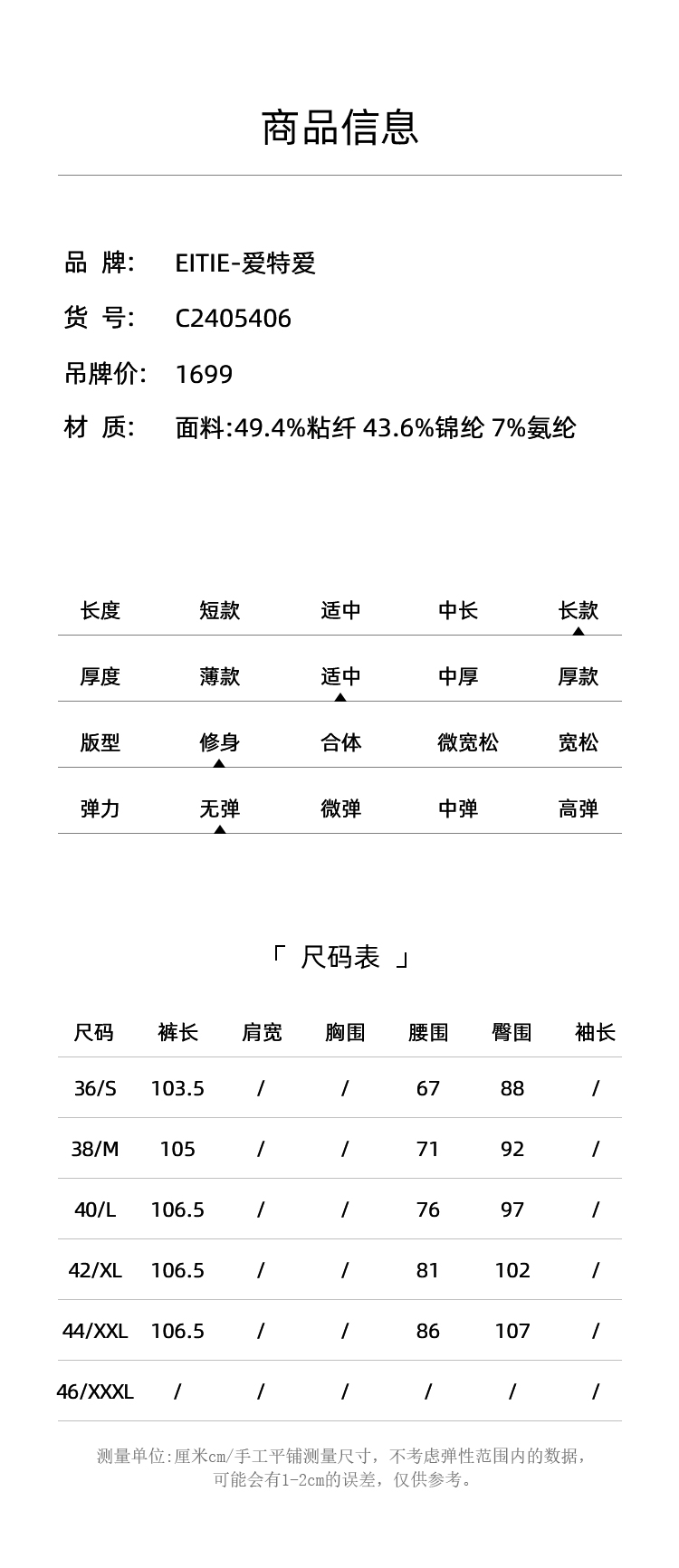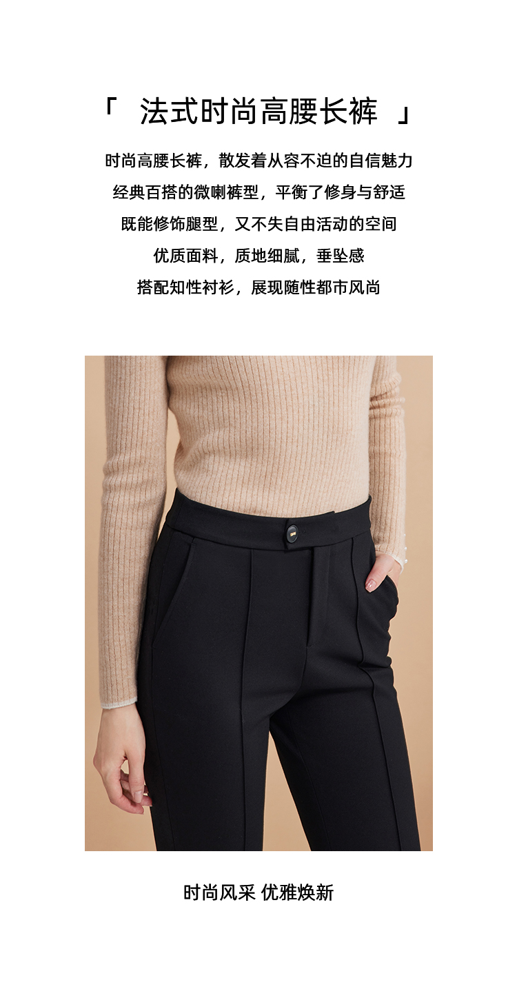 EITIE爱特爱修身微弹舒适百搭经典黑色直筒长裤休闲裤秋新款C2405406