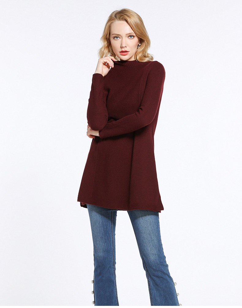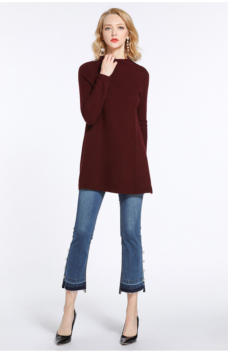 【两色可选】乔万尼冬季宽松大码欧货半高领针织羊毛打底衫上衣女中长EB4M005
