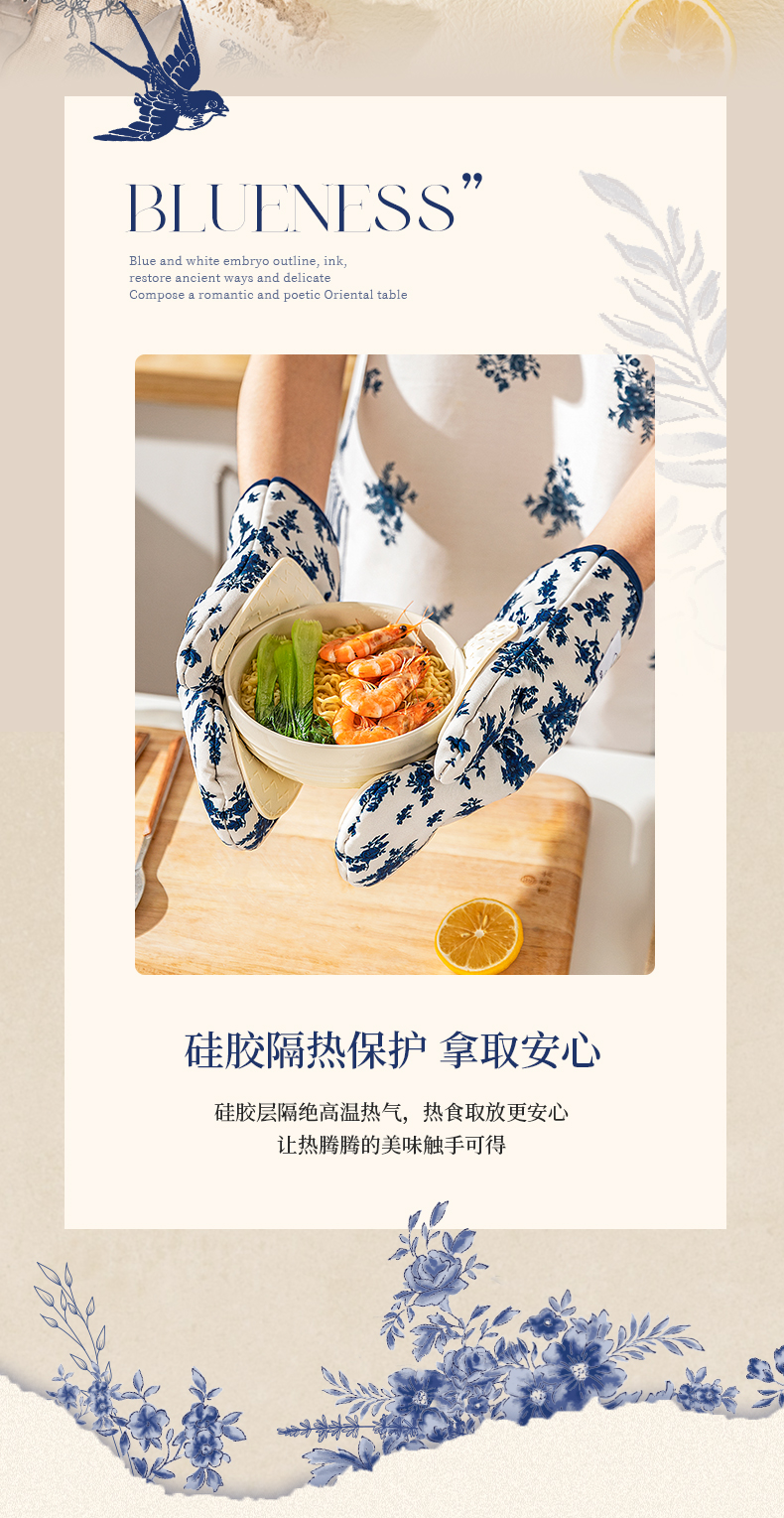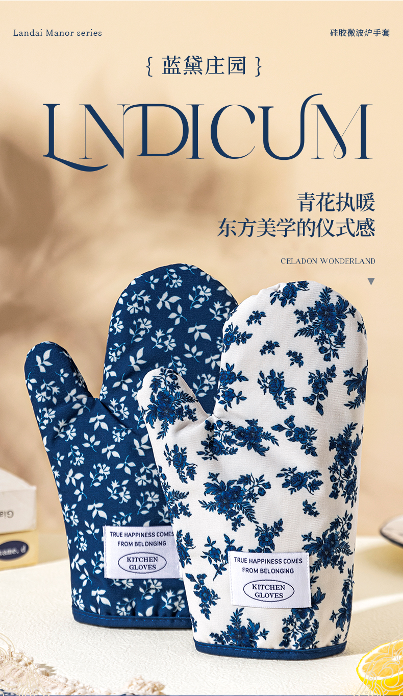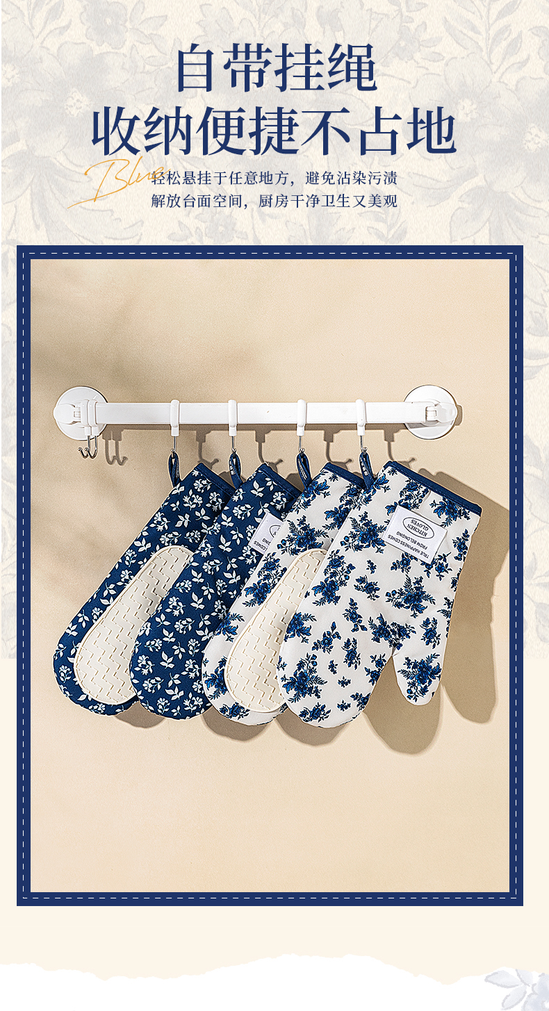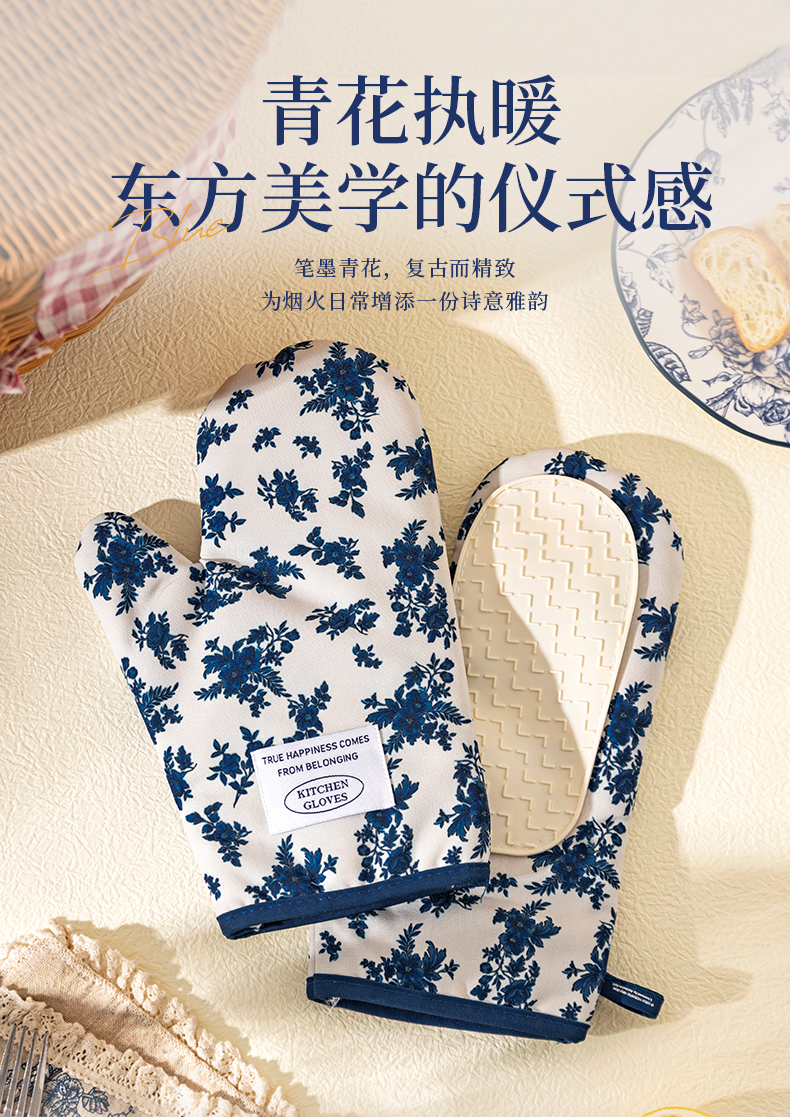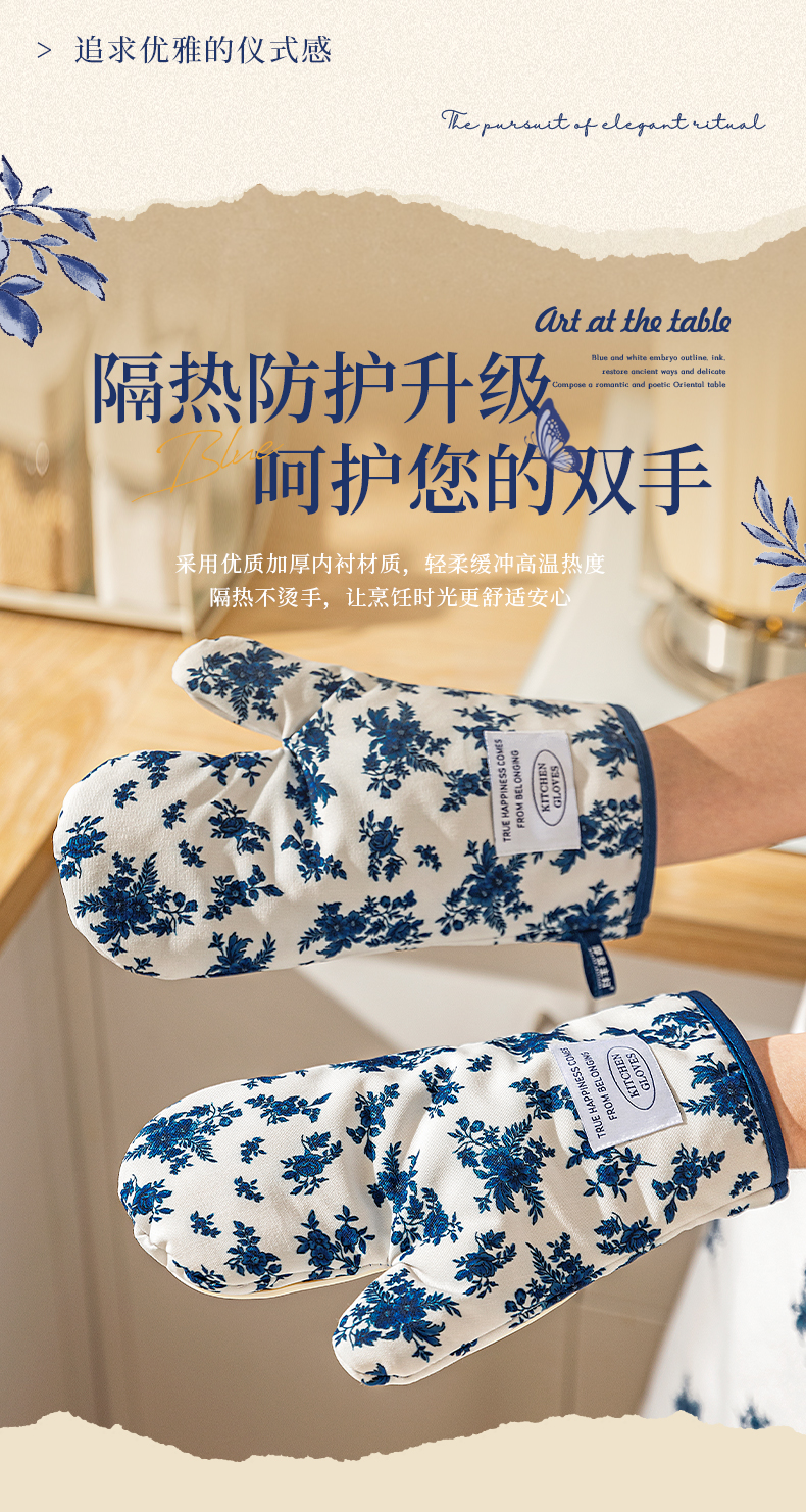 摩登主妇蓝黛庄园防烫隔热手套耐高温厨房烘焙工具微波炉烤箱专用