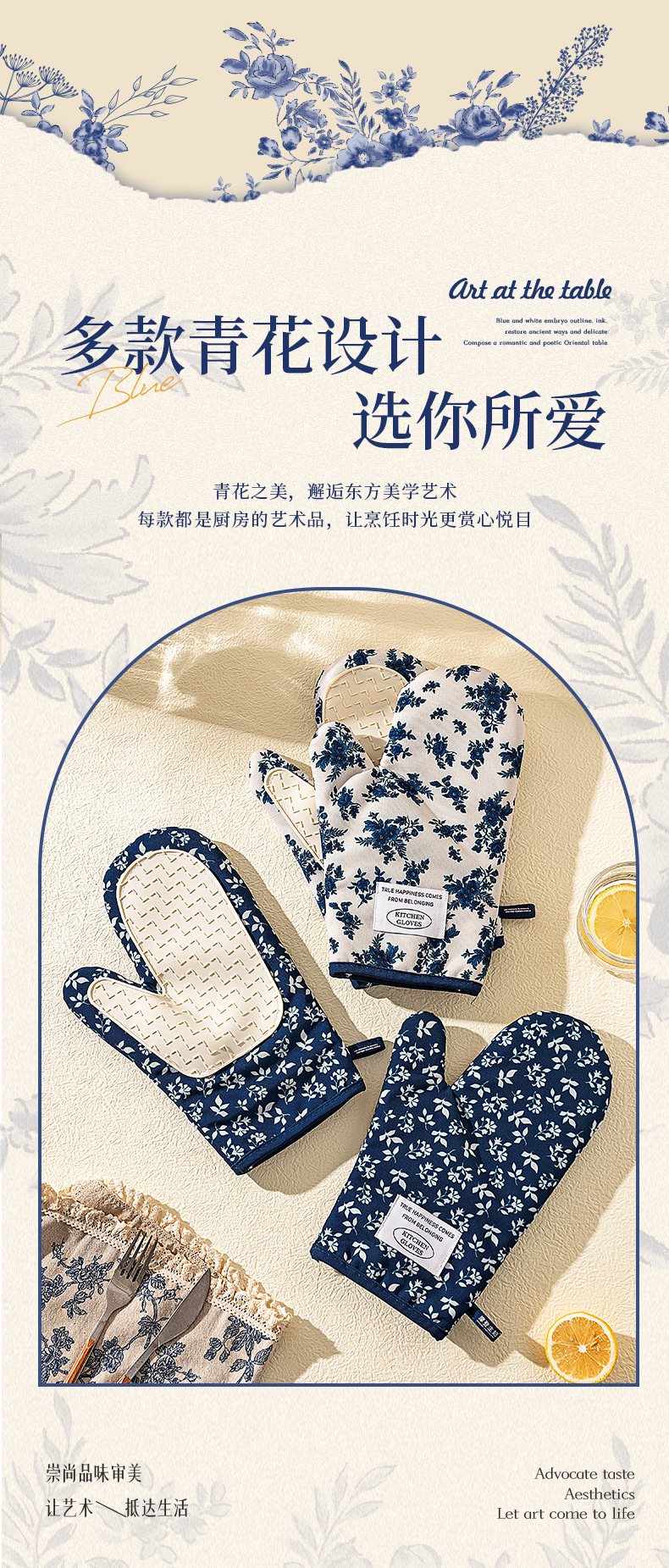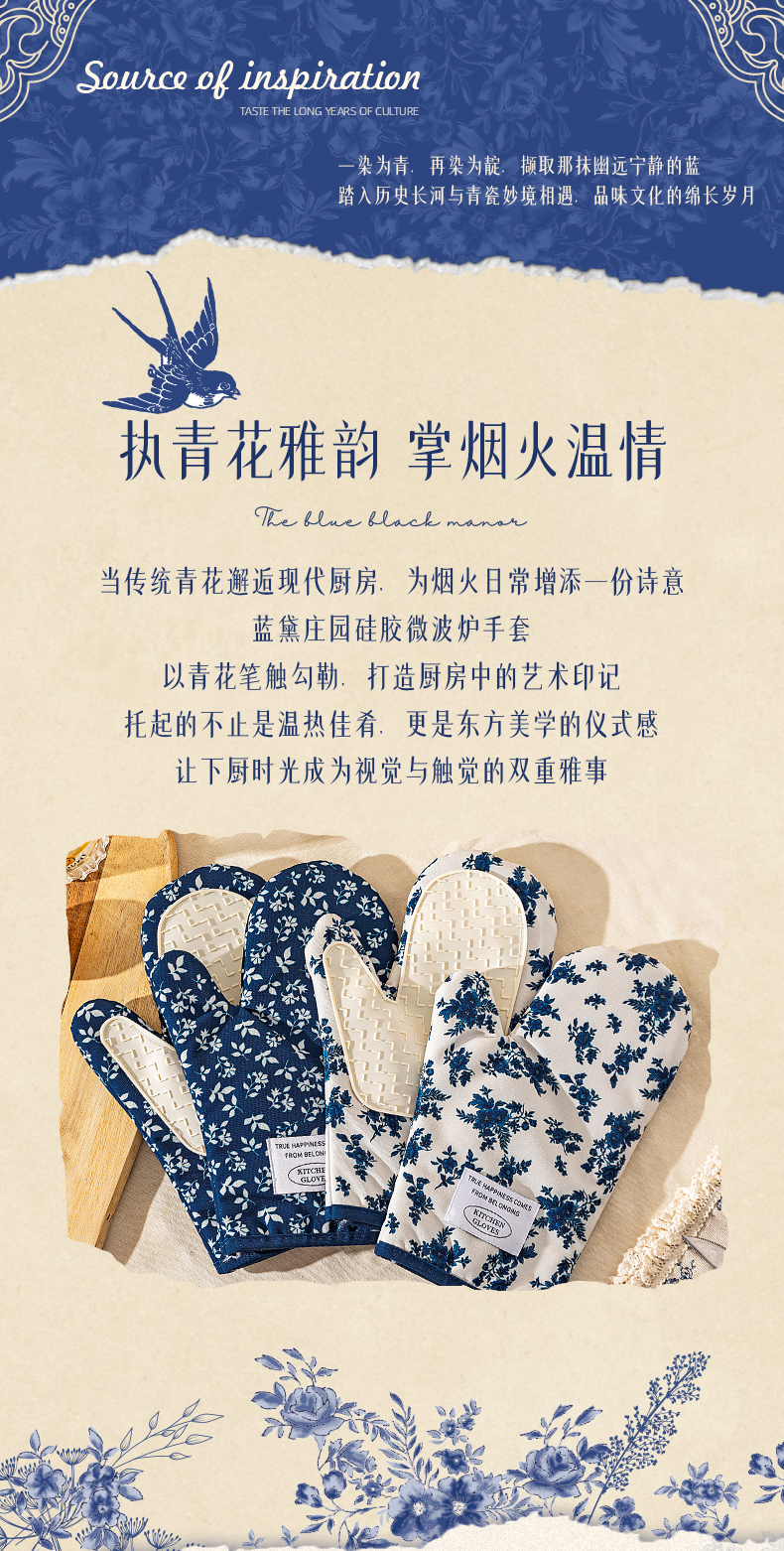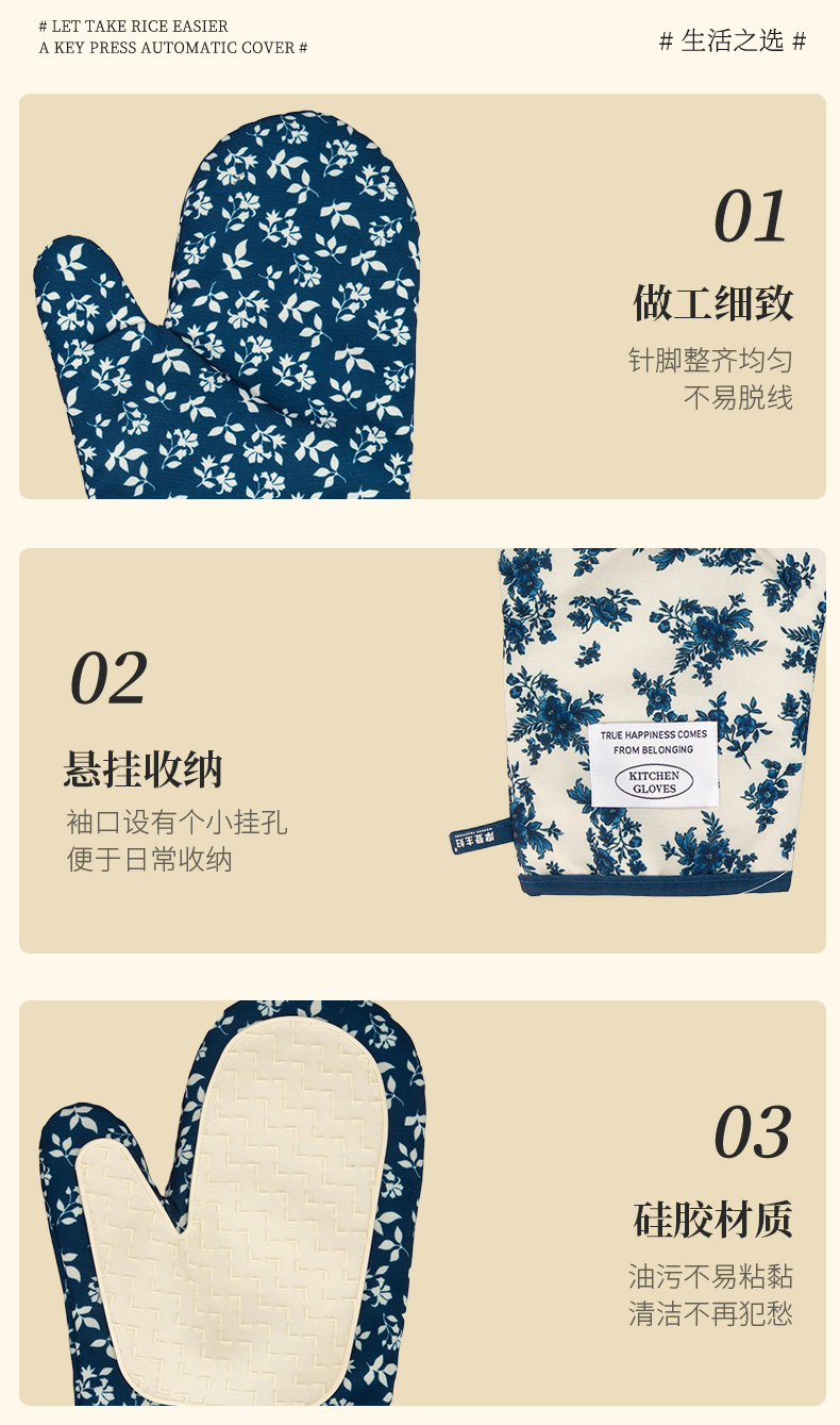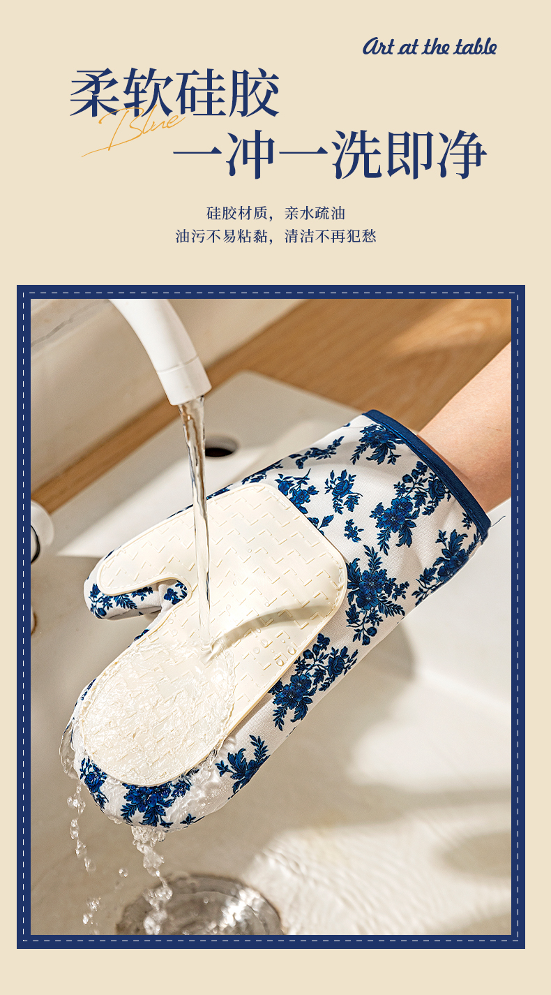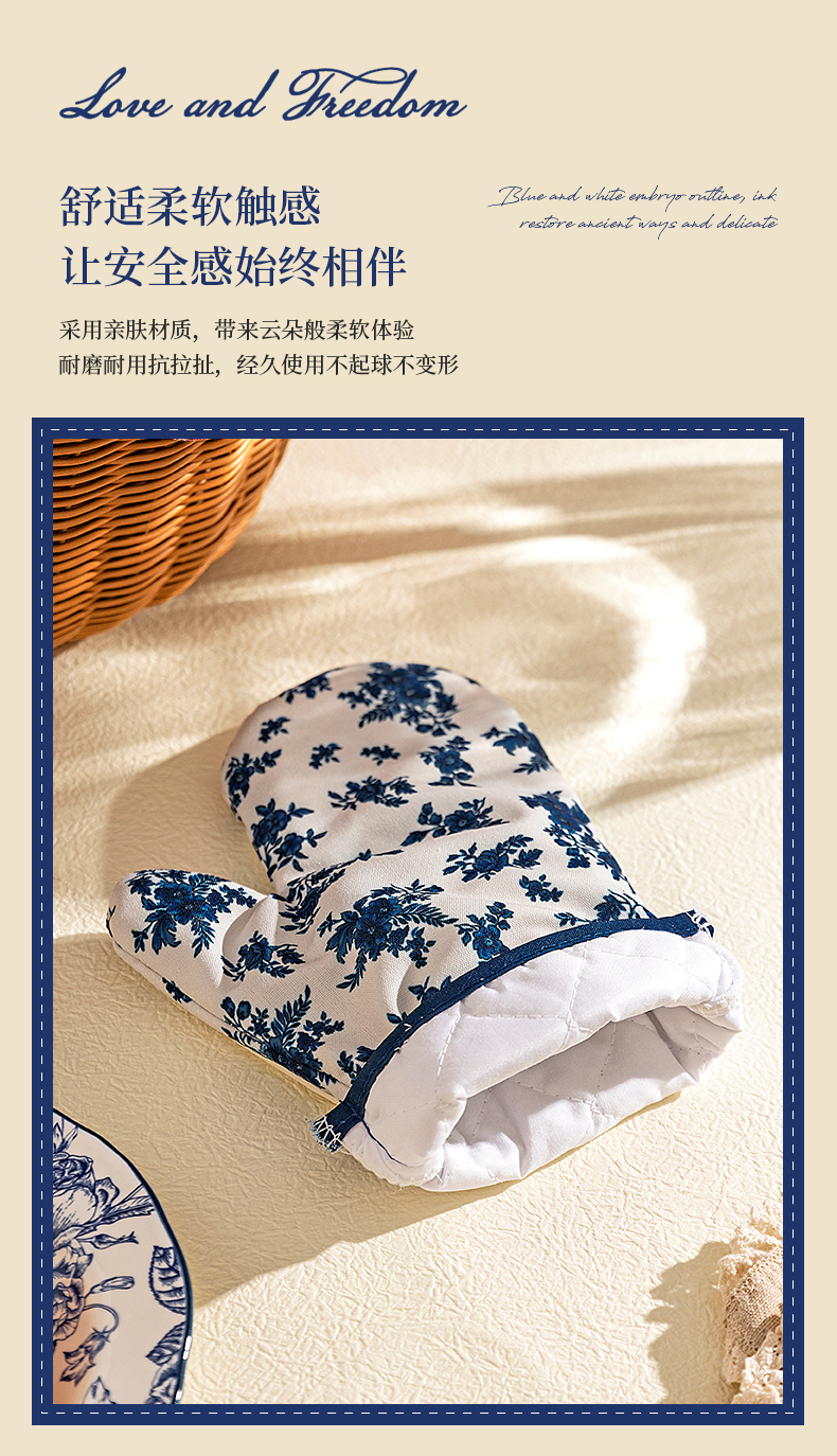 摩登主妇蓝黛庄园防烫隔热手套耐高温厨房烘焙工具微波炉烤箱专用