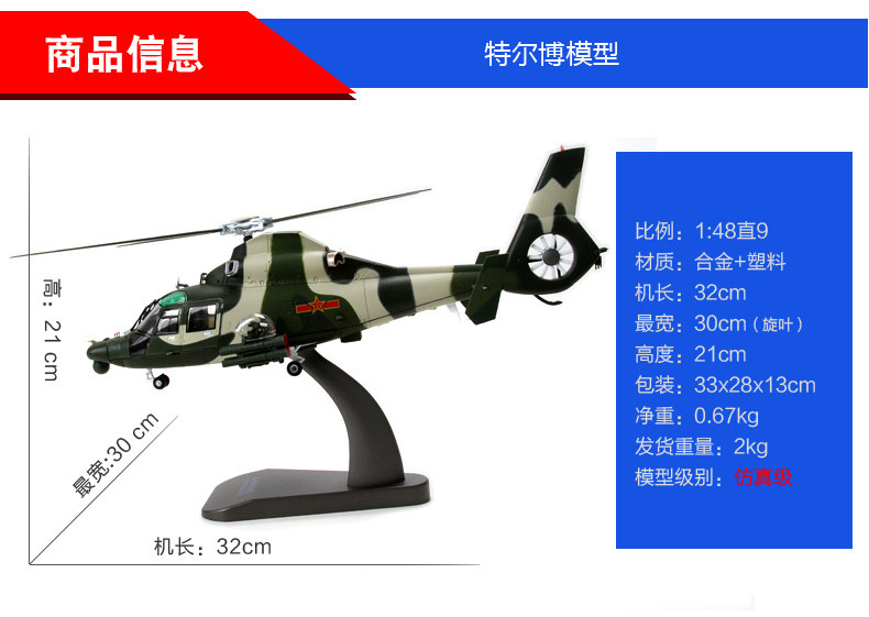 特尔博1:48直九 直9武装直升机模型丨合金仿真军事模型丨收藏精品丨送礼佳品