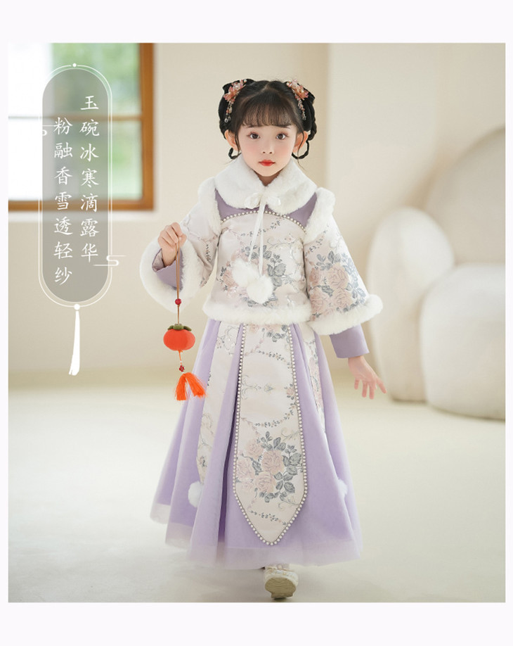 汉服女童冬季新年套装,加厚拜年服唐装XN2707