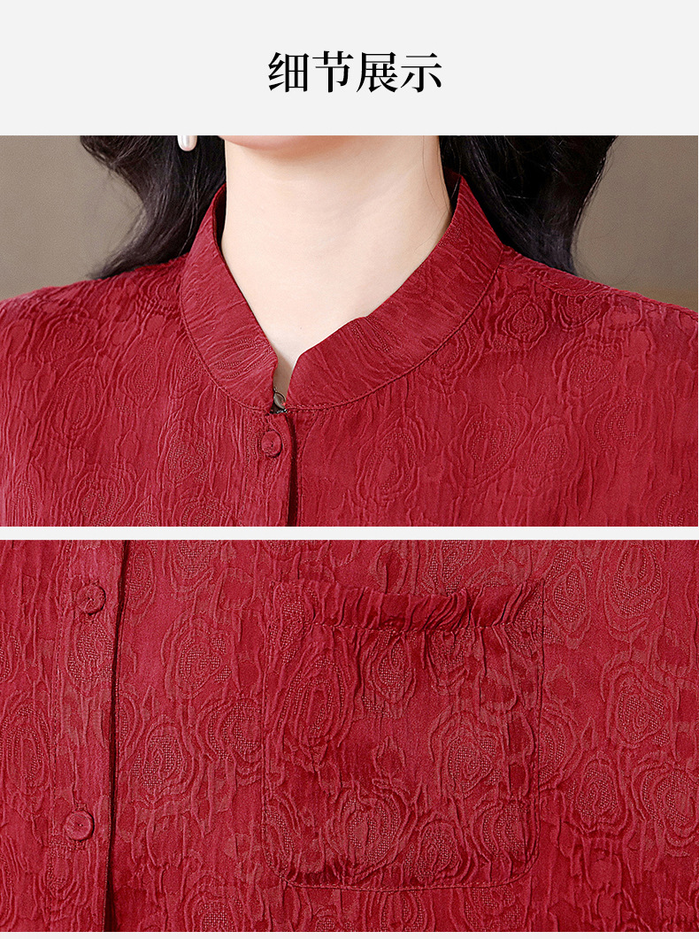OSL  LX2679新中式立领花萝香云纱真丝上衣桑蚕丝小衫 商品图2