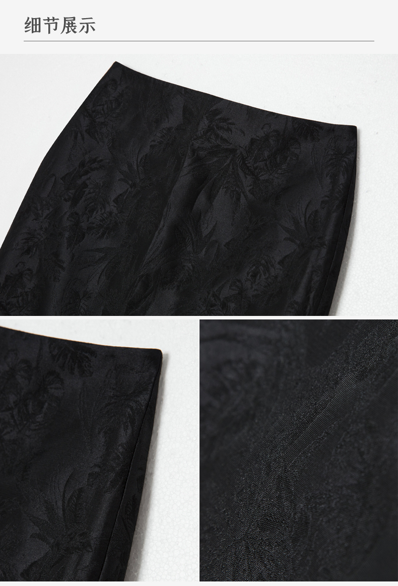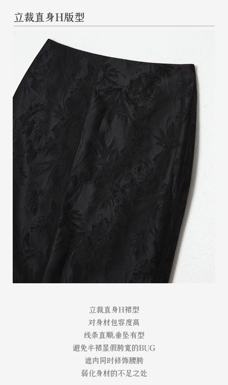 西嘉BQ2402071C+IMPRESS/西嘉新中式开衩半裙女直筒东方美学提花肌理感立裁优雅