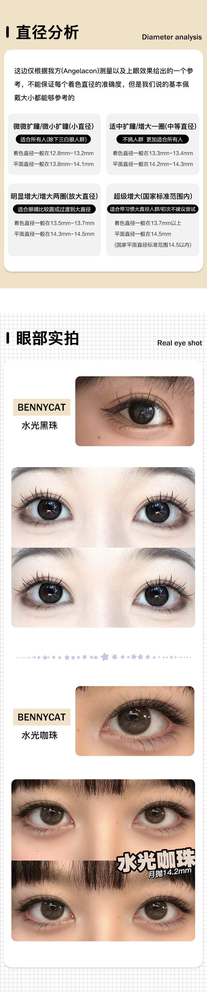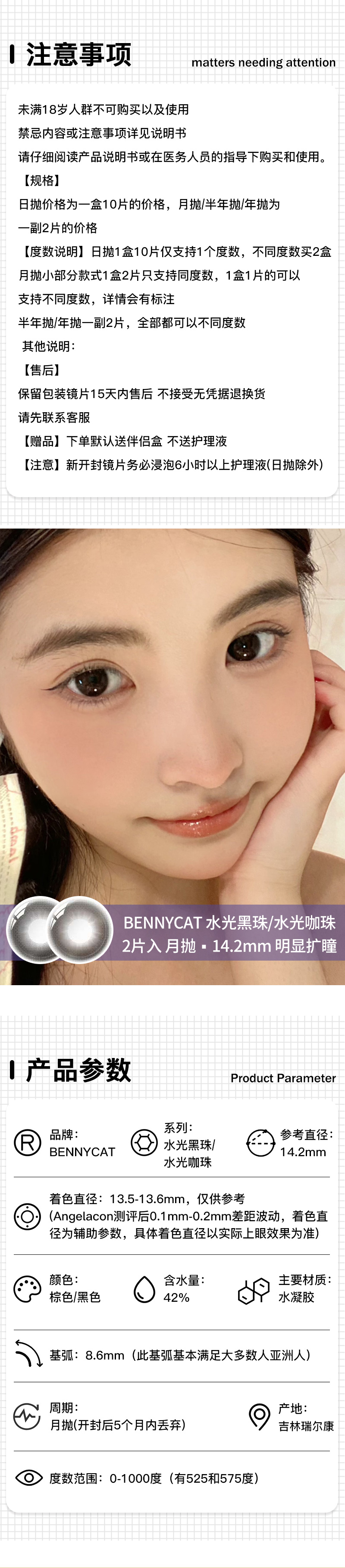 BENNYCAT / 美瞳月抛 / 水光黑珠/水光咖珠 / 2片入 / 14.2mm / 明显扩瞳纯色系深色提神自然款