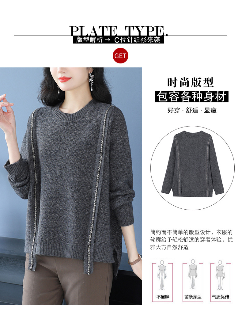 CC 10-6125圆领显瘦韩版不规则减龄针织衫