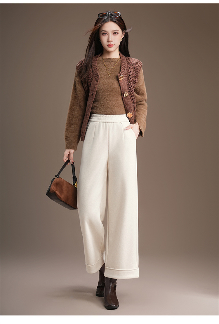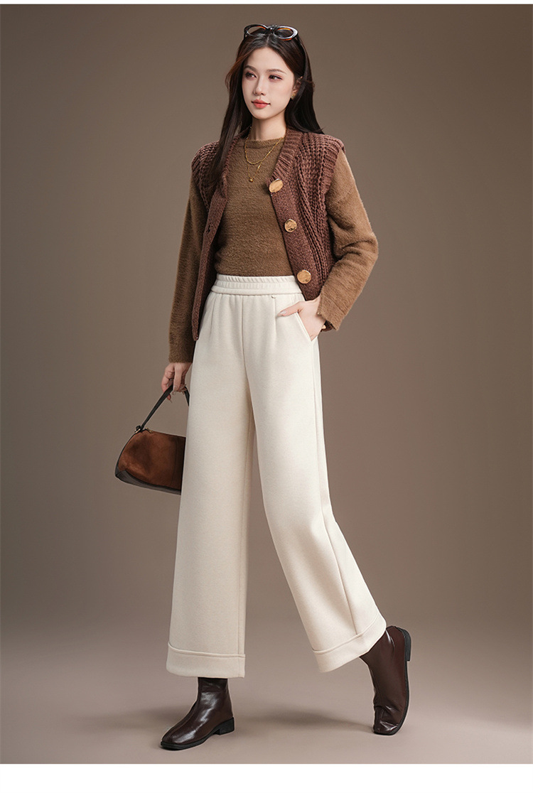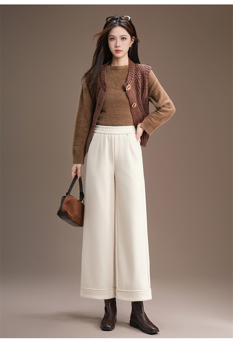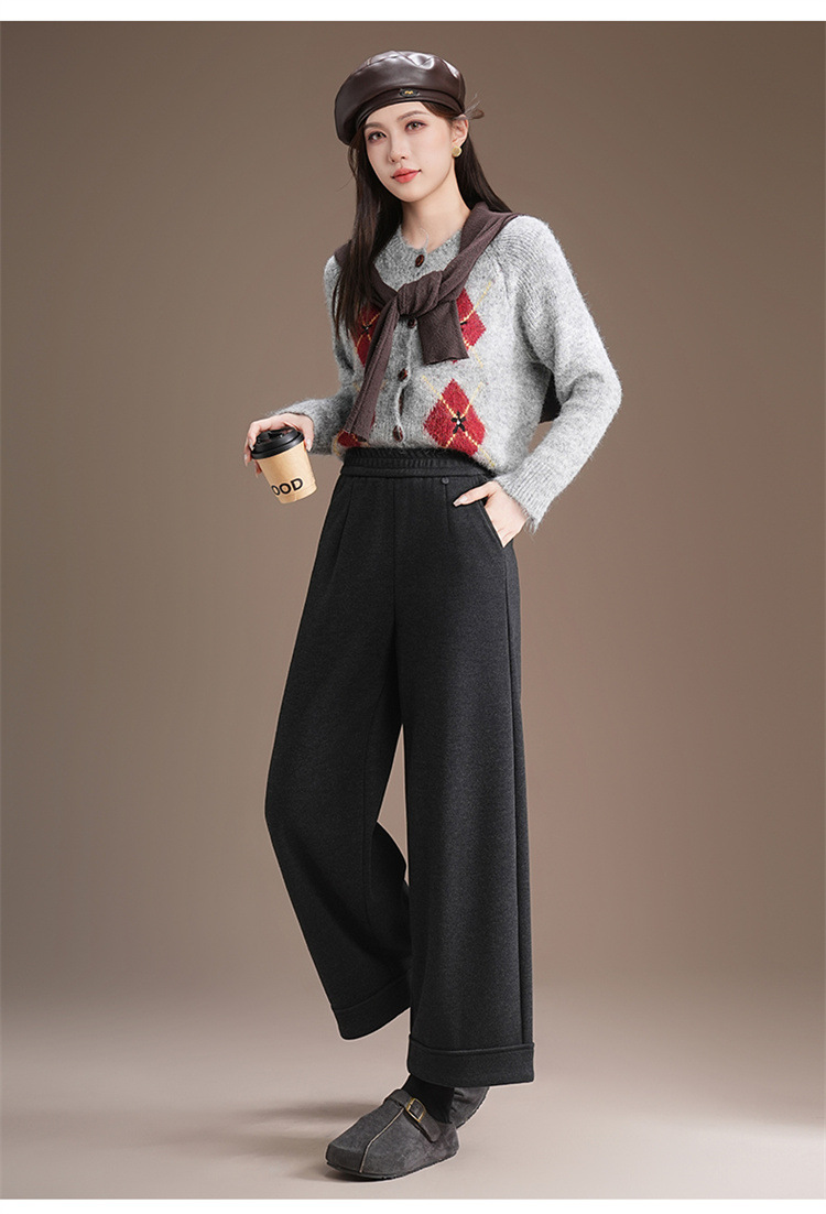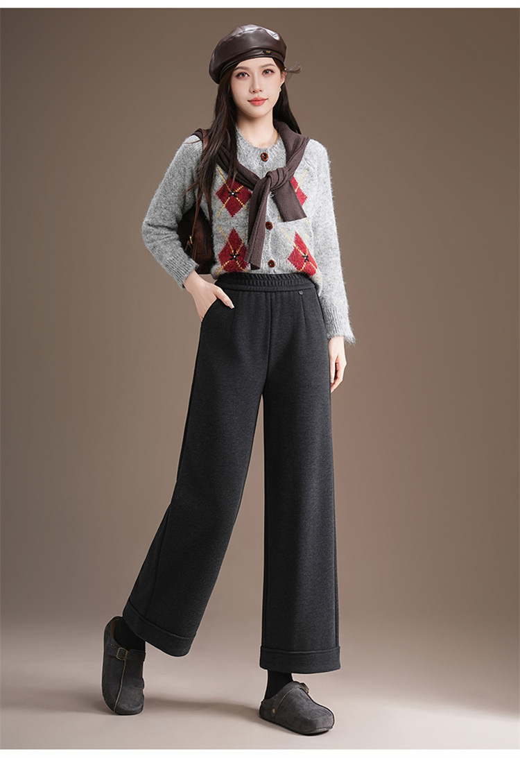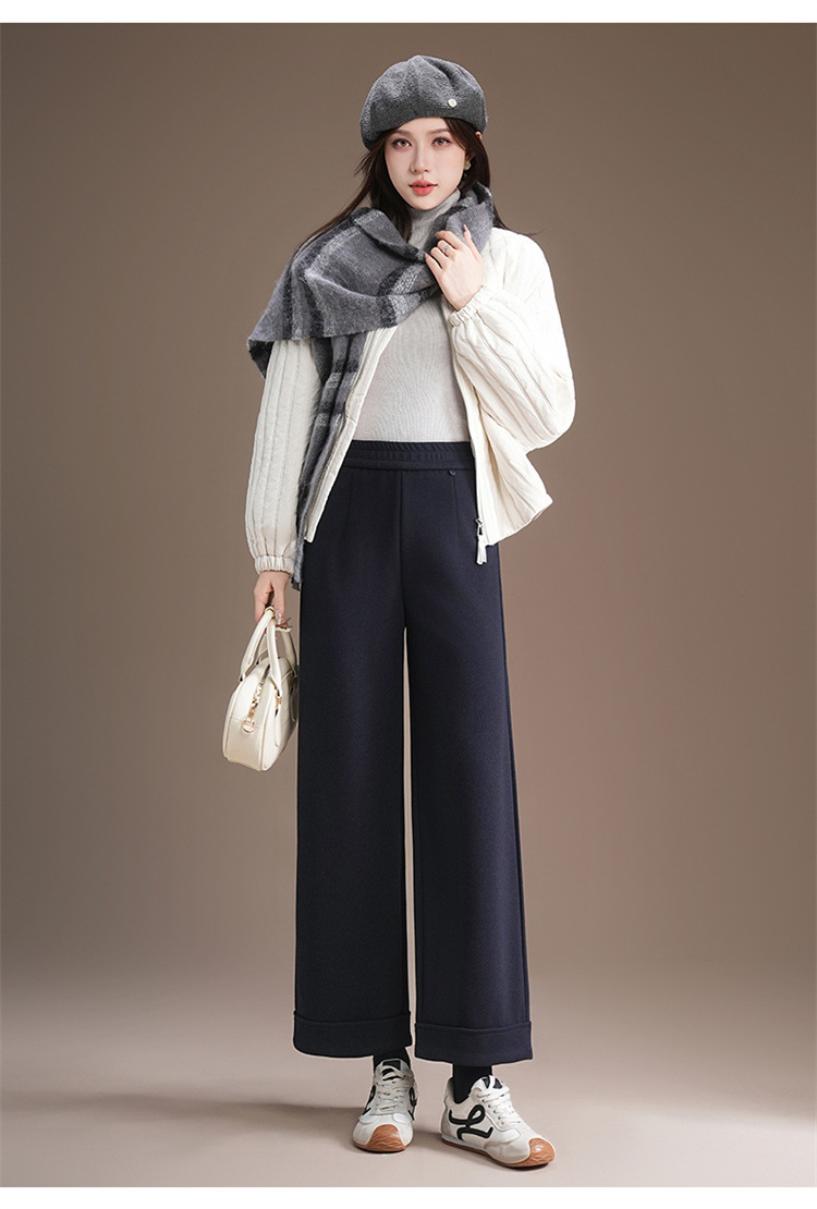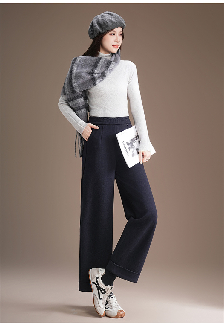 QYM 9571-Y羊毛呢直筒裤厚款高腰阔腿裤休闲裤 商品图0