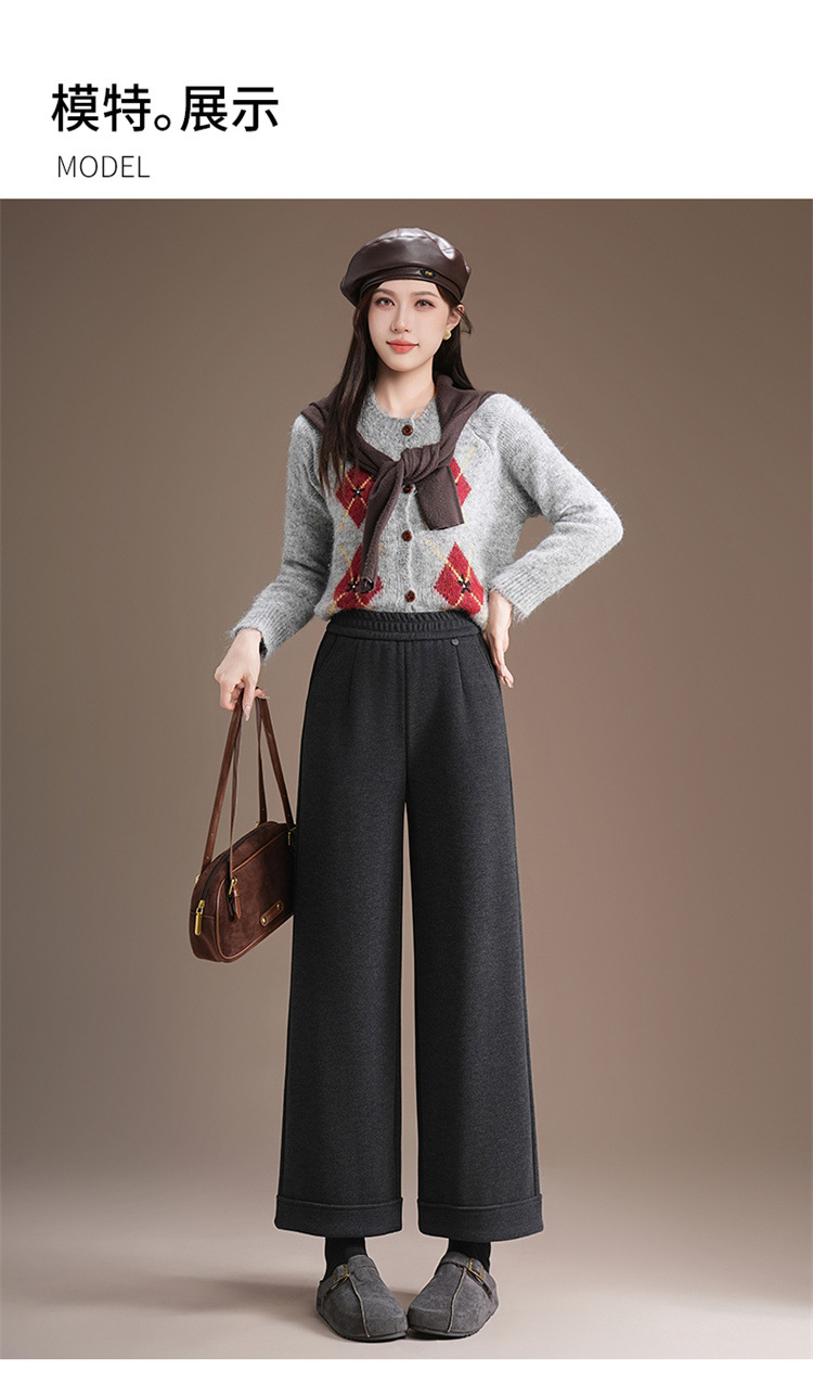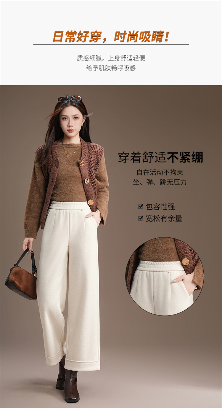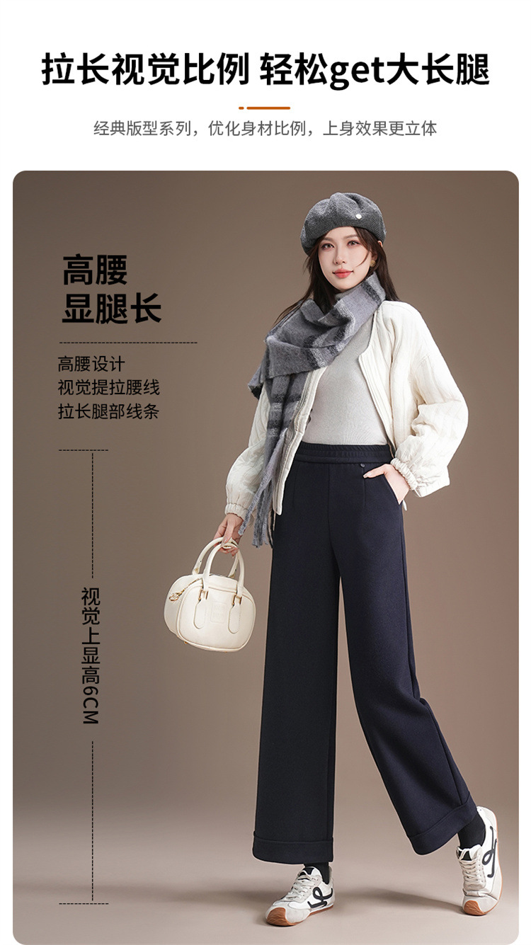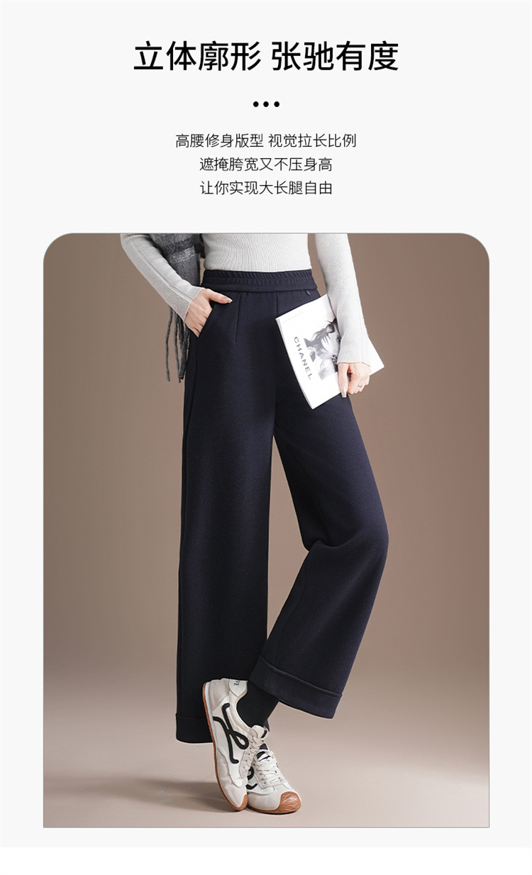 QYM 9571-Y羊毛呢直筒裤厚款高腰阔腿裤休闲裤 商品图4