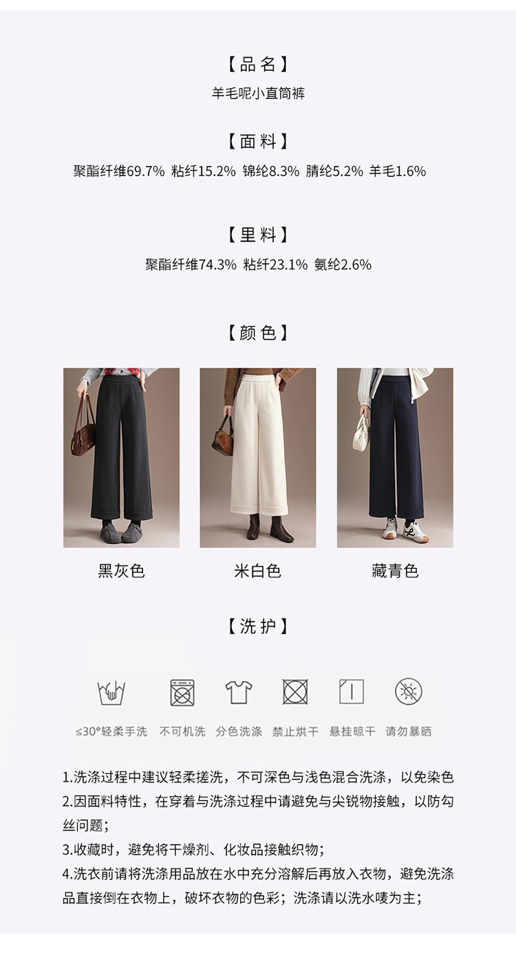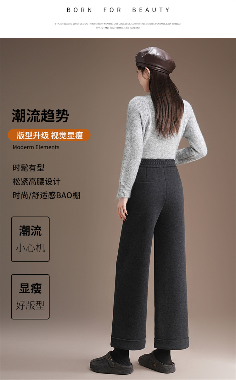 QYM 9571-Y羊毛呢直筒裤厚款高腰阔腿裤休闲裤 商品图1