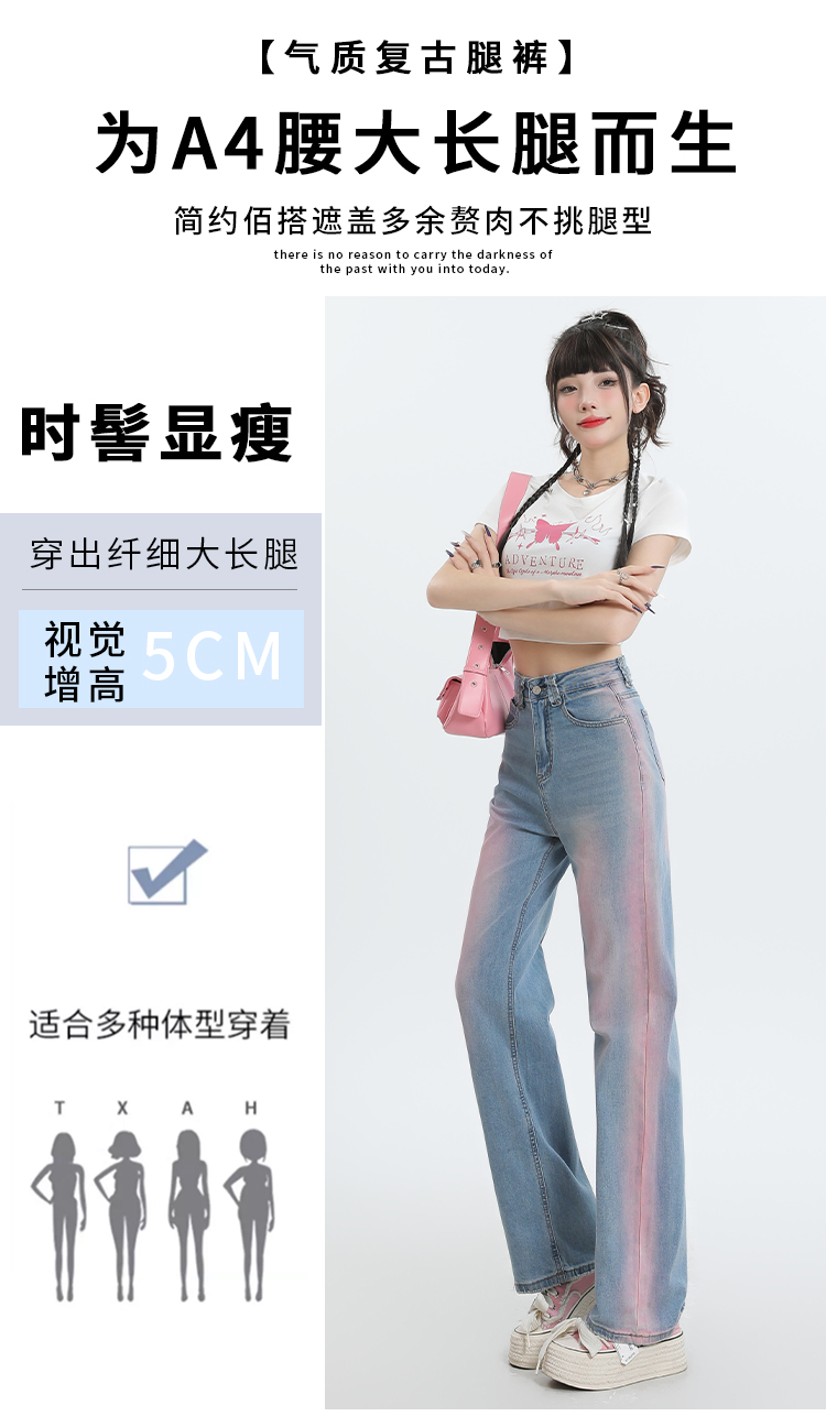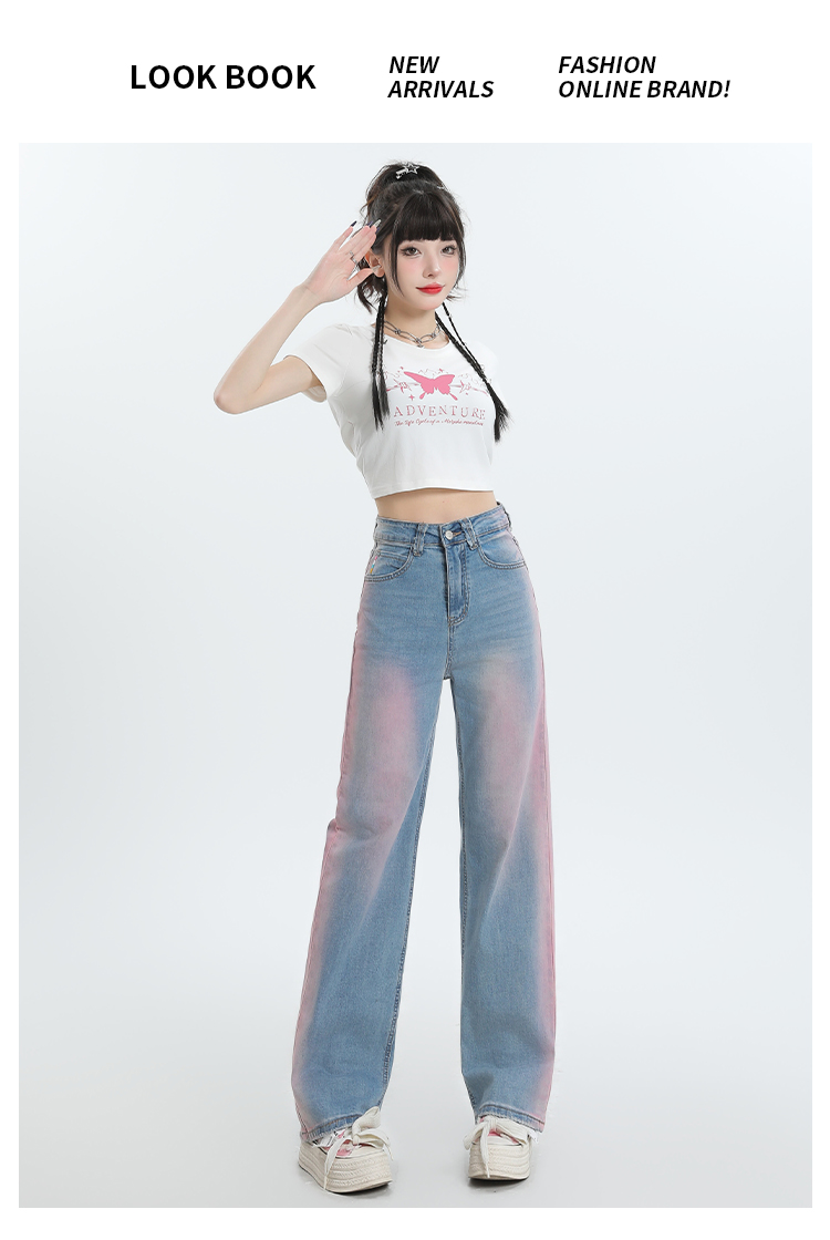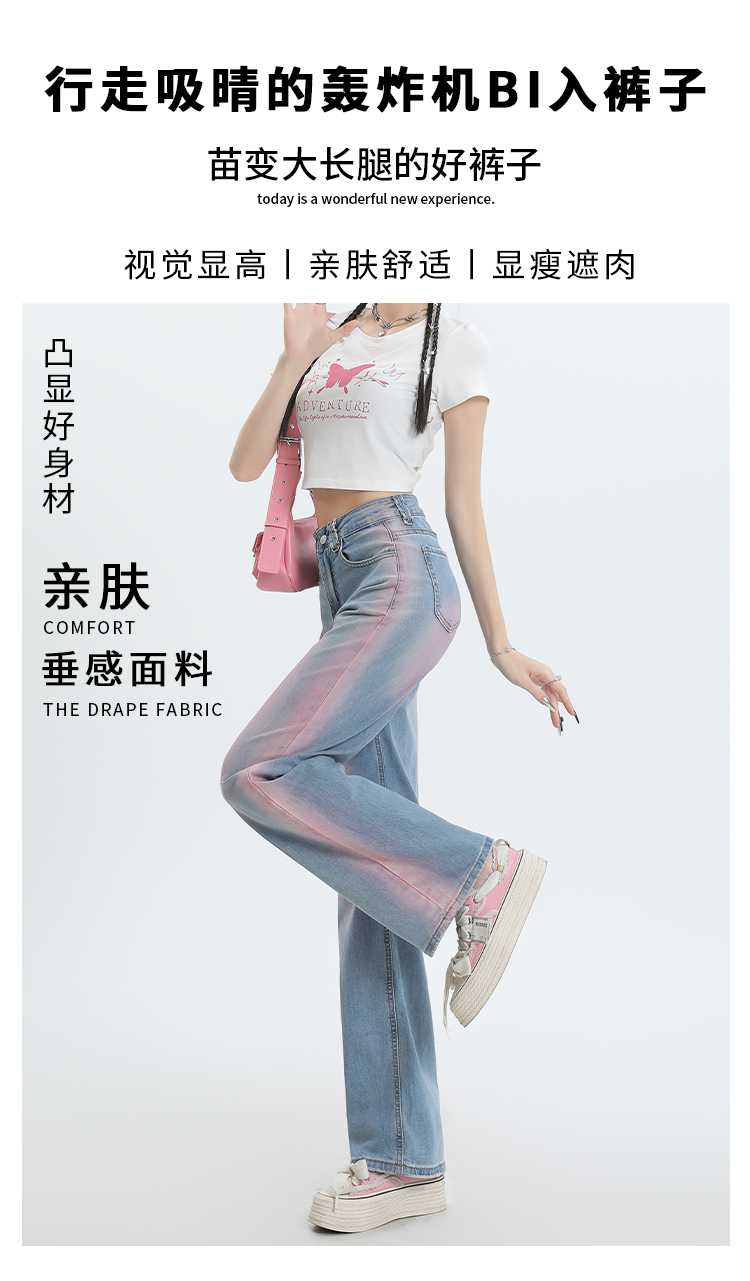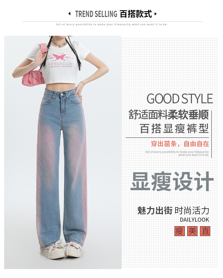 【微弹面料】罗蒙春夏牛仔裤女士直筒宽松舒适棉质弹力牛仔裤女长裤