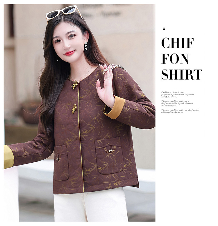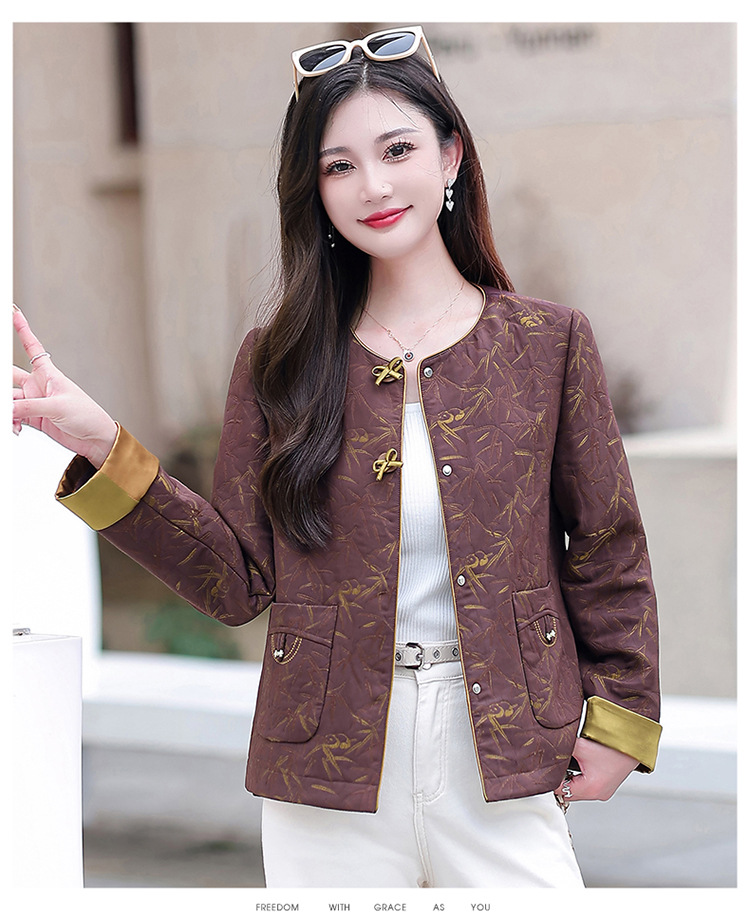 QYM 7706-Y短款压花外套时尚宽松休闲开衫上衣