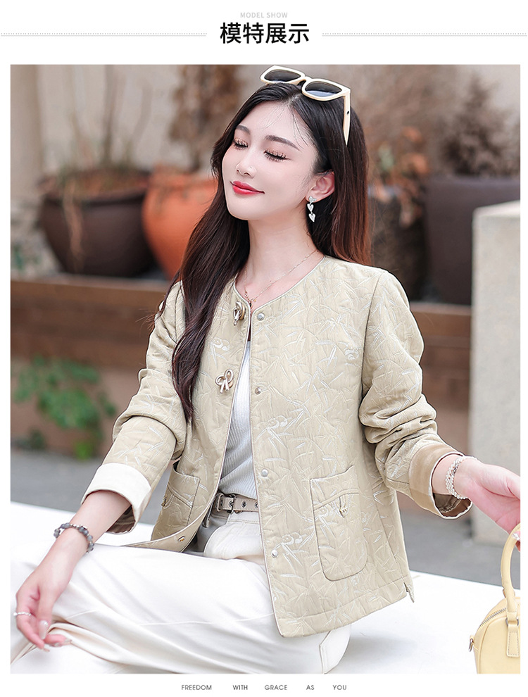 QYM 7706-Y短款压花外套时尚宽松休闲开衫上衣 商品图4