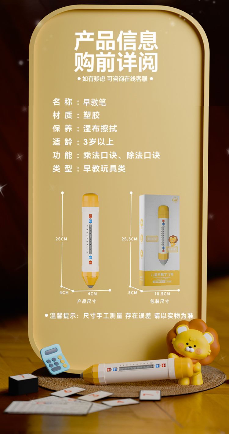 【秒杀 顶配版本】19.9元抢百乐森儿童早教笔 赠乘法口诀卡 转一转轻松学会乘法表