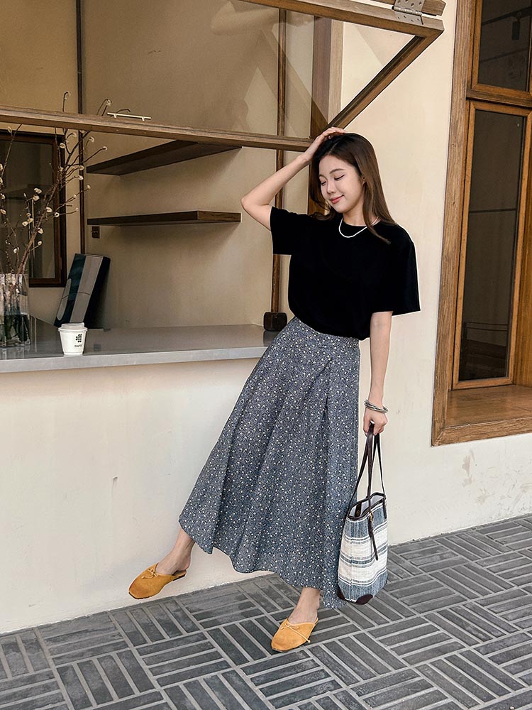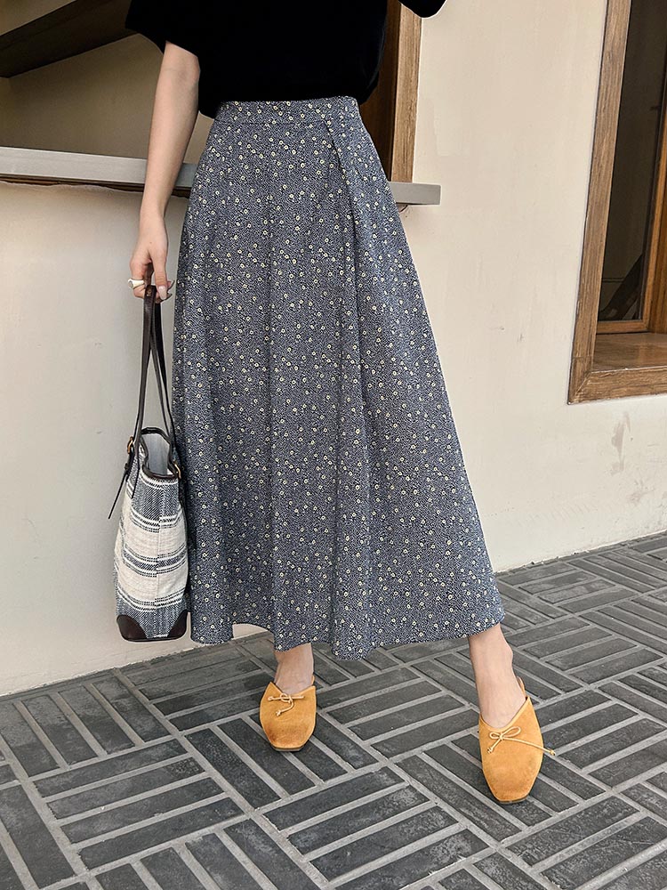洛诗琳34403气质碎花半身裙2025夏季新款高腰显瘦A字裙女0561