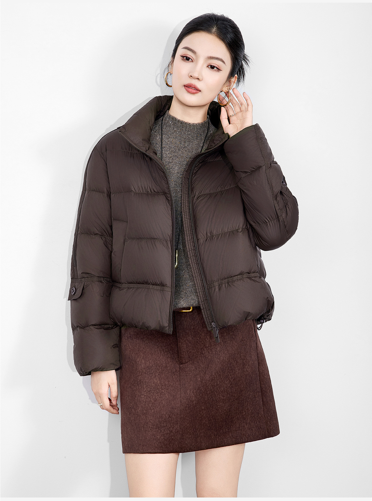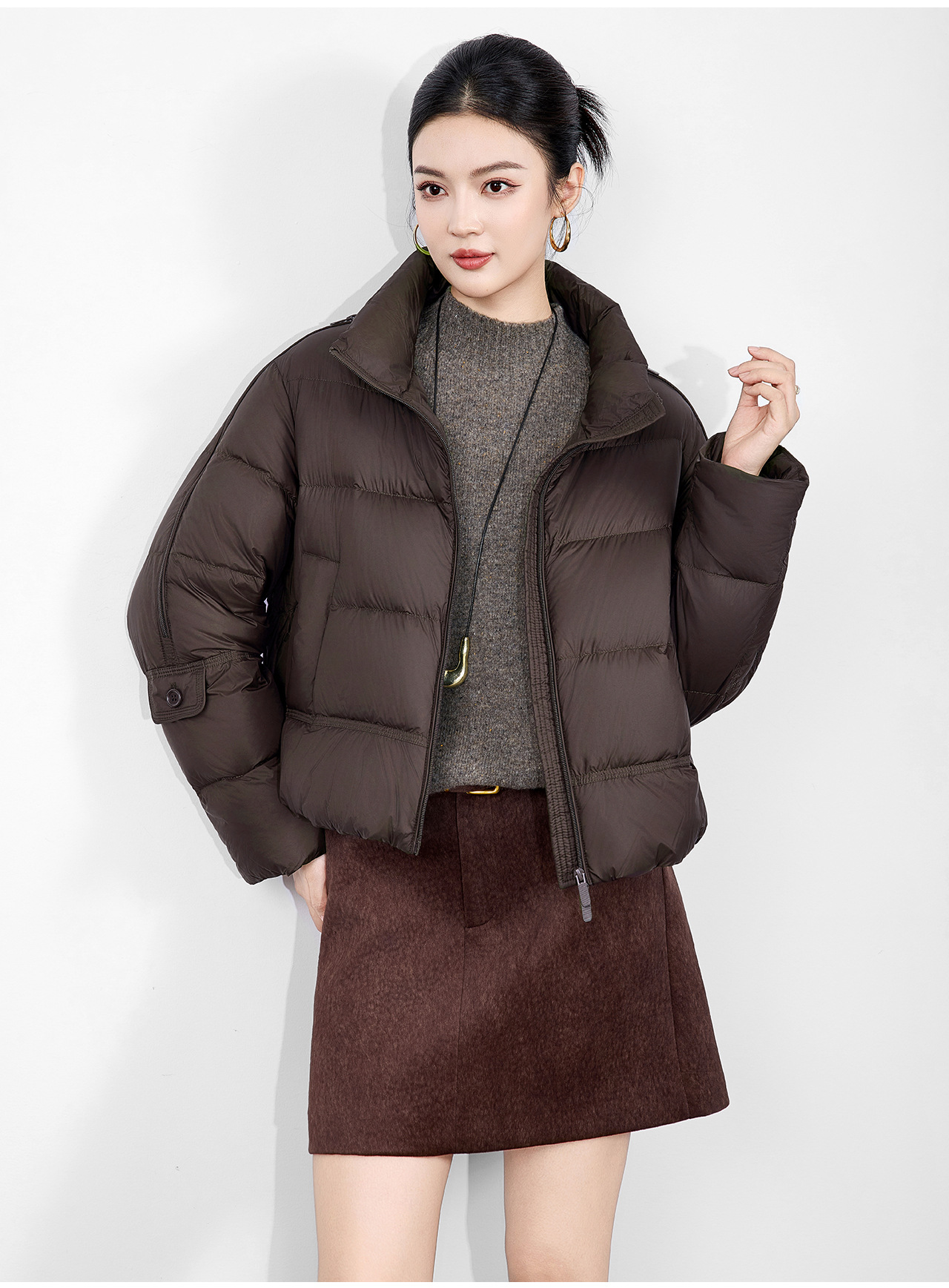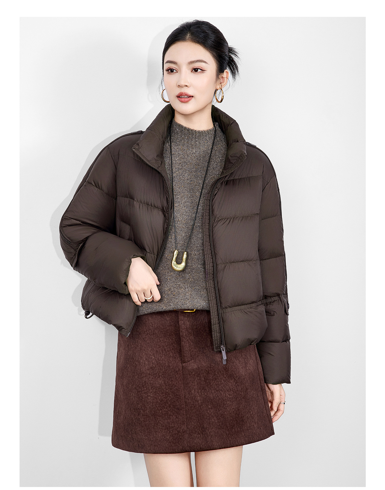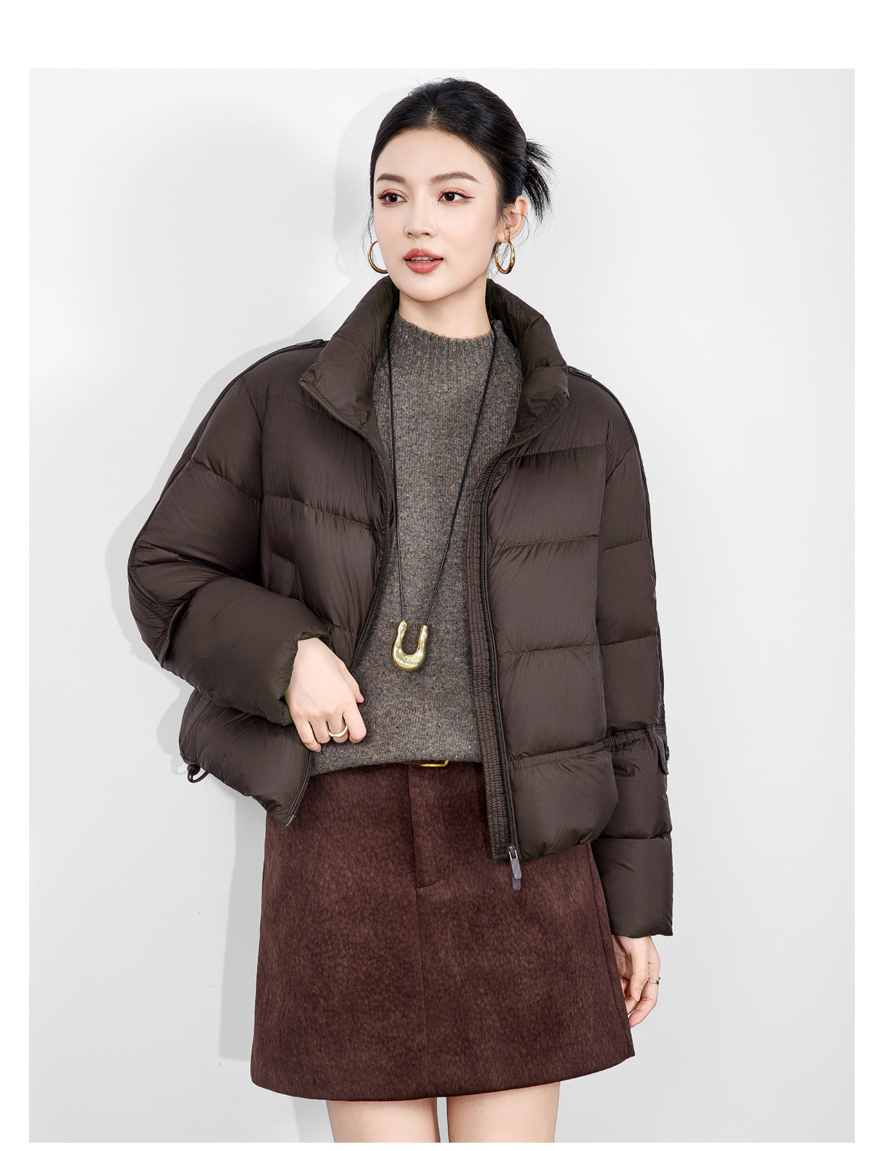 「高货wl」全新升级【铂金会员542/天猫729/差价187】(02927)洛诗琳气质90白鸭绒立领羽绒服2025冬季百搭泡芙保暖外套