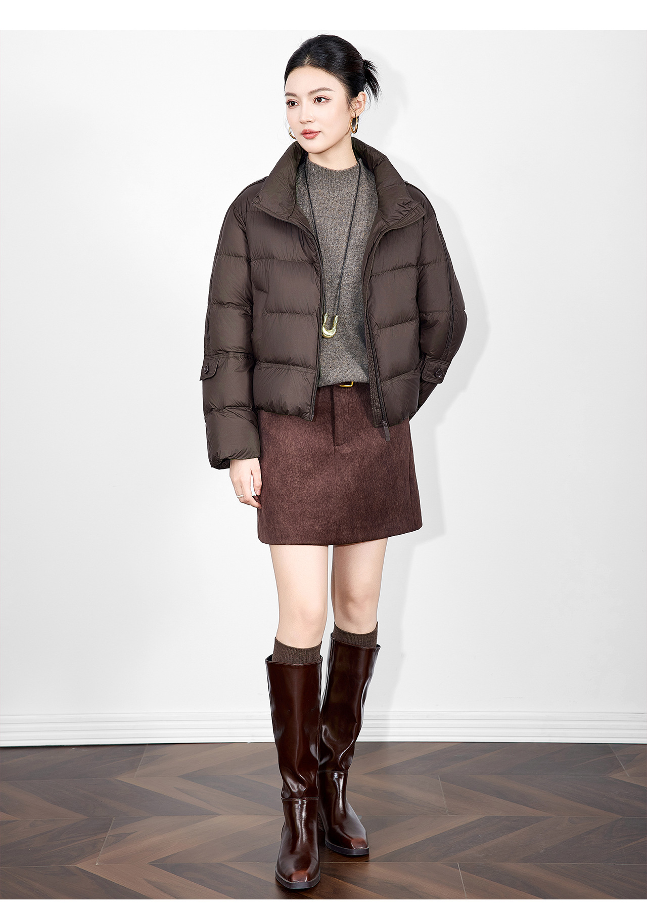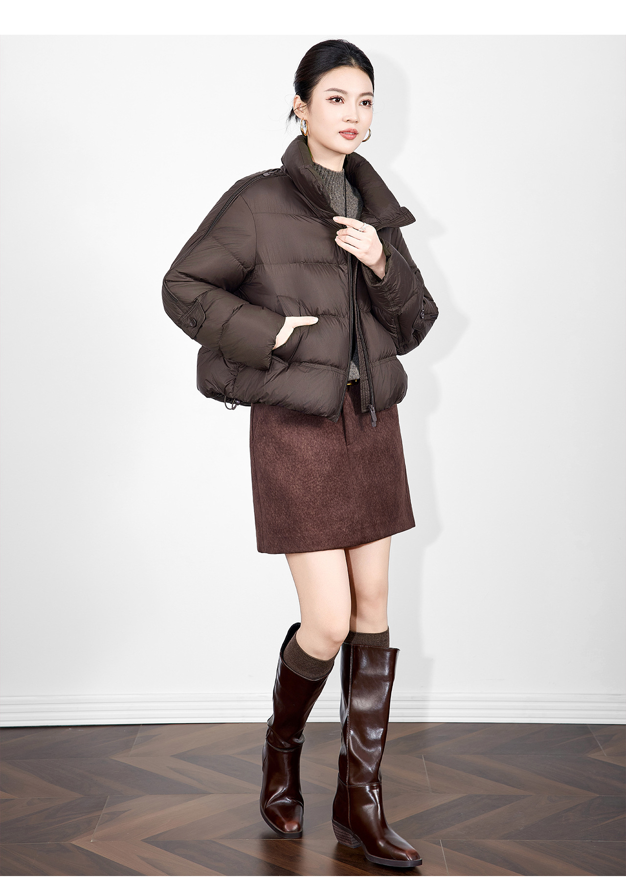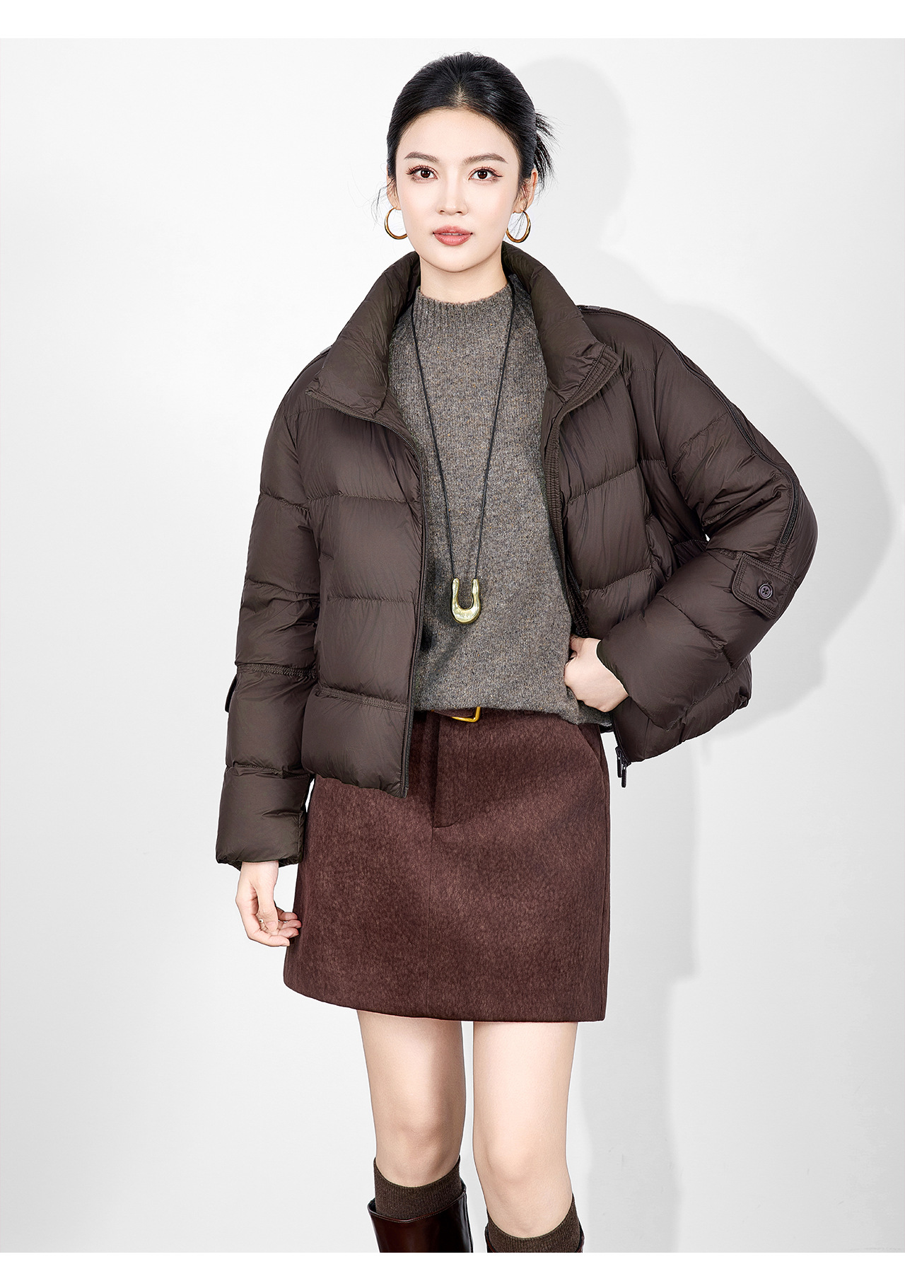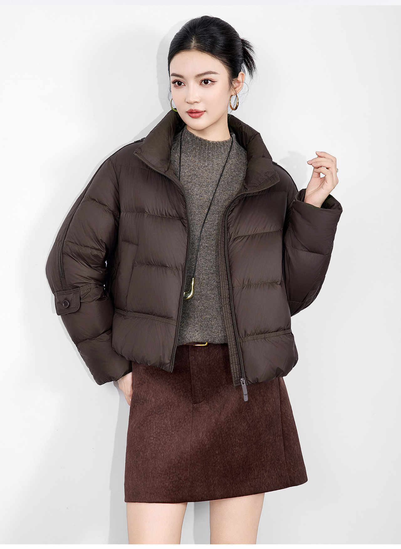 「高货wl」全新升级【铂金会员542/天猫729/差价187】(02927)洛诗琳气质90白鸭绒立领羽绒服2025冬季百搭泡芙保暖外套