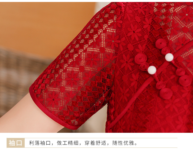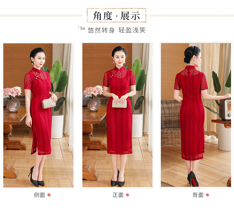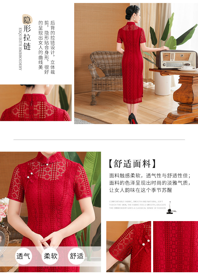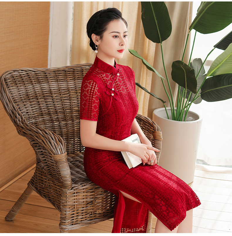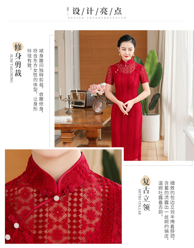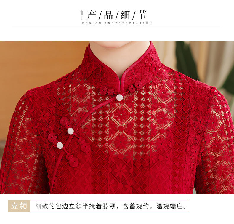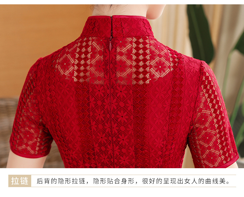 TZRY-11202新款春夏蕾丝旗袍 复古改良中式礼仪红色宴会旗袍