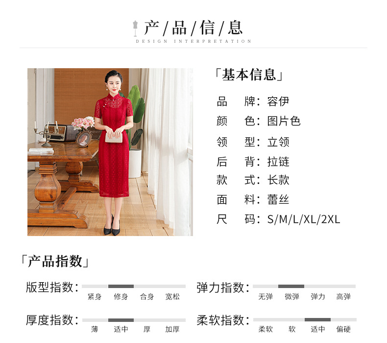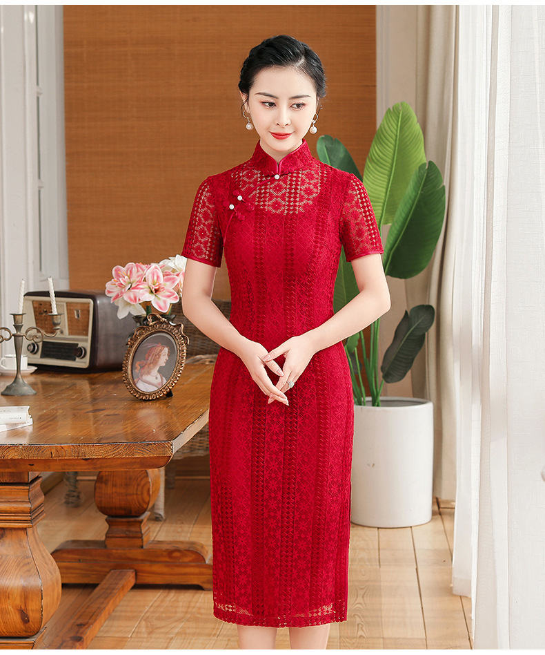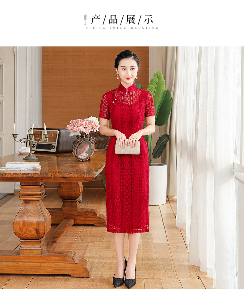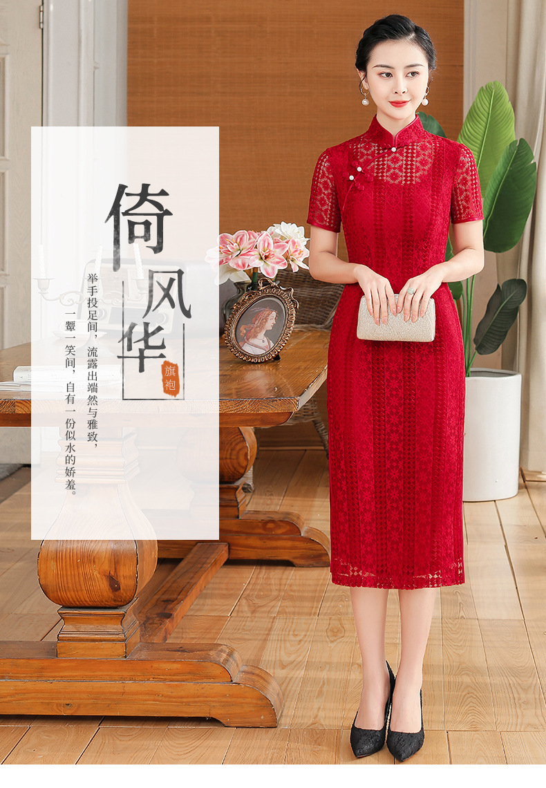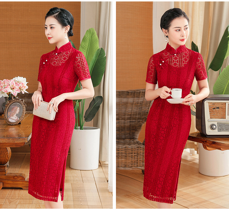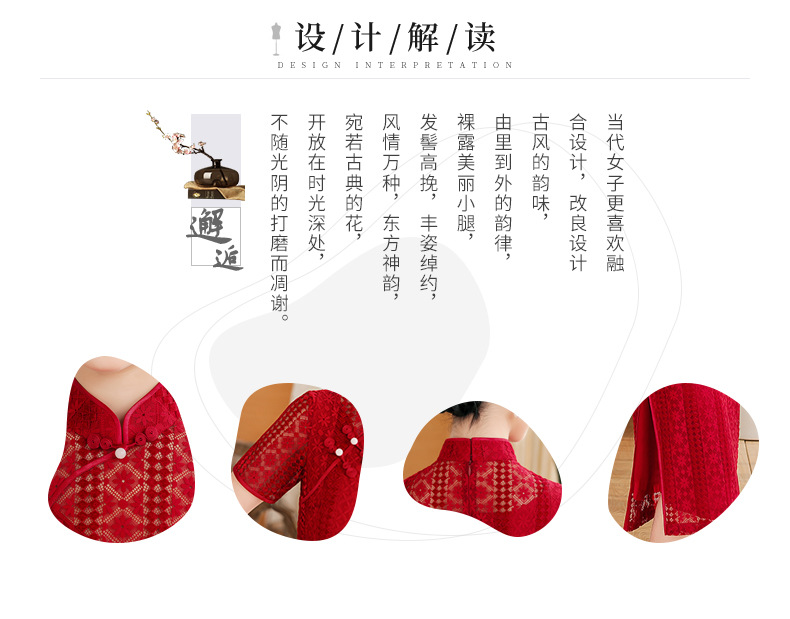 TZRY-11202新款春夏蕾丝旗袍 复古改良中式礼仪红色宴会旗袍