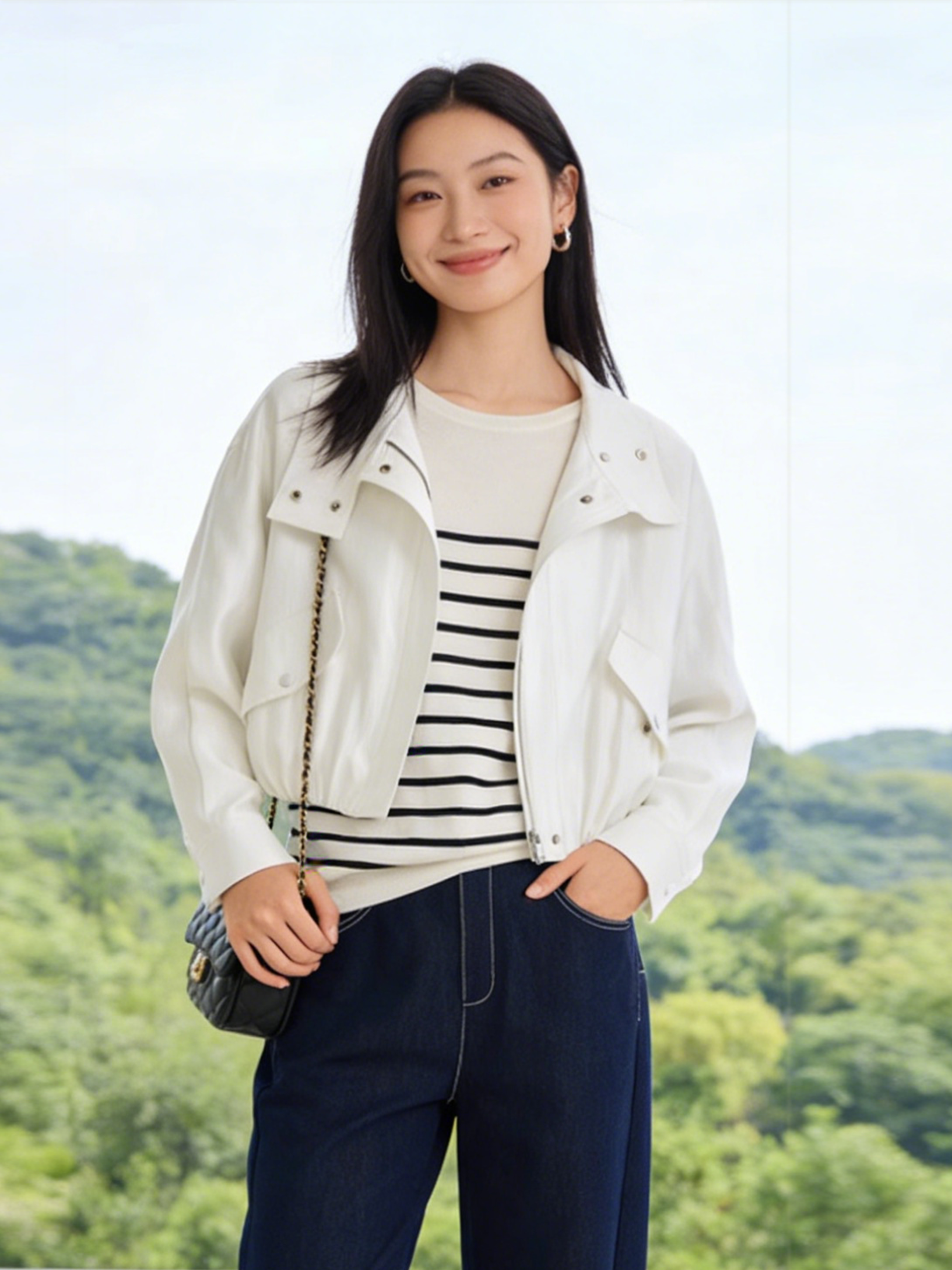 现货 臣禾 【轻氧珠光短外套】小个子必备立翻领休闲夹克 9261010175