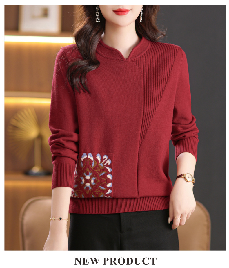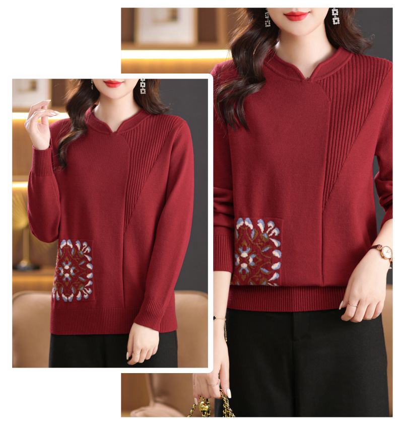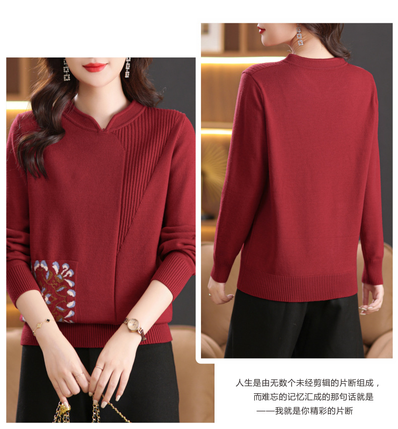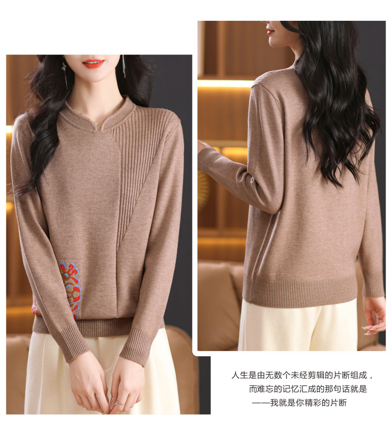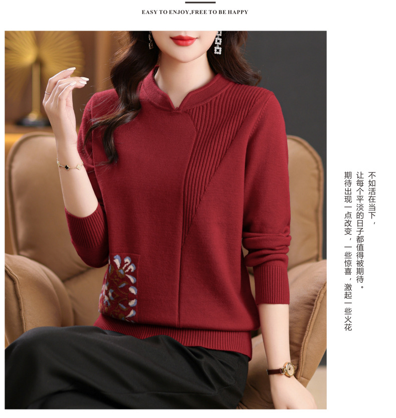 CC-MS-6910妇女秋装上衣2024耐穿气质洋气衣服妈妈长袖国风立领毛衣女装