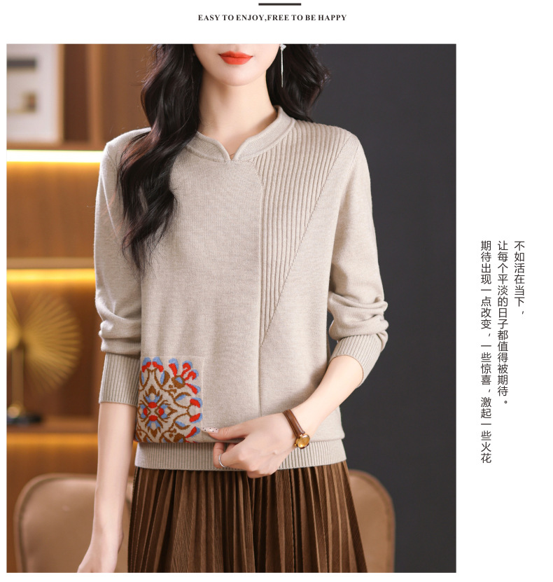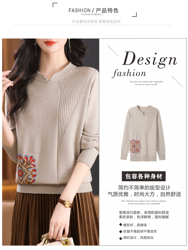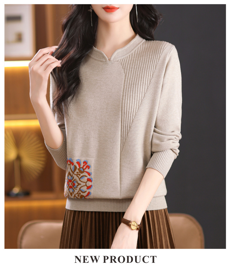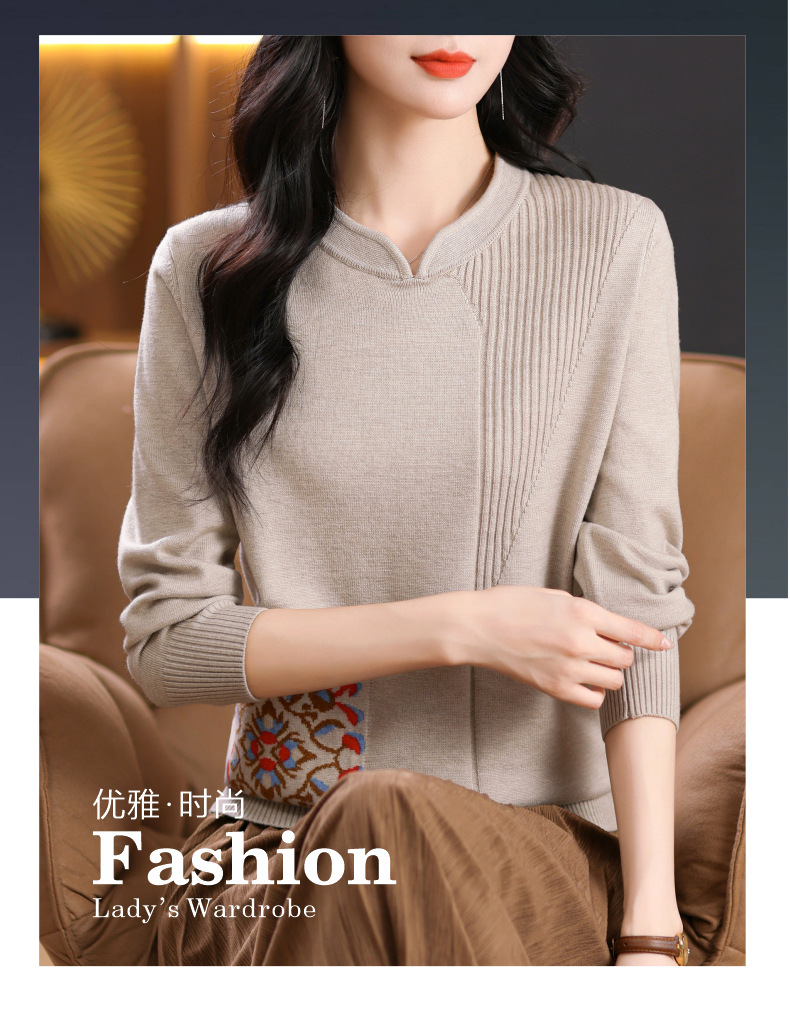 CC-MS-6910妇女秋装上衣2024耐穿气质洋气衣服妈妈长袖国风立领毛衣女装