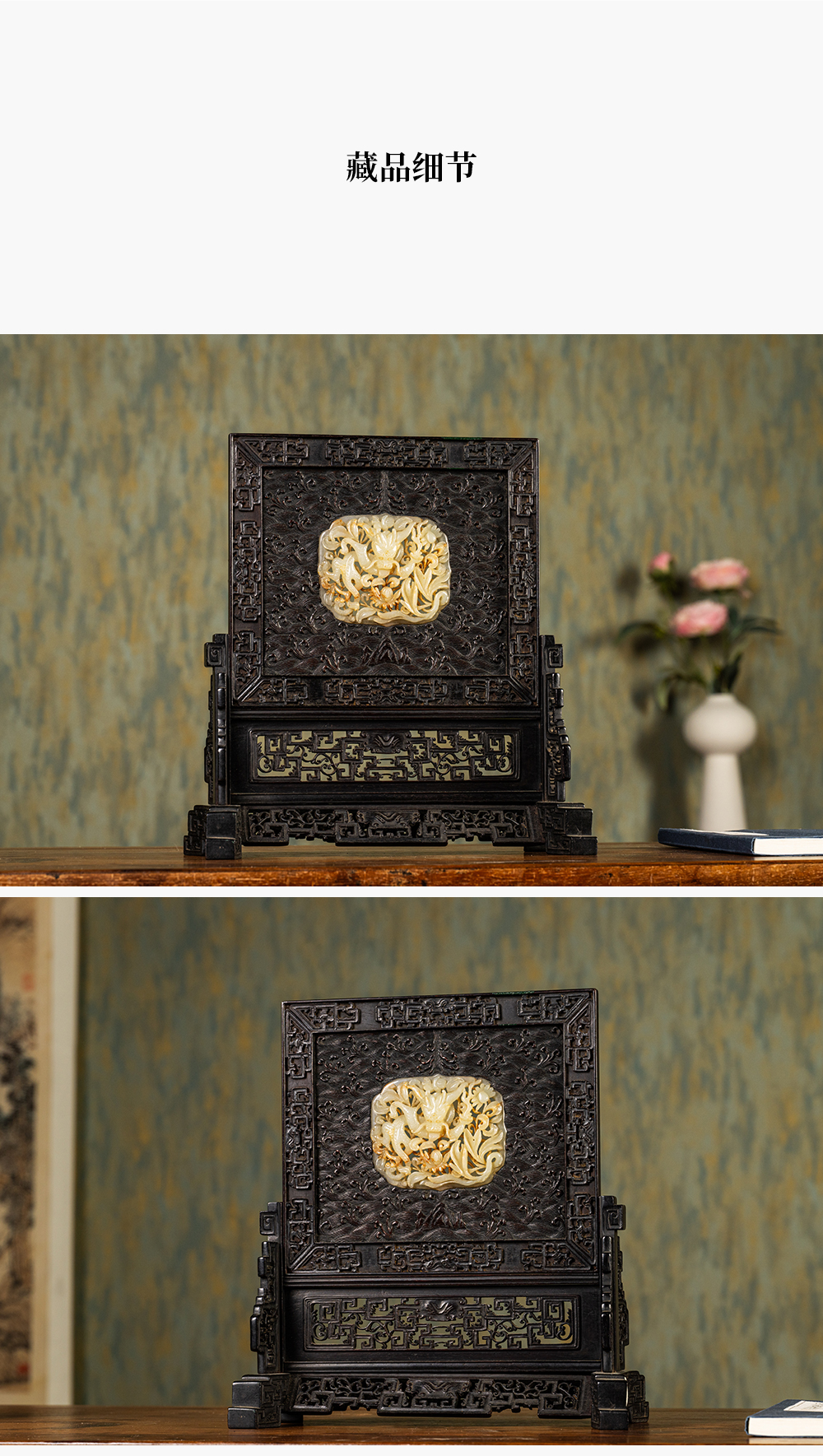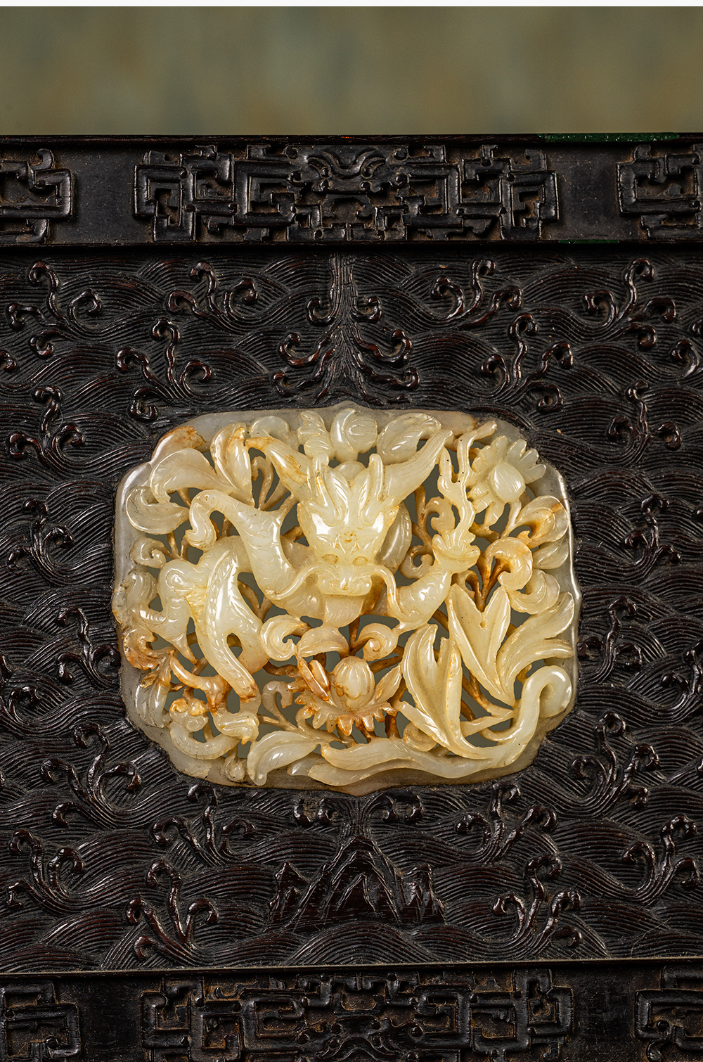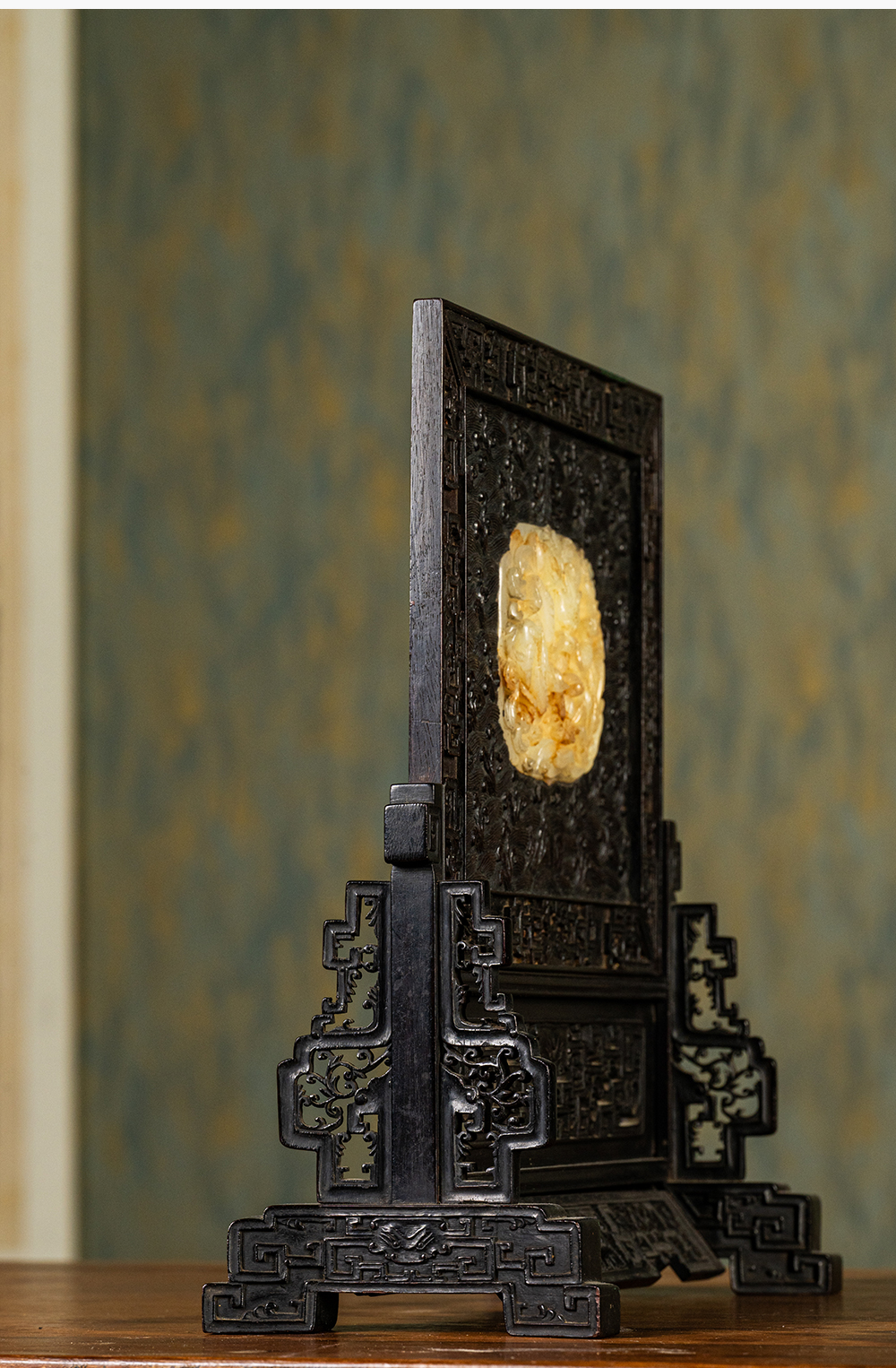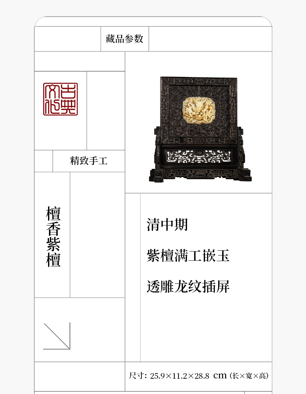 清中期 紫檀满工嵌玉透雕龙纹插屏