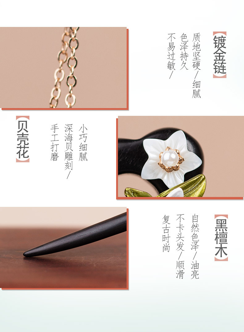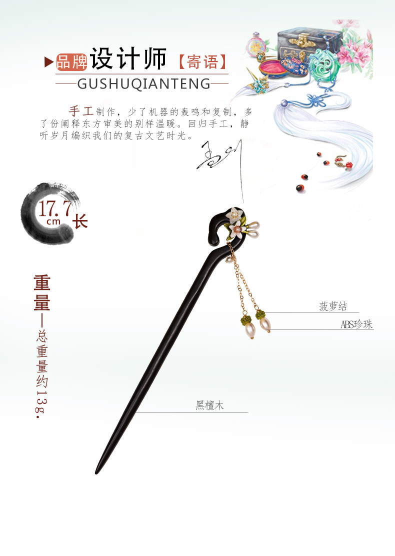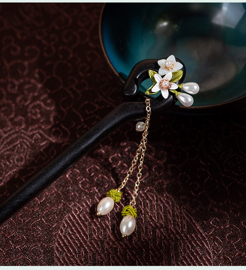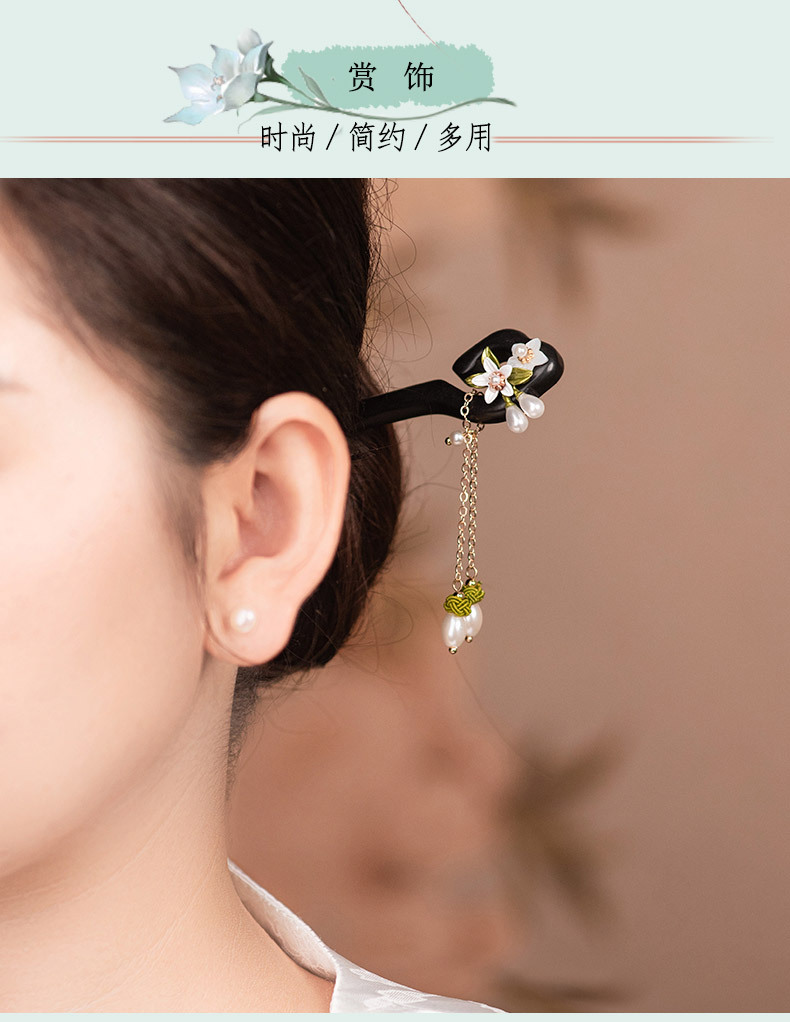 JGL发簪新中式清新铃兰木簪盘发旗袍配饰复古珍珠流苏头饰清冷感发饰