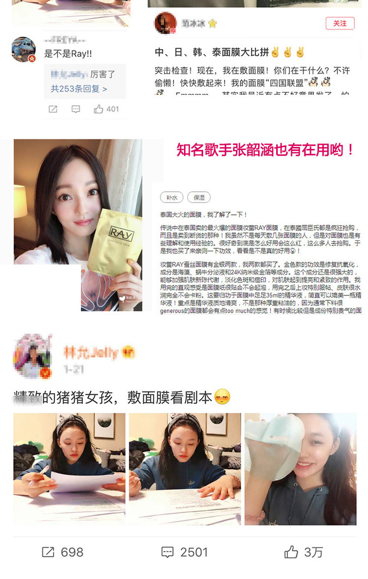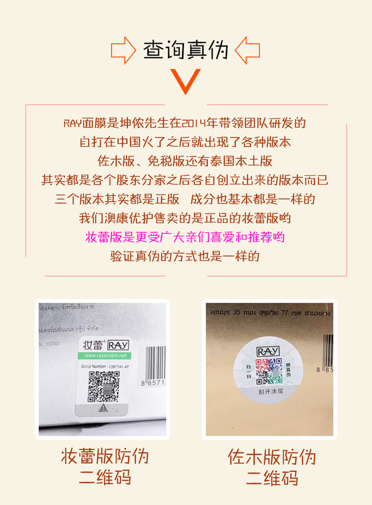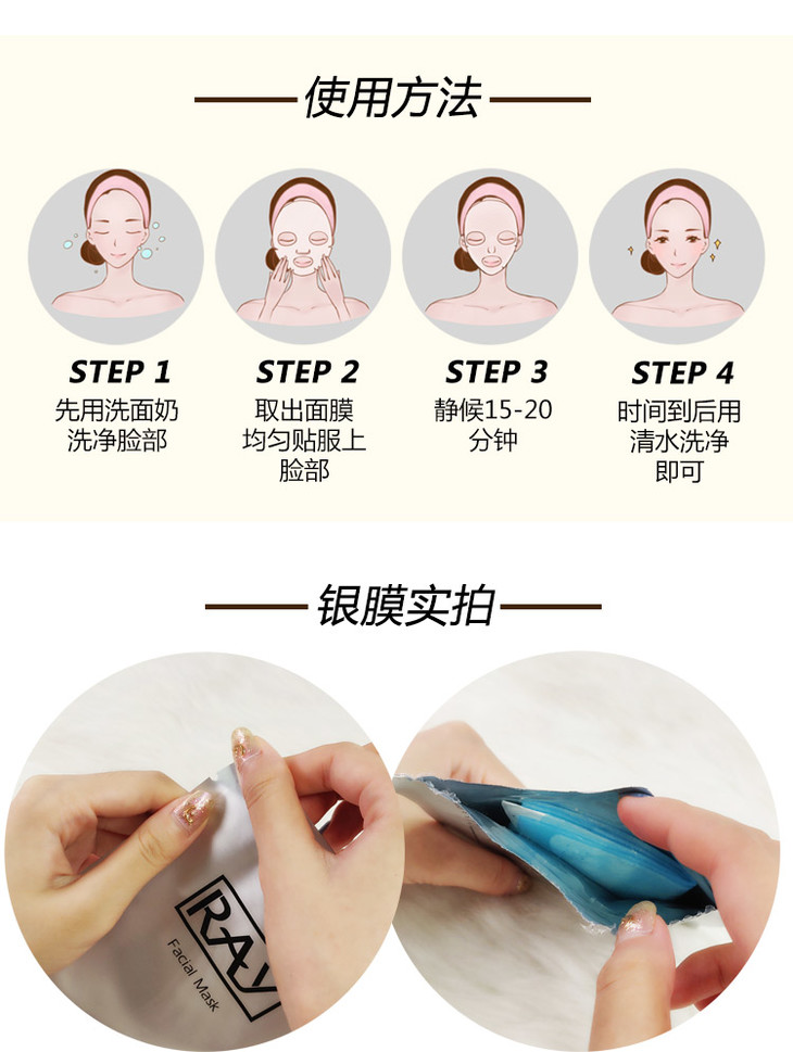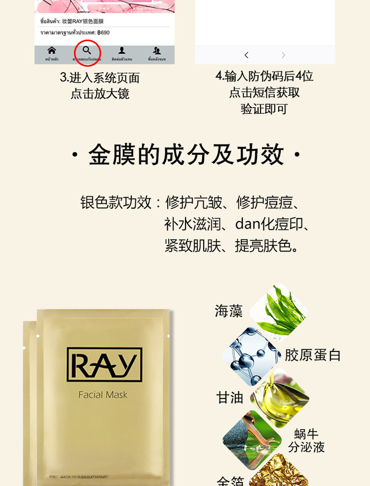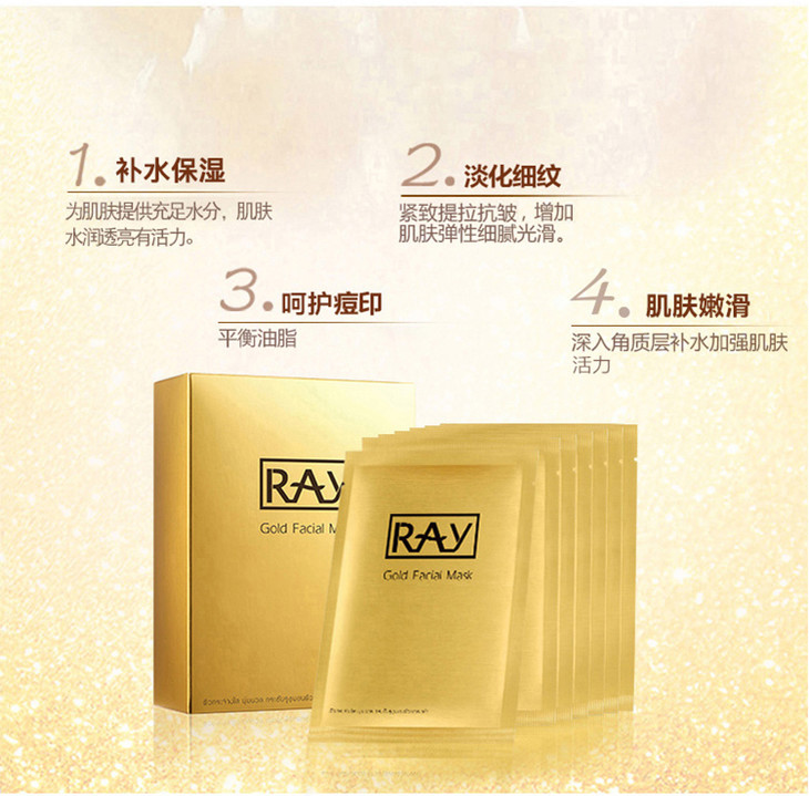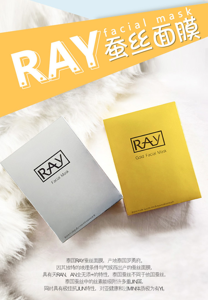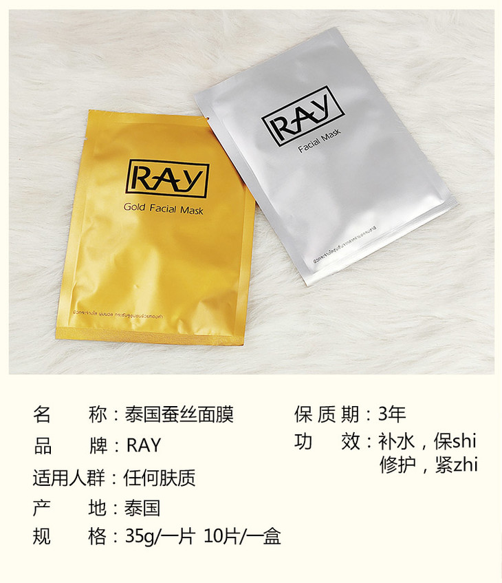 ❄️BX👑 泰國RAY面膜👏 精華超多的一款面膜Ray蠶絲面膜一盒10片,每片35g。❗ 【銀色款主要功效】清潔補水、嫩膚抗皺、抗氧化、收縮毛孔、😍 修復曬後紅腫,提亮膚色。【金色款主要功效】🙌 補水保濕、修復痘痘❗ 、痘印,提拉緊致、淡化斑點、紅血絲,提亮膚色。✌ ✌