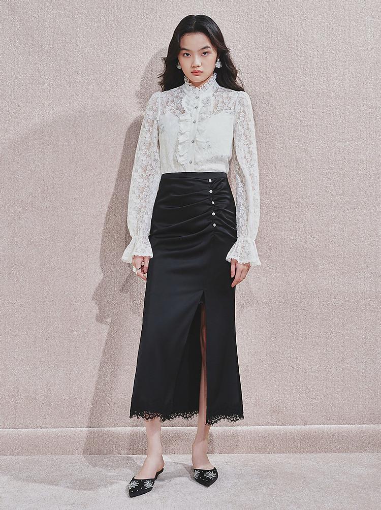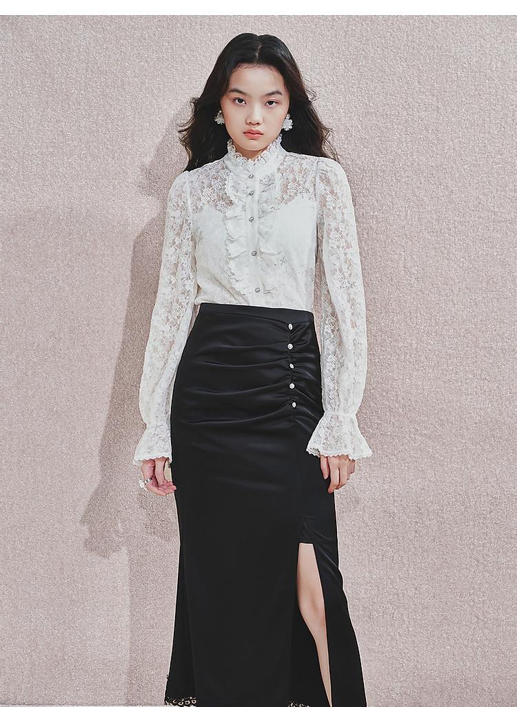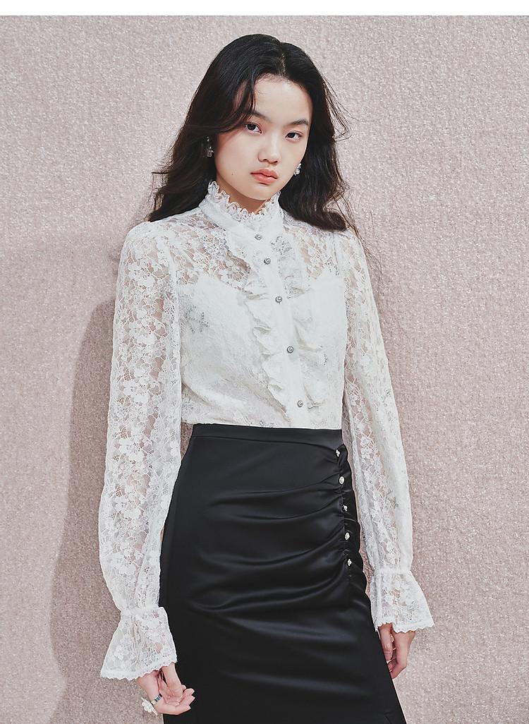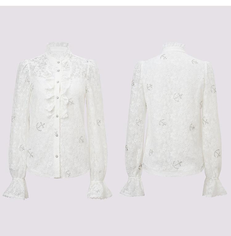 清雅蕾丝上衣宫廷复古风蕾丝雪纺衬衫女