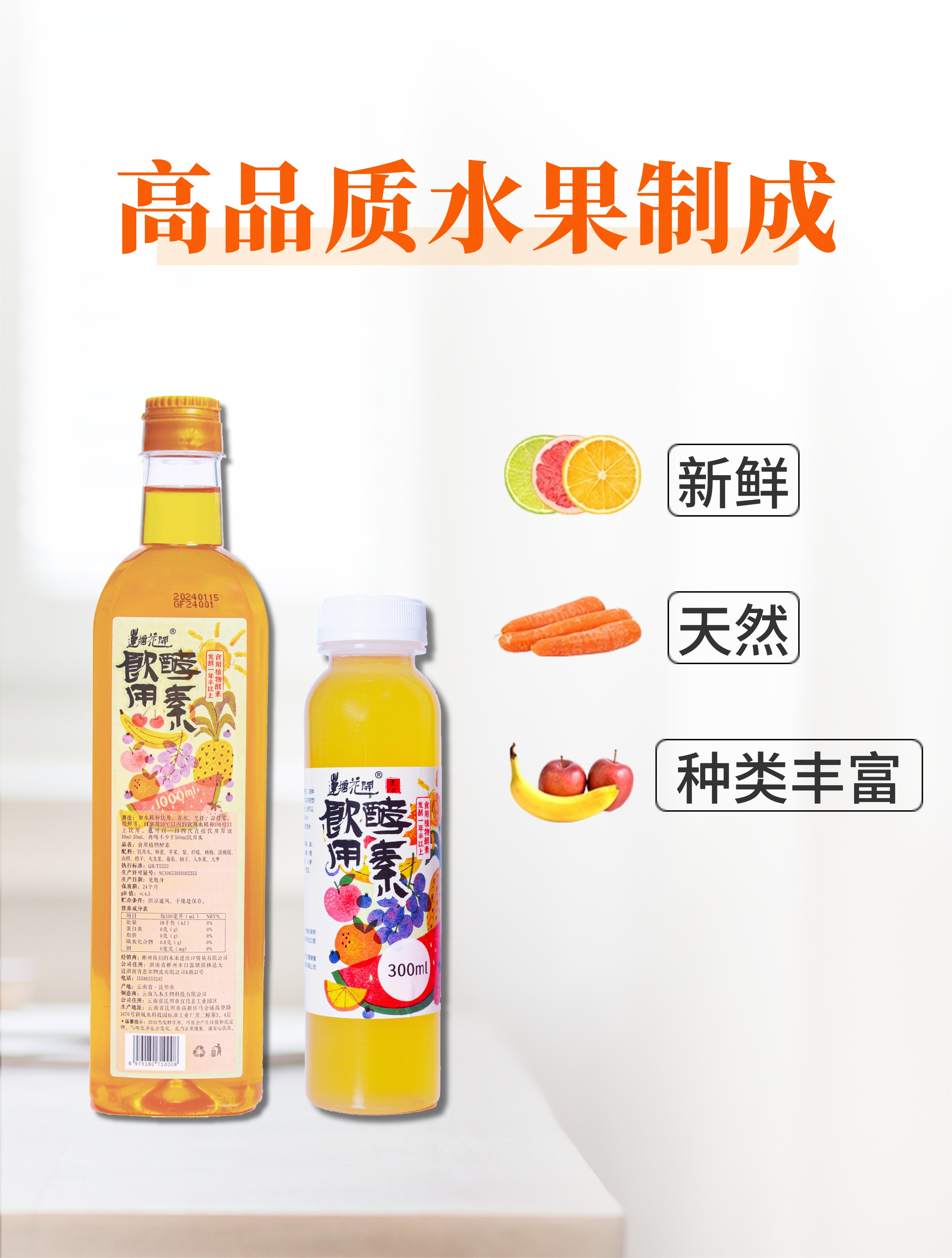 食用植物酵素 (含蜂蜜) | 300ml/1000ml 直接饮用或稀释后饮用 养水养油养盐 莲塘花开
