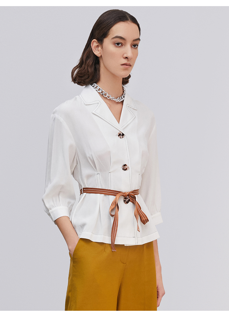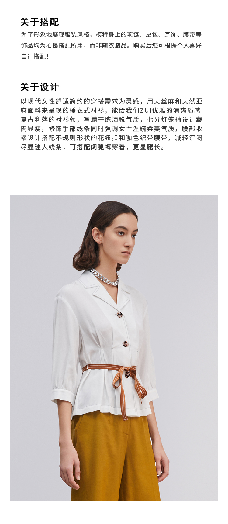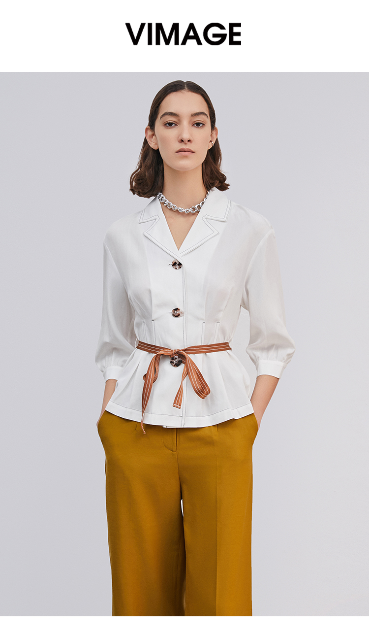 VIMAGE纬漫纪春季新款通勤百搭翻领七分袖收腰显瘦短上衣衬衫