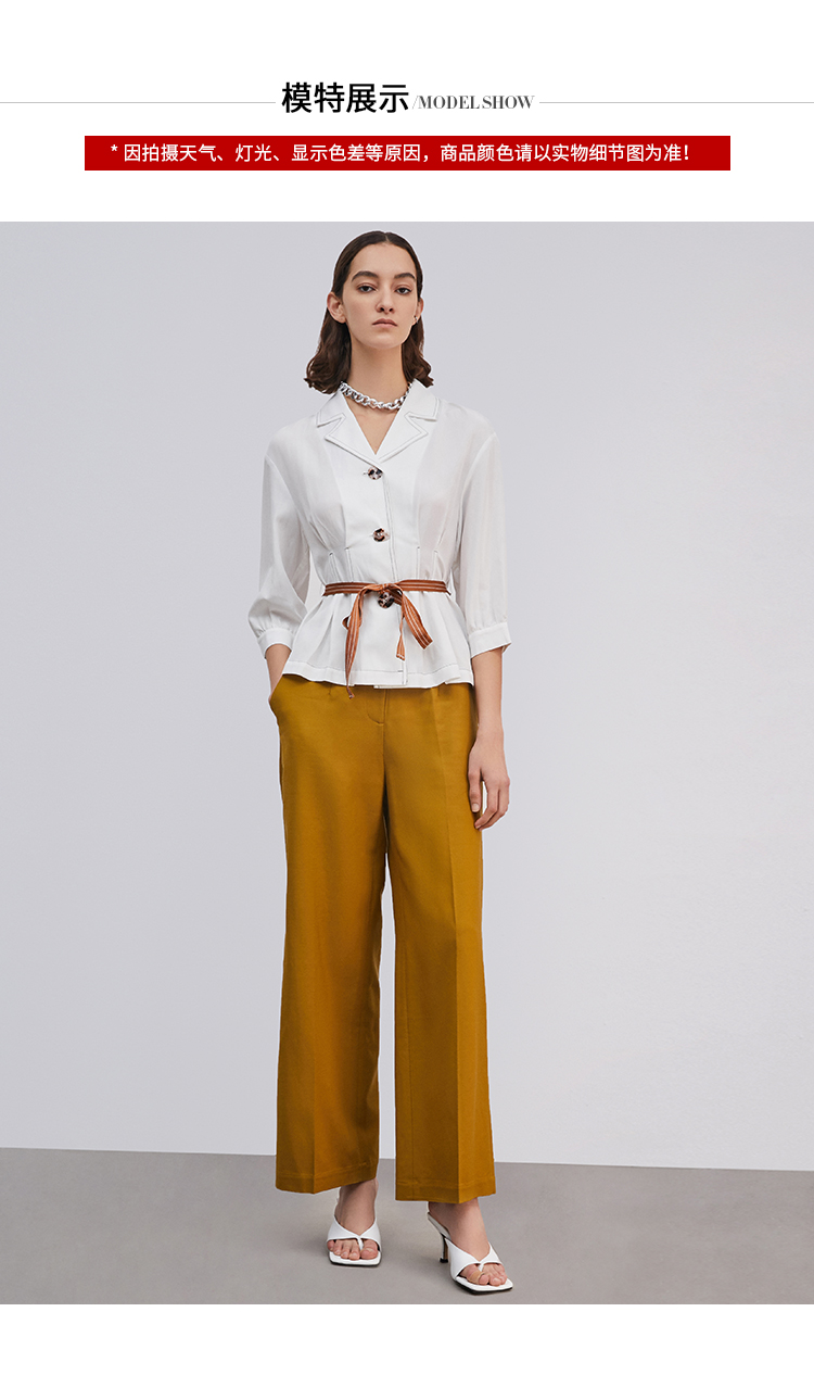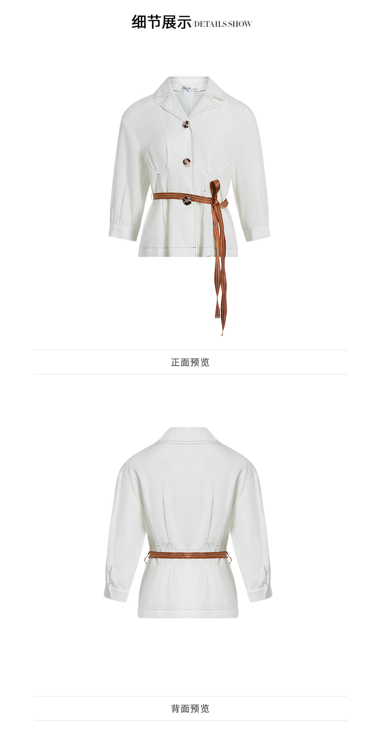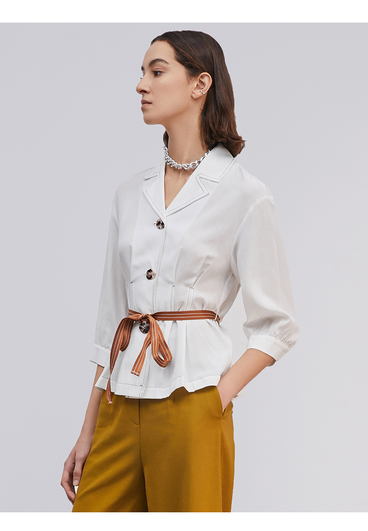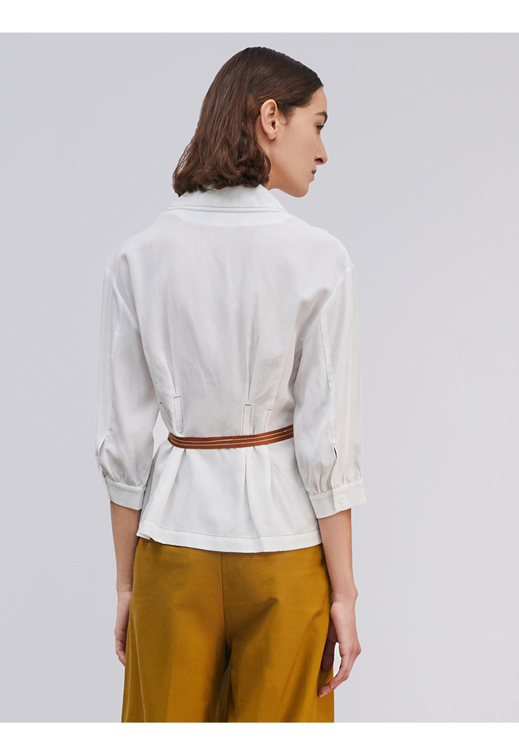 VIMAGE纬漫纪春季新款通勤百搭翻领七分袖收腰显瘦短上衣衬衫
