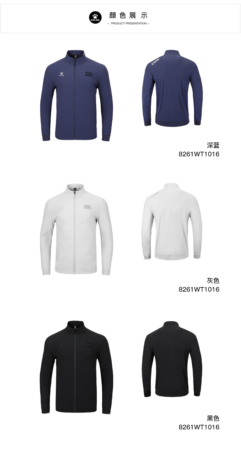 卡尔美针织夹克外套男2022秋冬款立领运动队服定制训练开衫