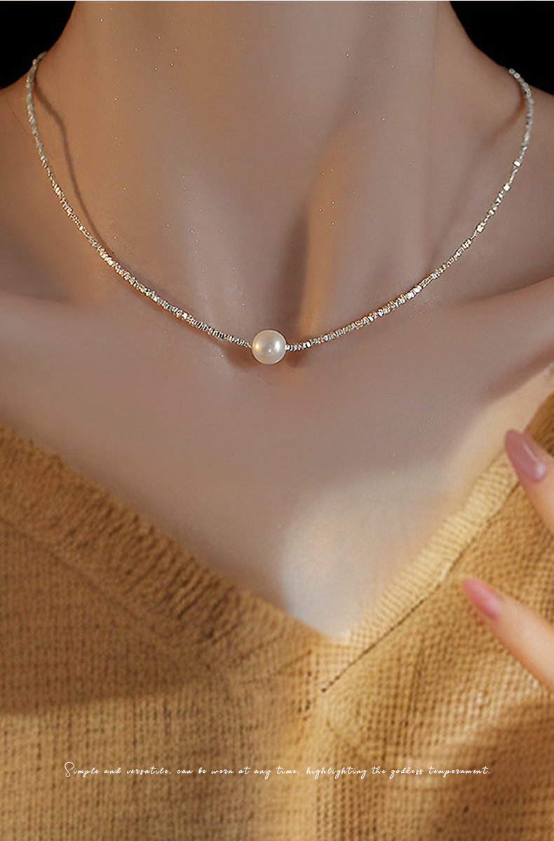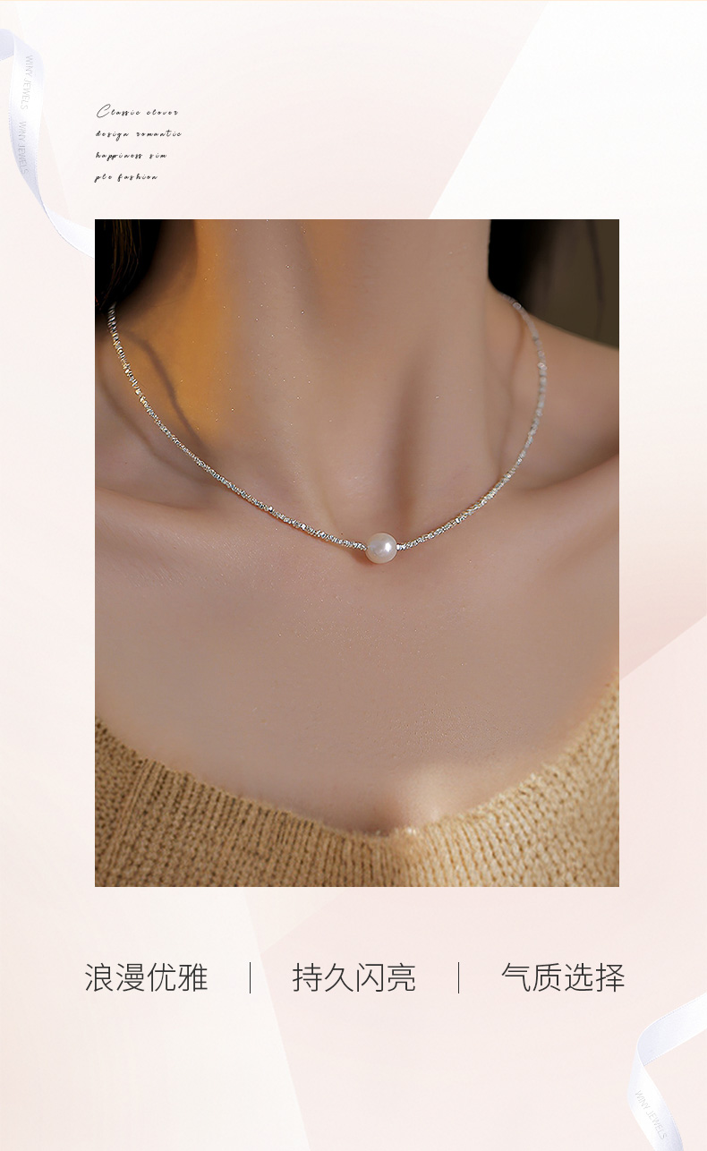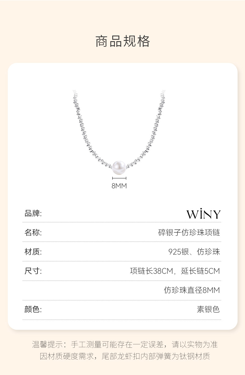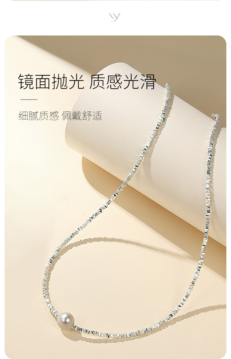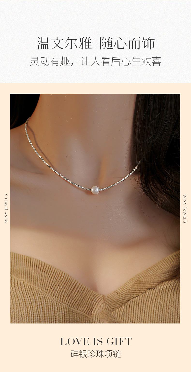 Winy925纯银梦幻碎银项链轻奢小众碎银子珍珠项链送女友节日生日礼物