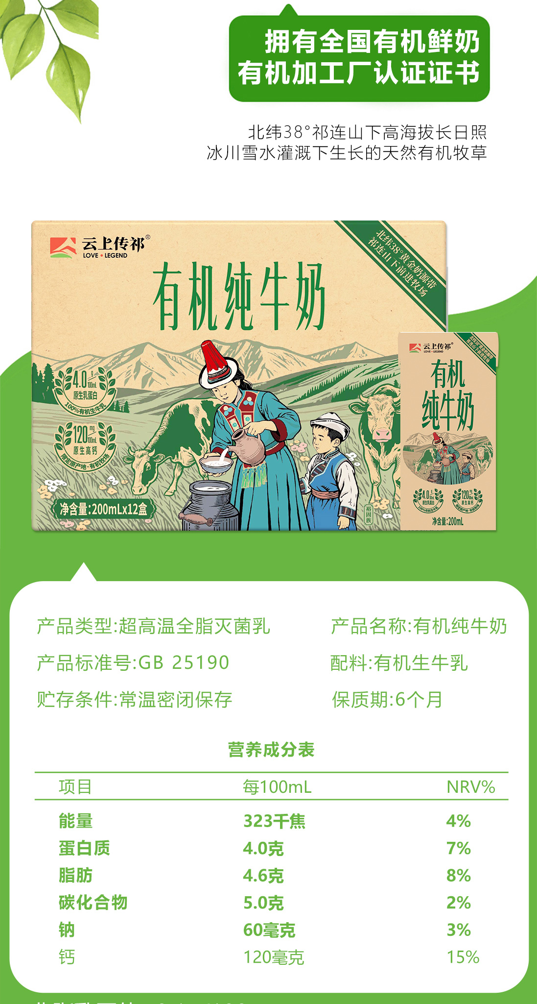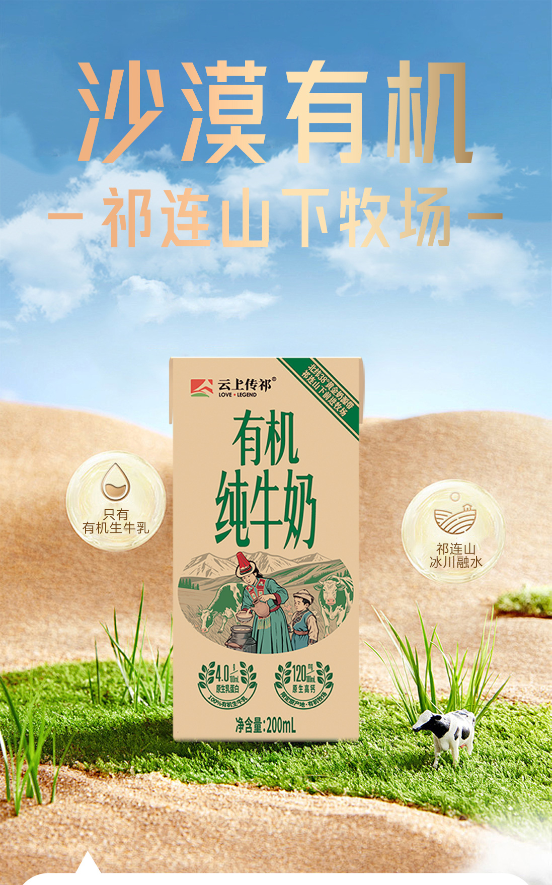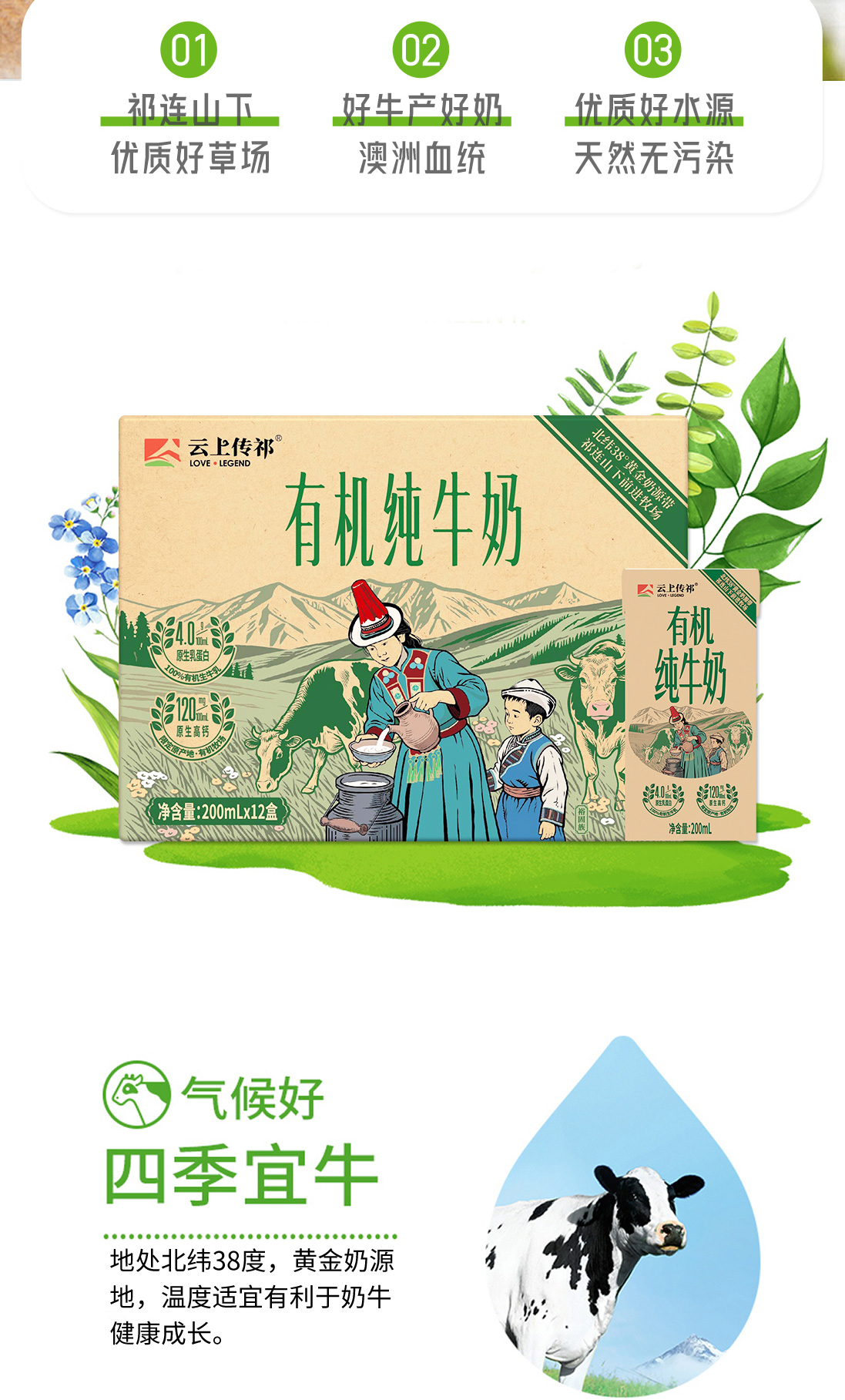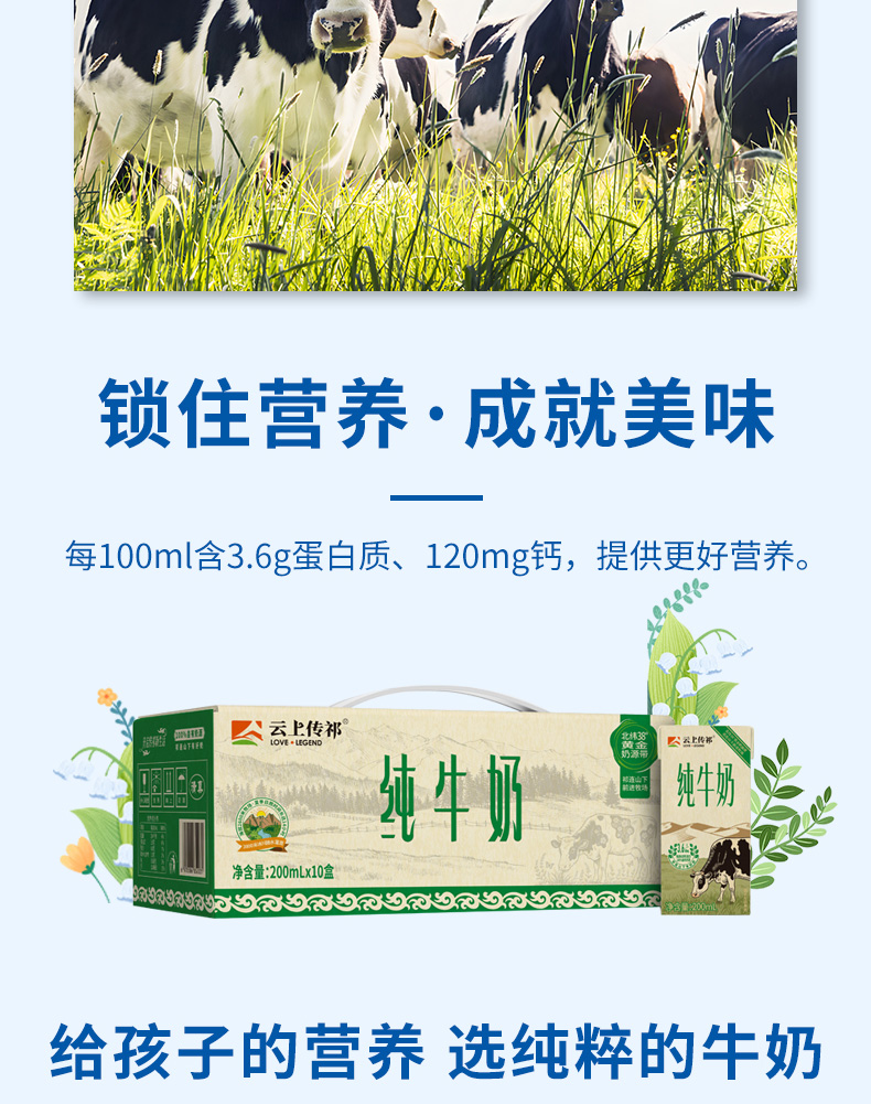 云上传祁 祁连山牧场纯牛奶200ml*10盒/箱*3提/有机纯牛奶200ml*12盒/箱*2提