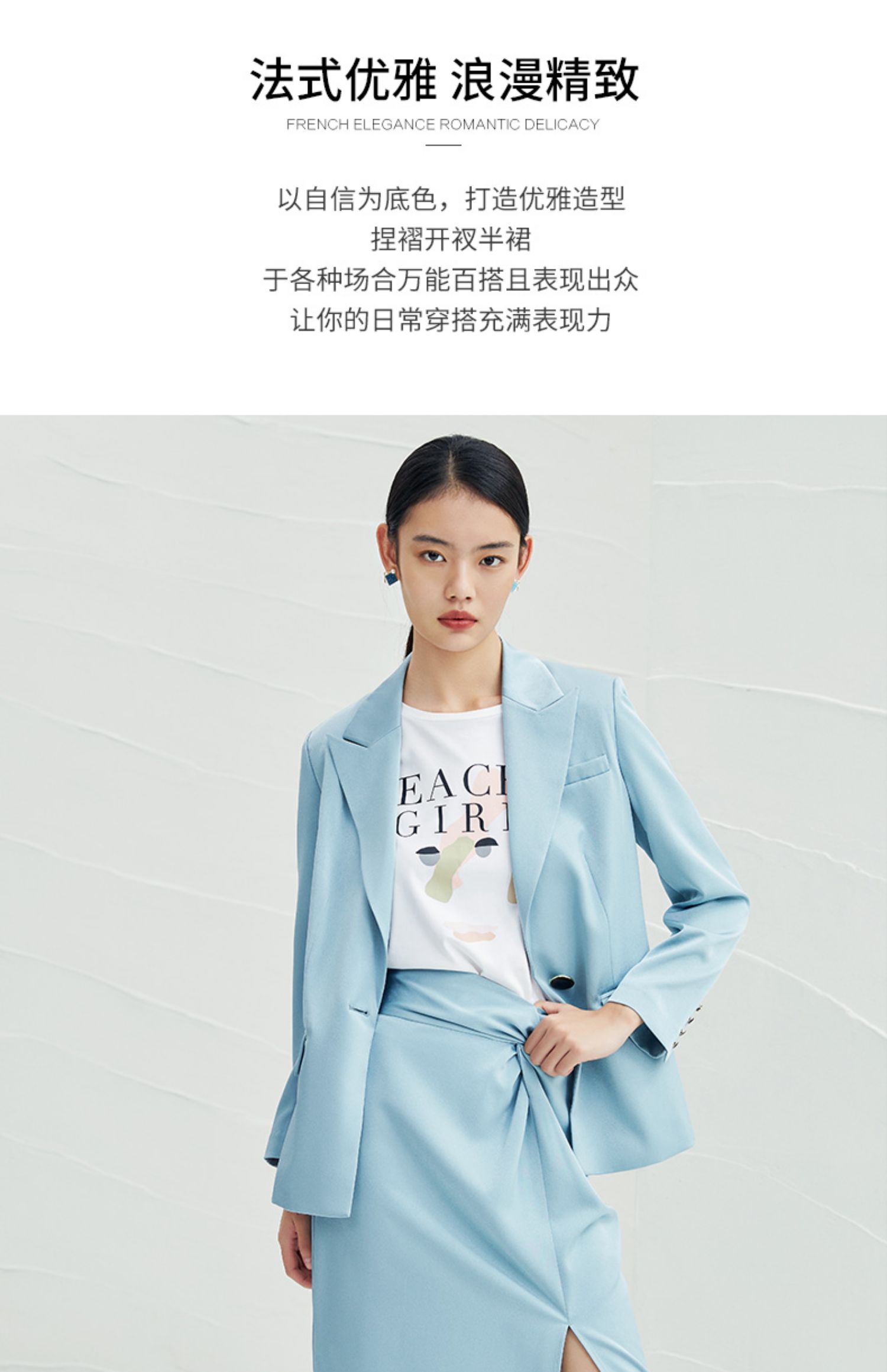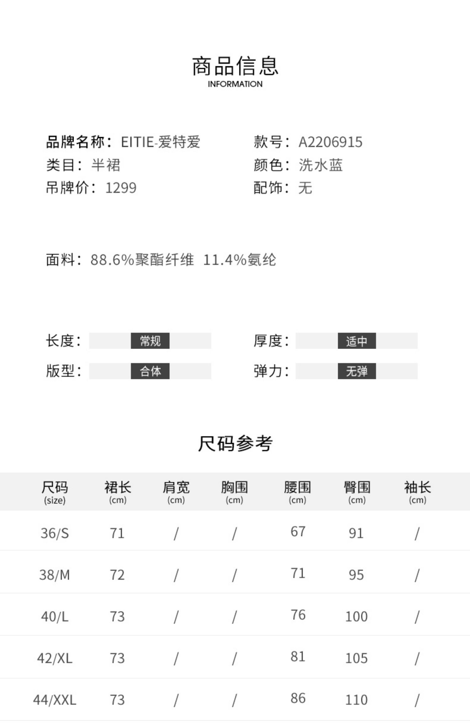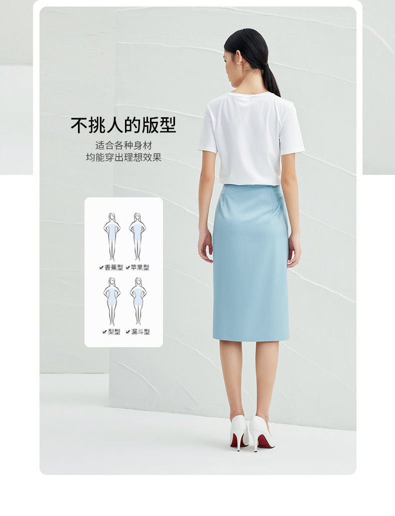 EITIE爱特爱春季新款高腰开叉时尚设计感纯色通勤显瘦半身裙A2206915