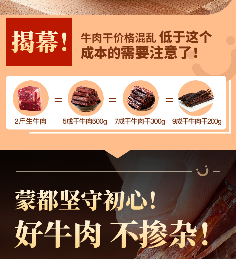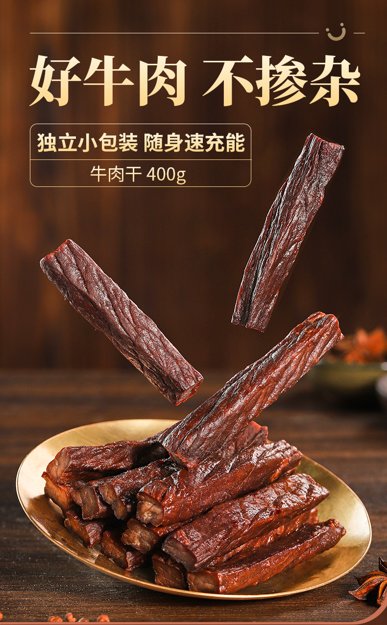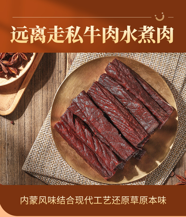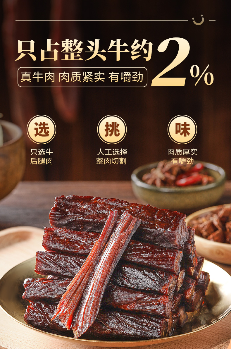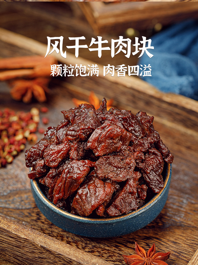 【成分】风干牛肉块:牛肉、植物油,食用盐、白砂糖、酿造酱油、香辛料、食用香料