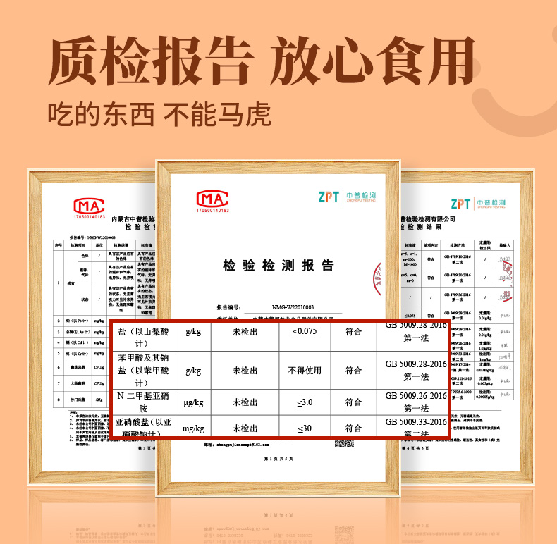 风干牛肉:牛肉、植物油,食用盐、白砂糖、酿造酱油、香辛料、食用香料
