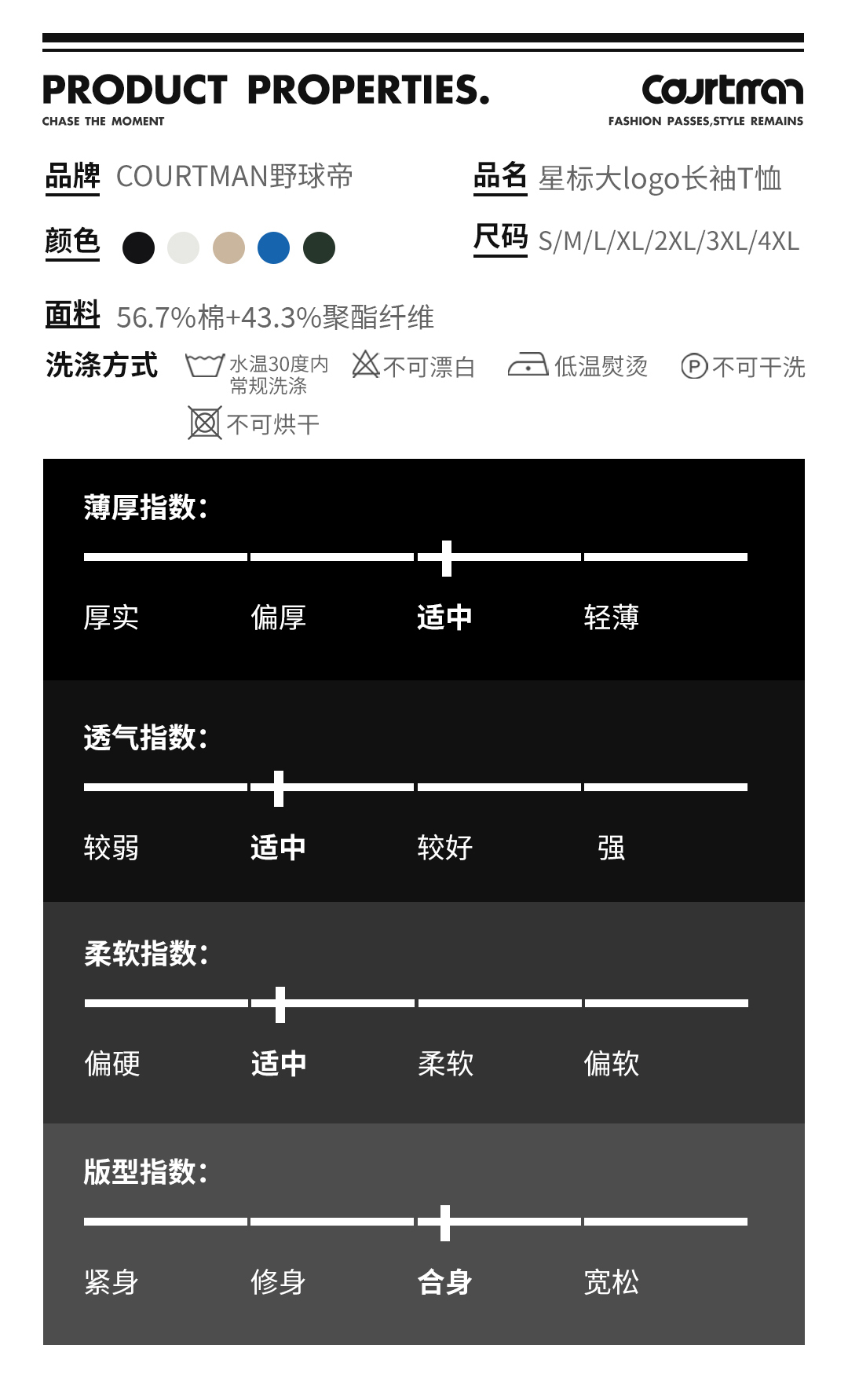 【蛇年好礼】COURTMAN星标LOGO长袖T恤运动休闲美式百搭宽松上衣