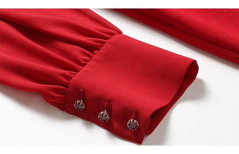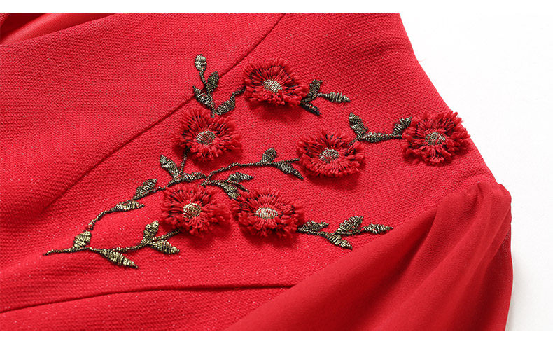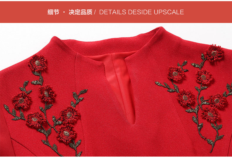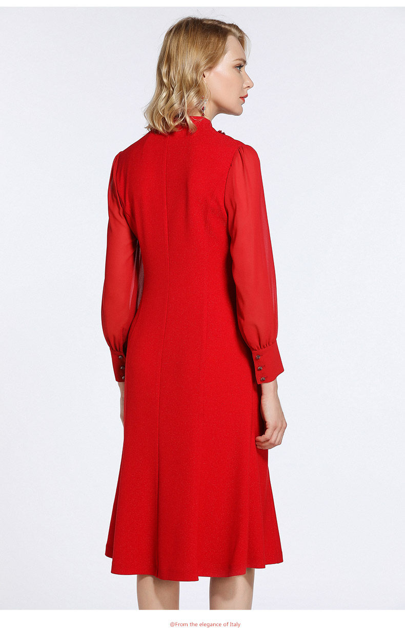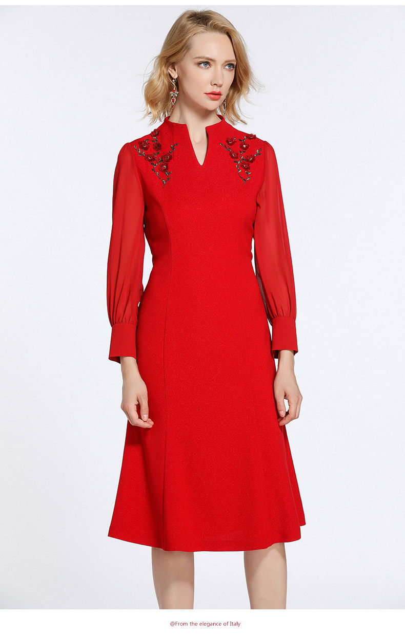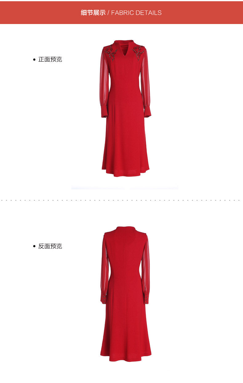 乔万尼春装女春季半高v领修身红色典雅喜宴长袖连衣裙EB3E236