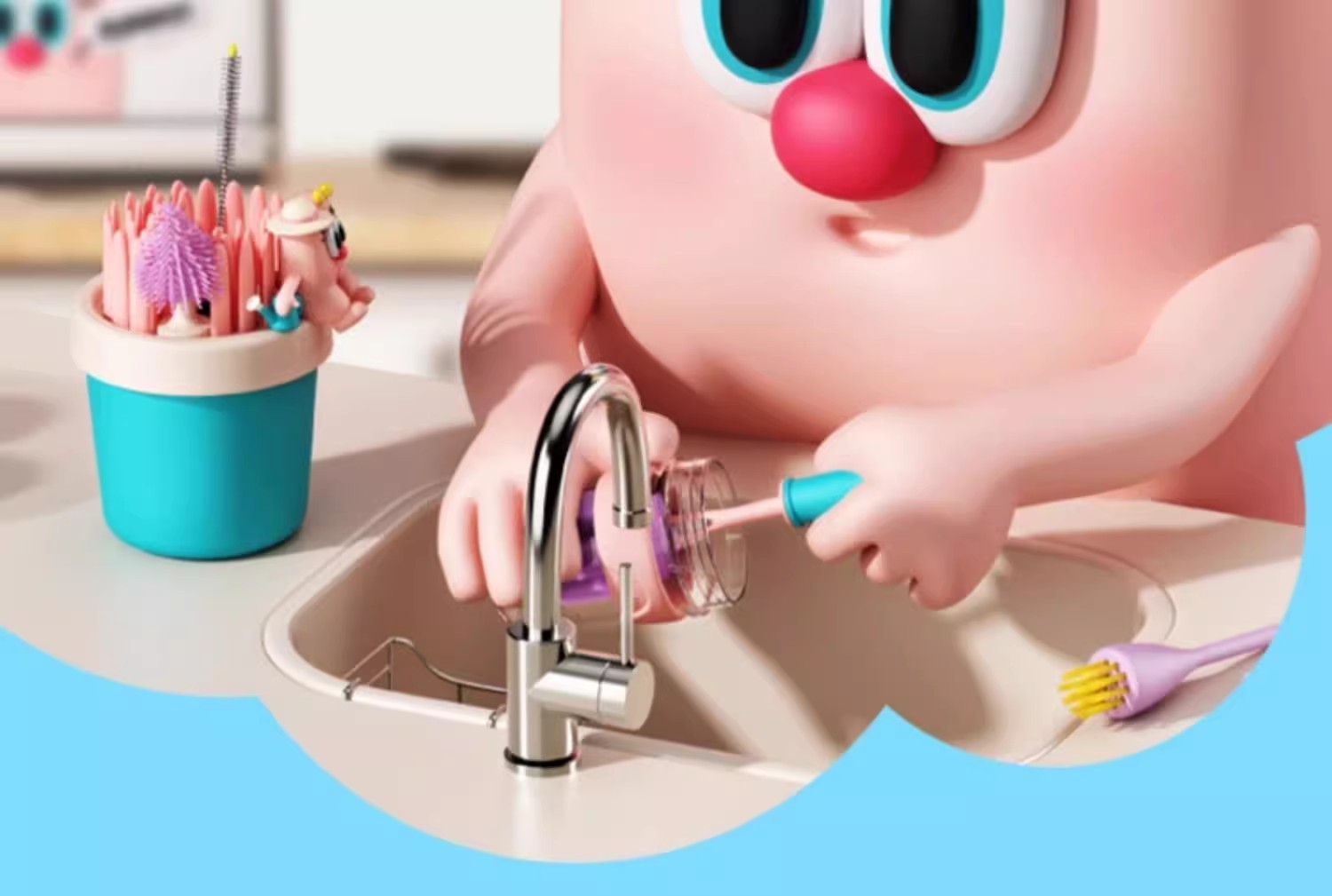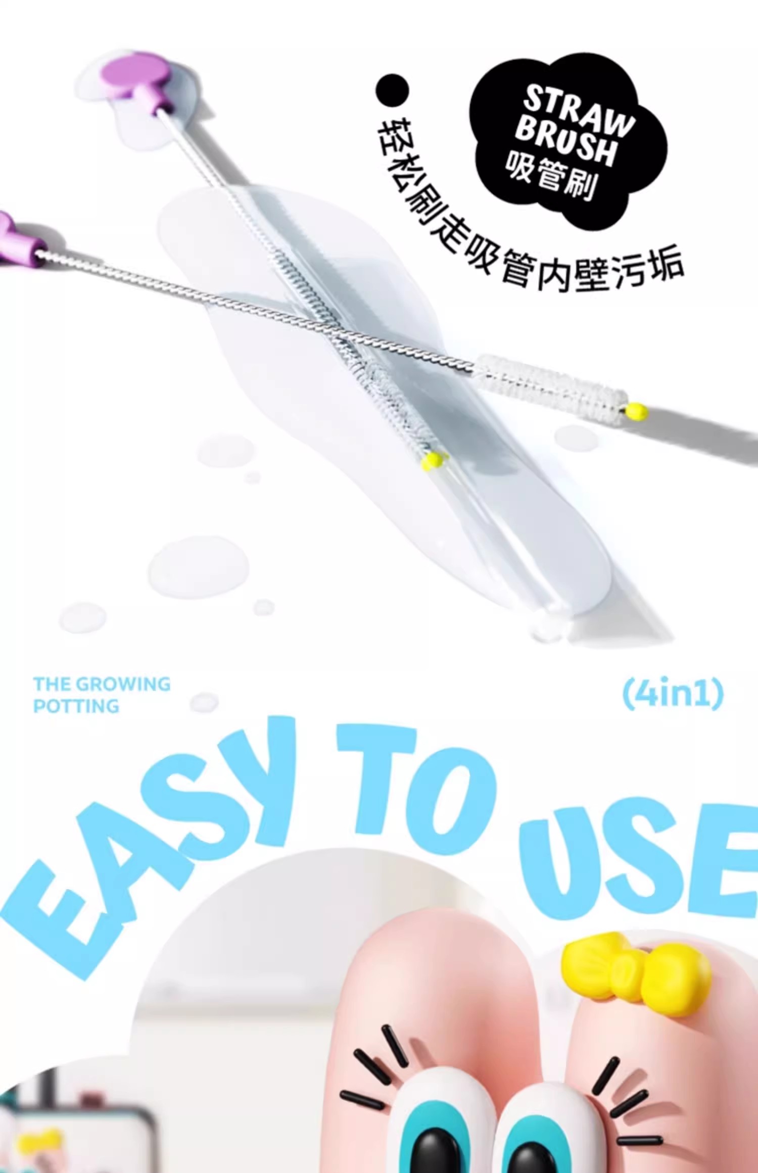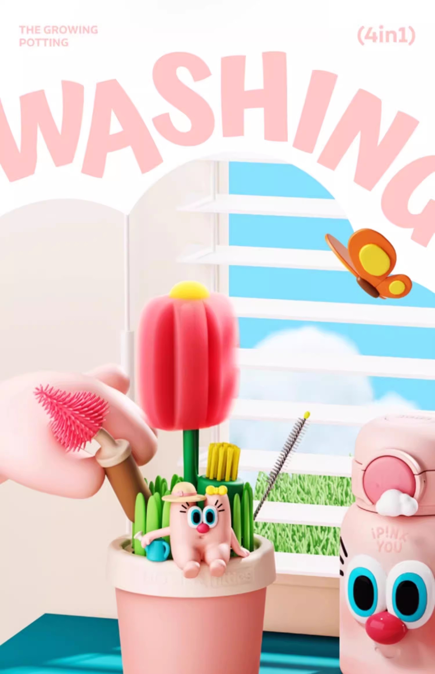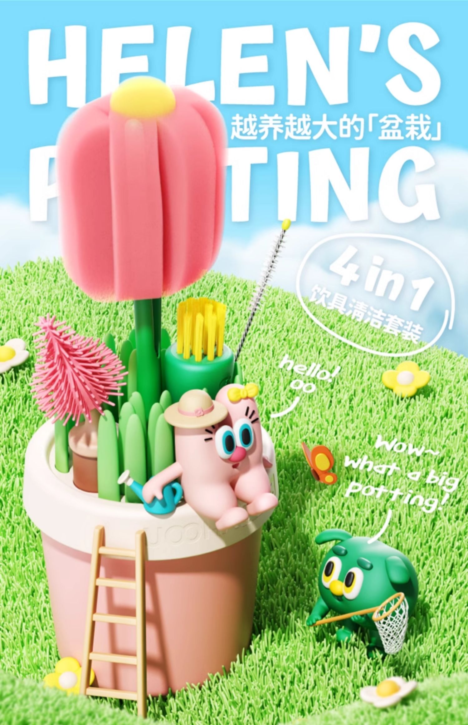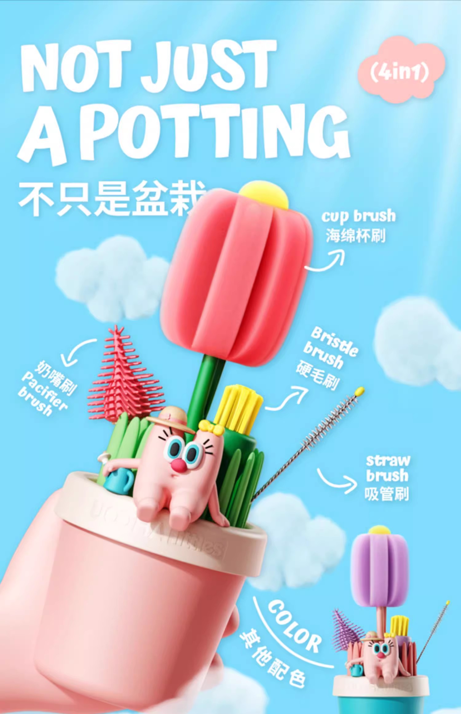 uooha越养越大的盆栽饮具清洁套装(4合1)-红花