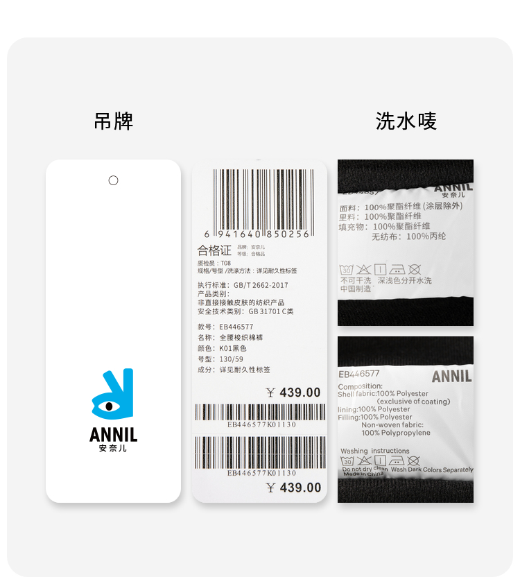男童全腰梭织棉裤冬季新款安奈儿童装EB446577