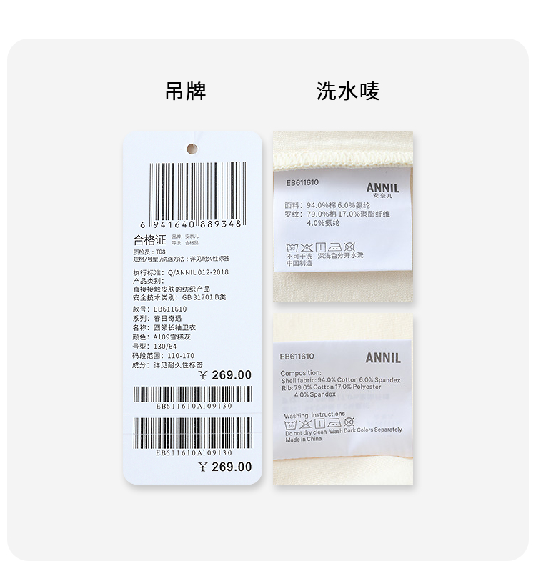 【实体店同款】男童圆领长袖卫衣春季新款安奈儿童装EB611610
