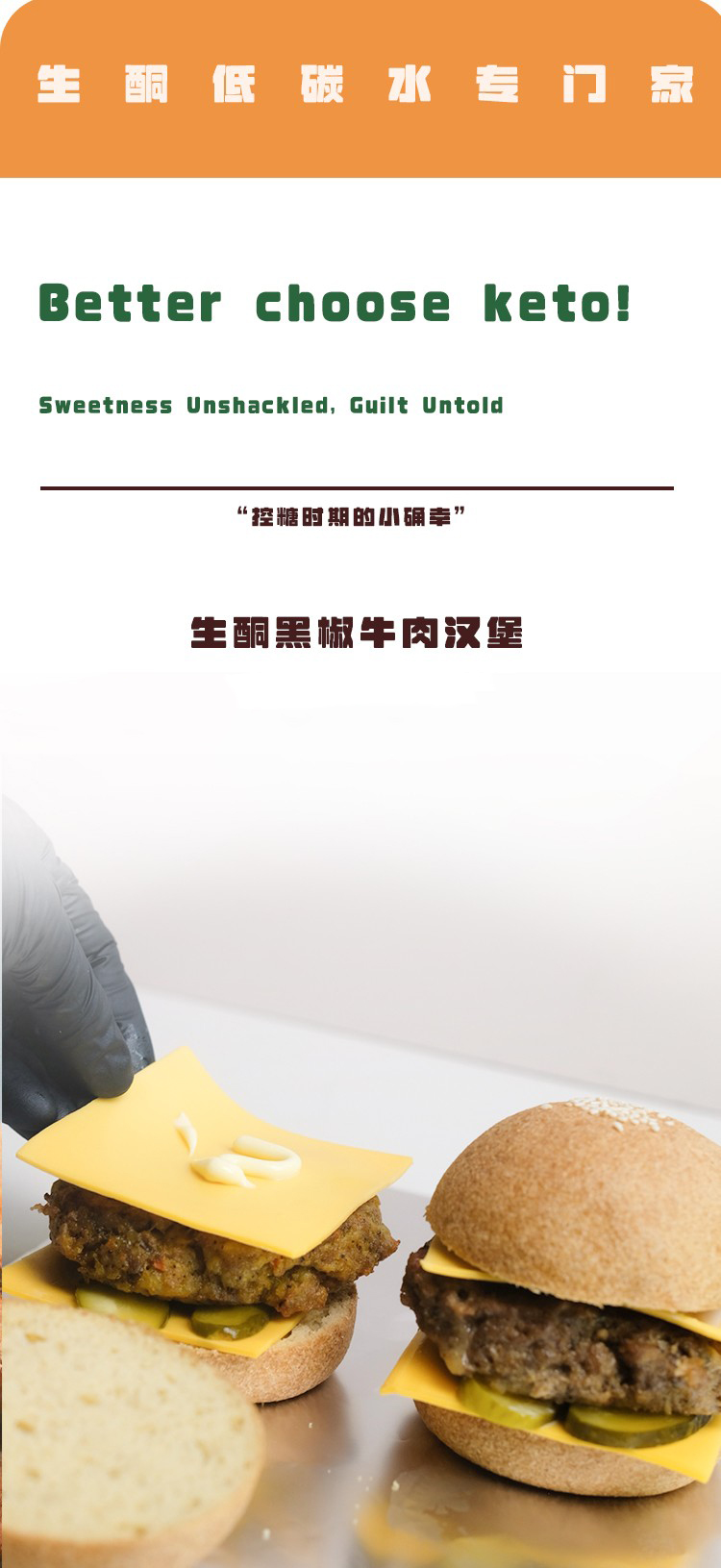【一酮】生酮主食汉堡芝士黑椒牛肉堡 180g 生酮主食代餐无麸加热即食汉堡便携快餐