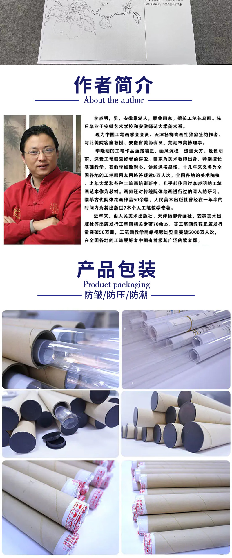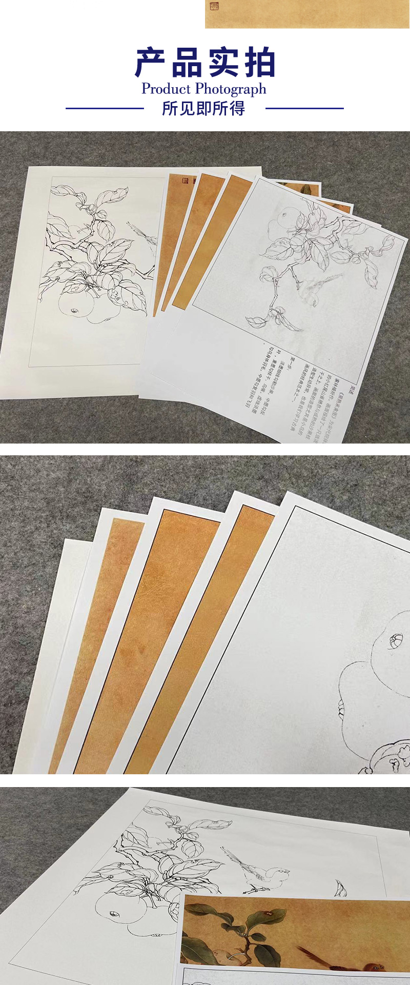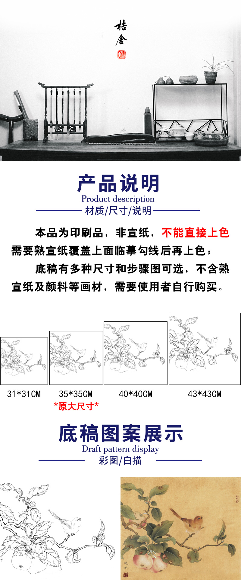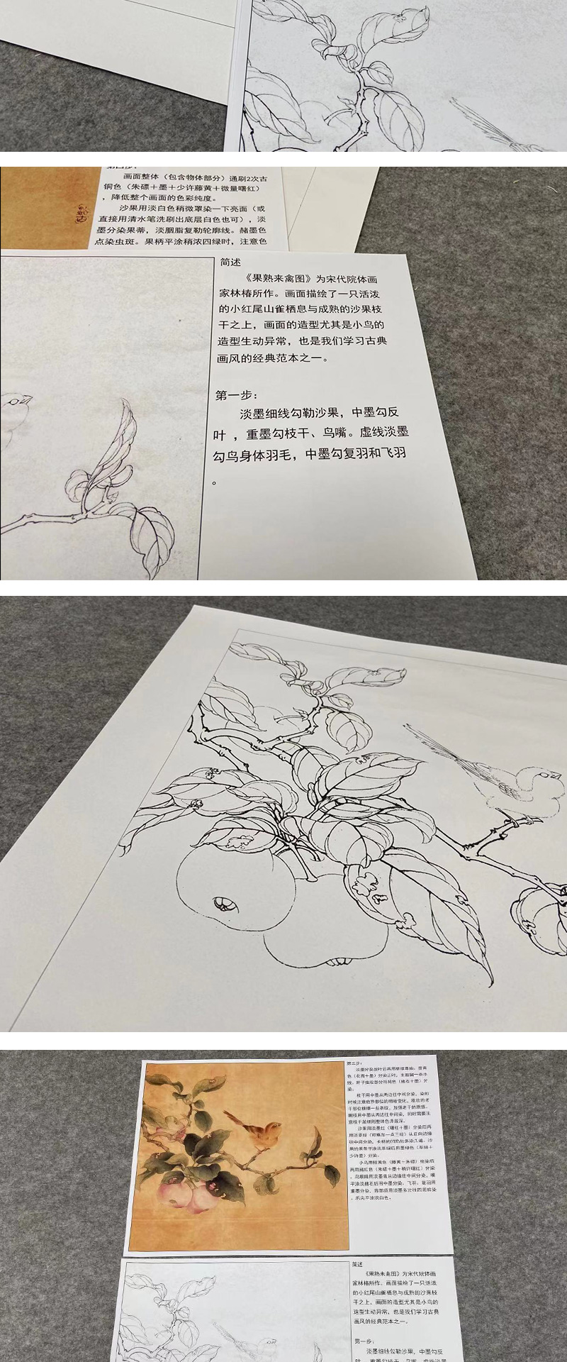 【有步骤、大彩图】李晓明工笔画白描底稿斗方小品《果熟来禽图》山雀桃枝临摹花鸟线稿KC29