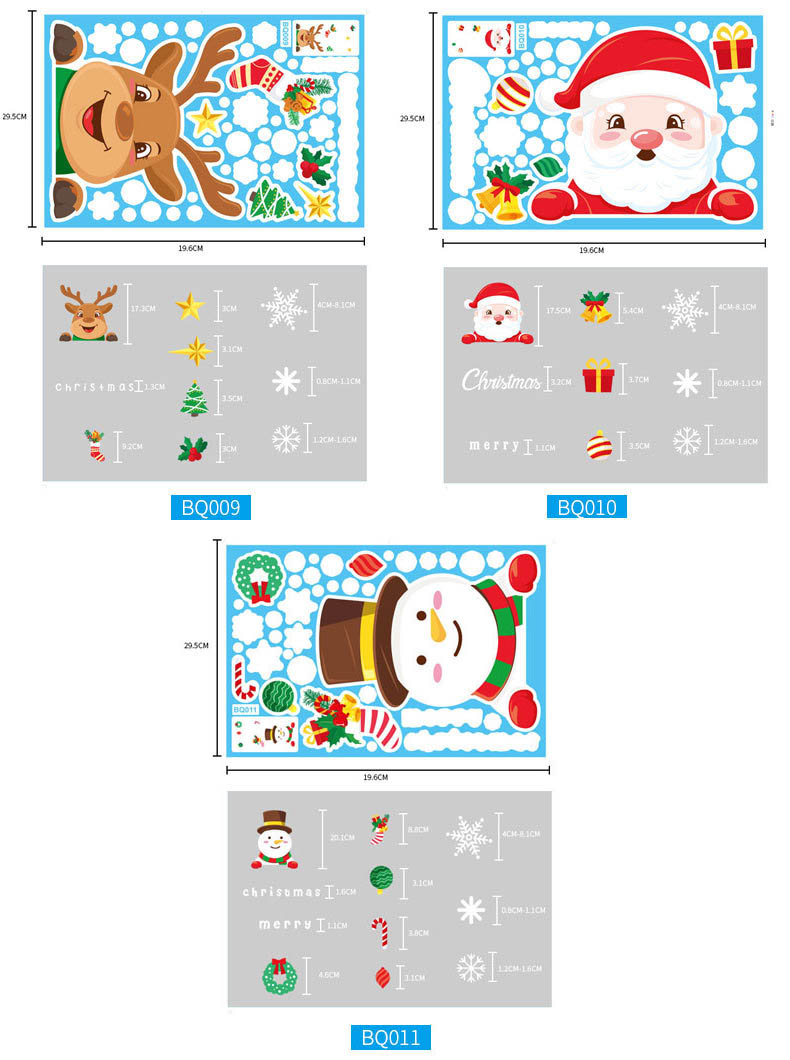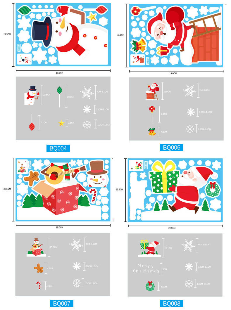 圣诞节装饰圣诞树老人雪人雪花静电贴组合家庭圣诞装饰品7款套装